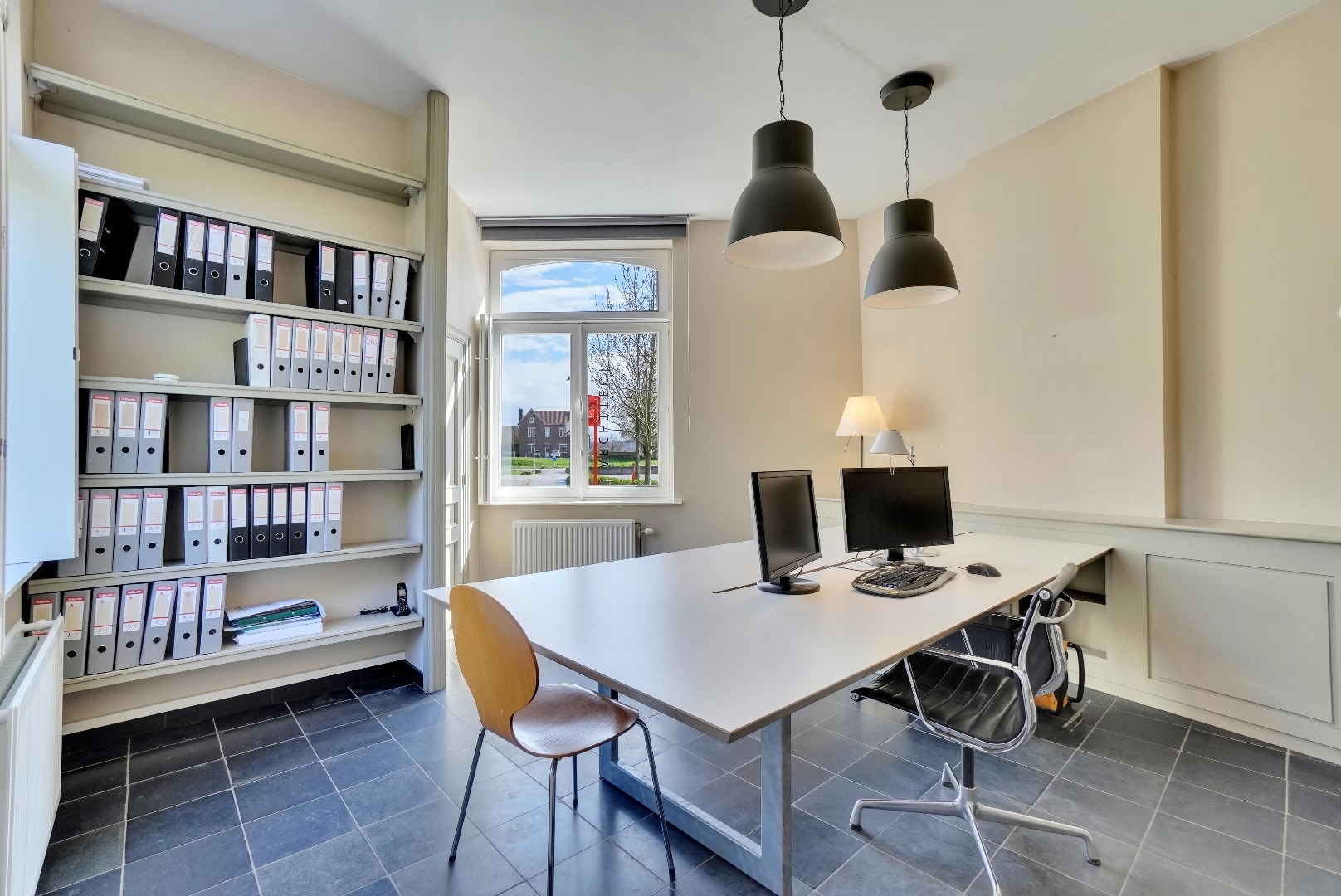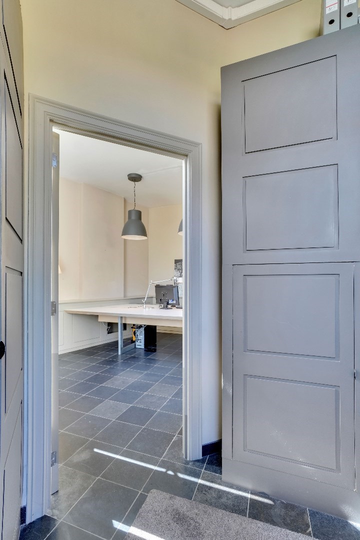 Aansluitend is er een tweede werkruimte/kantoor aanwezig. Deze kamer kan tevens ingevuld worden als tweede expositieruimte of als archief.