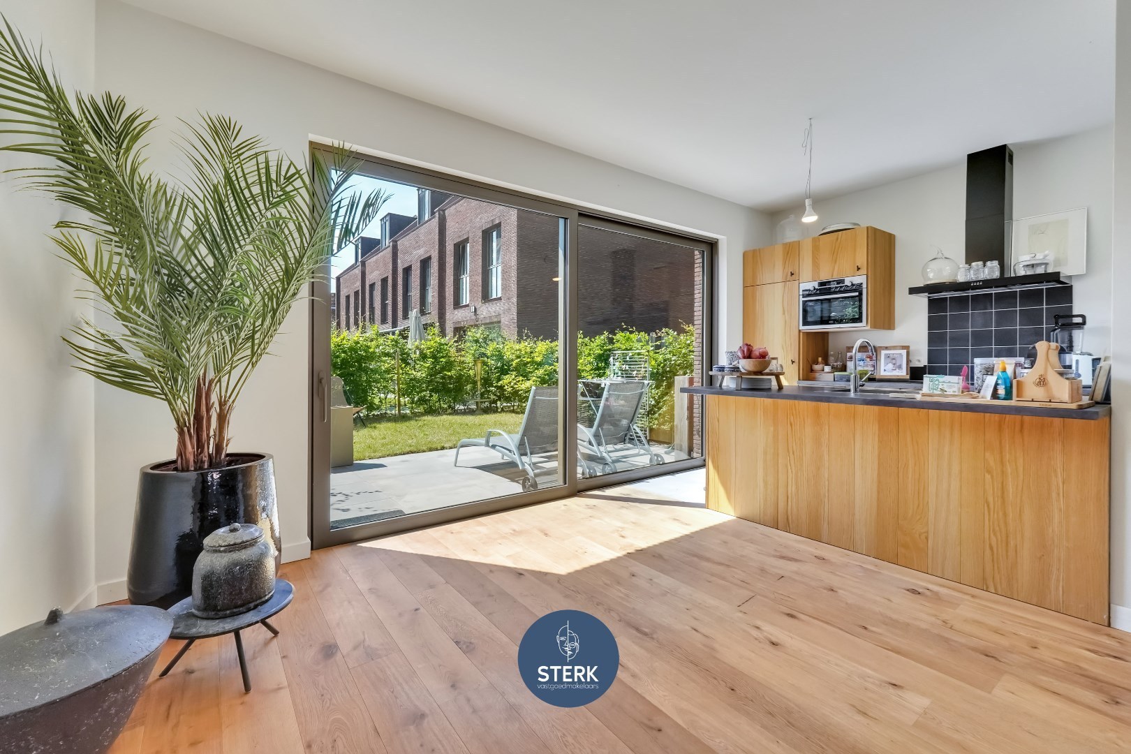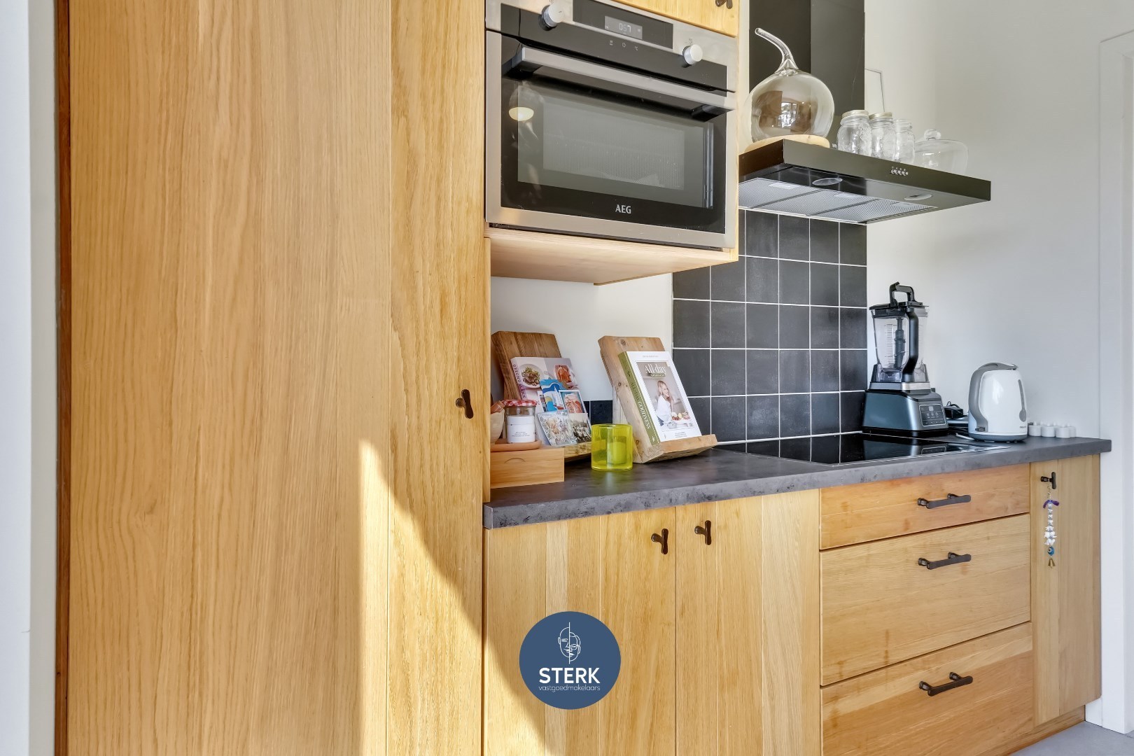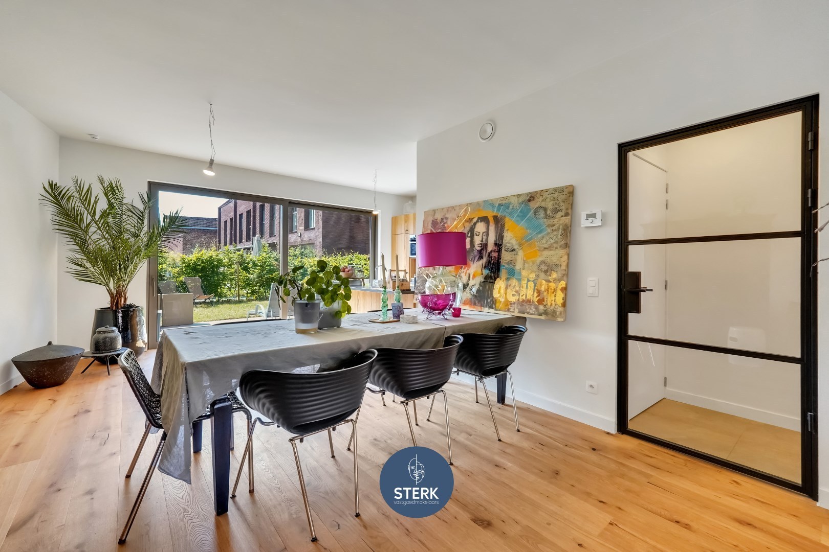 Bij het betreden van de woning komt men terecht in de inkomhal met gastentoilet. De ruime woonkamer en eetruimte zijn bijzonder lichtrijk dankzij de grote raampartijen die zorgen voor een open gevoel en een mooi zicht op de tuin. Aansluitend bevindt zich de open keuken met een elektrische kookplaat, ingebouwde koelkast en afwasmachine. Vanuit de keuken is er toegang naar de praktische berging/wasplaats.