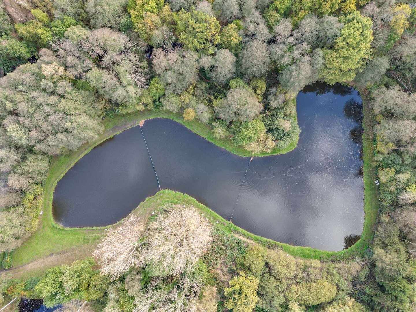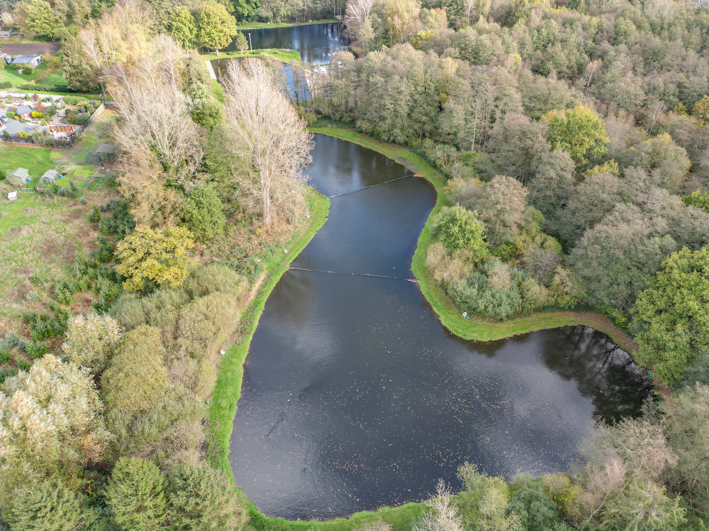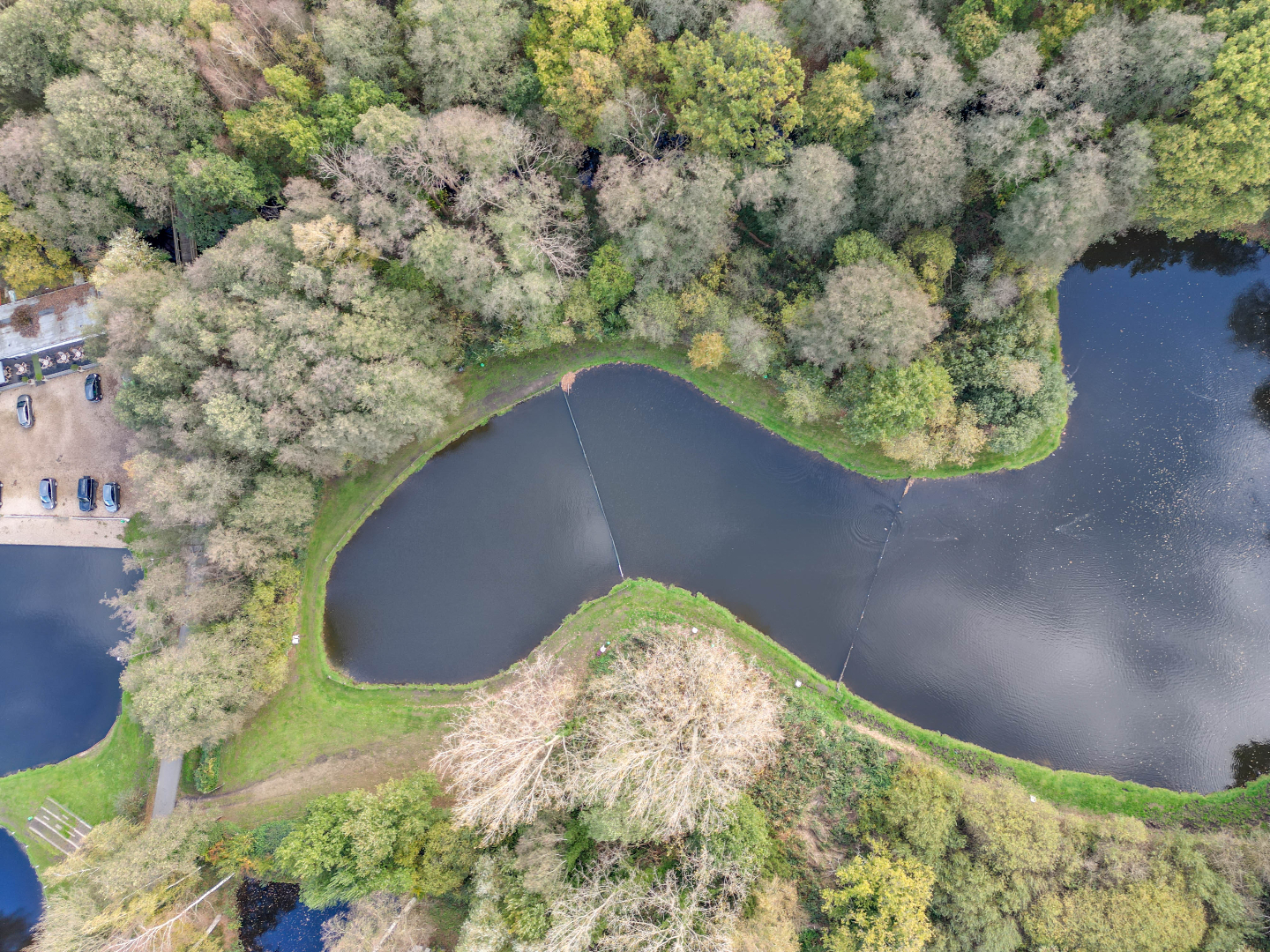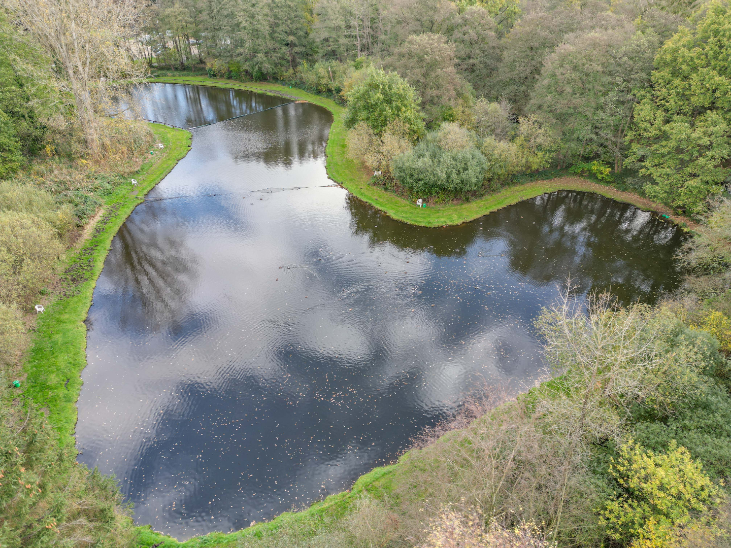 + Vijver in 3 delen opgesplitst via netten !