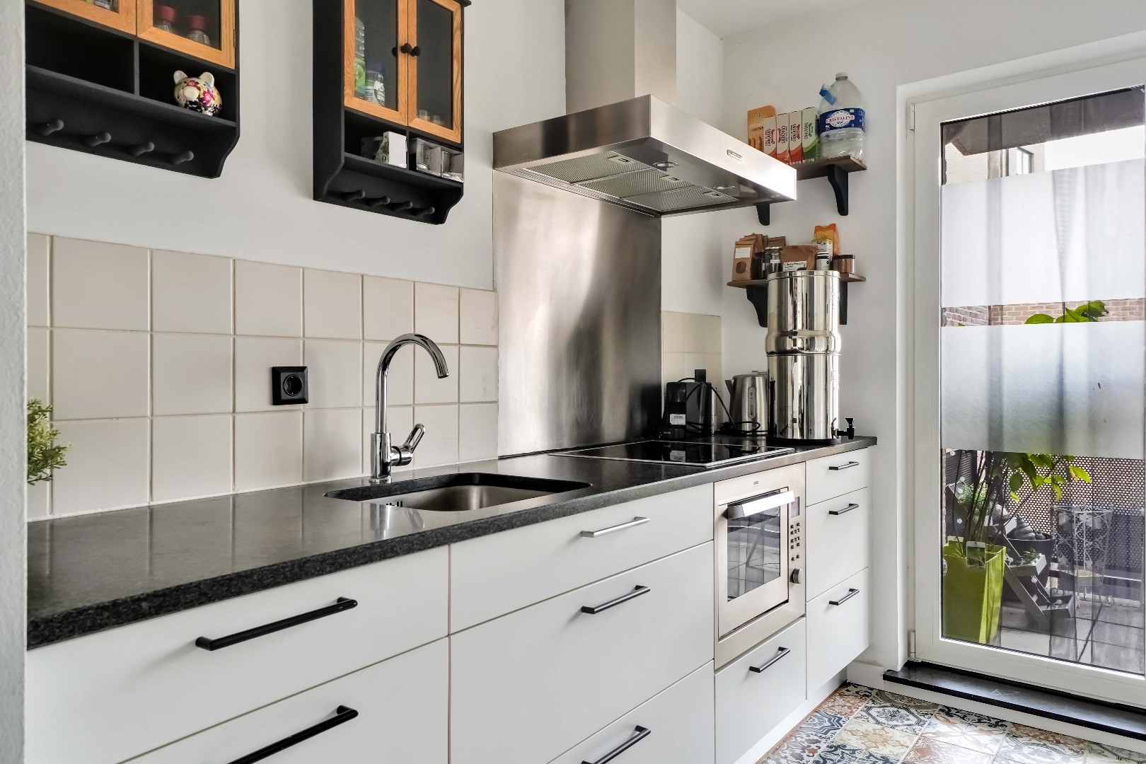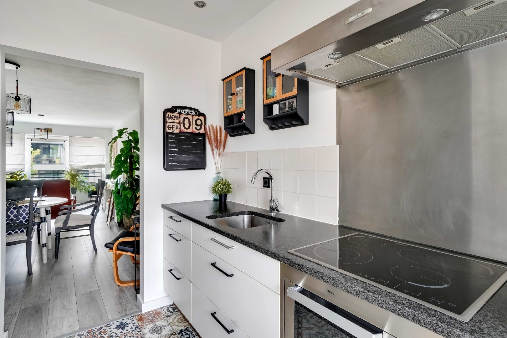 Vanuit de leefkamer betreedt men de keuken met aansluitend de wasruimte. De wasruimte is voorzien van een aansluiting voor een wasmachine en droger. Daarnaast biedt de keuken ook toegang naar het zuid-oostelijk georiënteerd balkon.