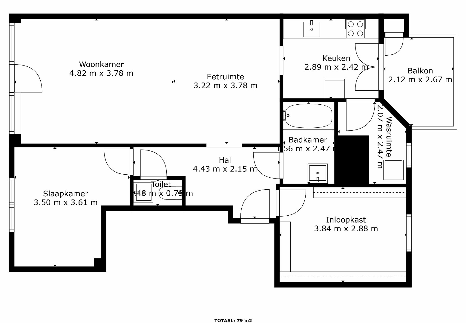 De inkomhal van het appartement verleent toegang naar zowel het leefgedeelte, als de slaapkamers en badkamer. Het leefgedeelte heeft een mooie oppervlakte van circa 30 m² en biedt daarmee voldoende ruimte voor het inrichten van een zit- en eethoek.