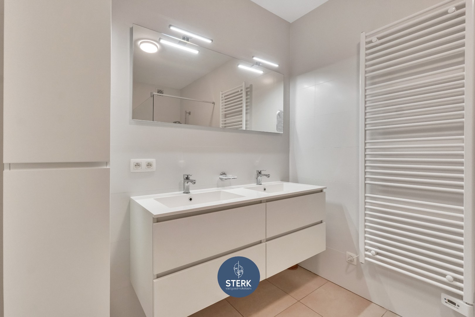 Verder telt het appartement 2 volwaardige slaapkamers. De hoofdslaapkamer beschikt over een rechtstreekse toegang tot het tweede terras. De tweede slaapkamer is bovendien uitgerust met een eigen lavabo, wat extra comfort biedt. De badkamer is praktisch en verzorgd ingericht met een dubbele lavabo, douche en toilet. Daarnaast is er nog een wasruimte en een apart gastentoilet aanwezig.