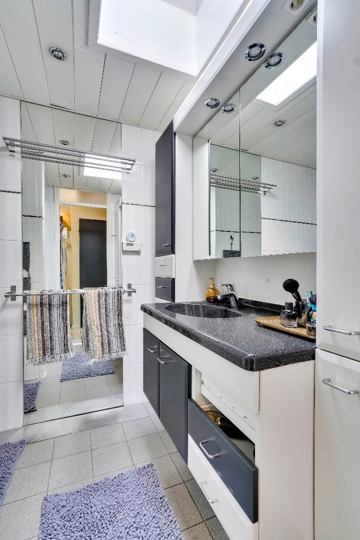 De leefruimte is opgedeeld in een woon- en eetkamer. Vanuit de eetkamer komt u in de keuken, dewelke uitgerust is met nieuwe apparatuur waaronder een inductiekookplaat, koelkast en ingebouwd afwasmachine.