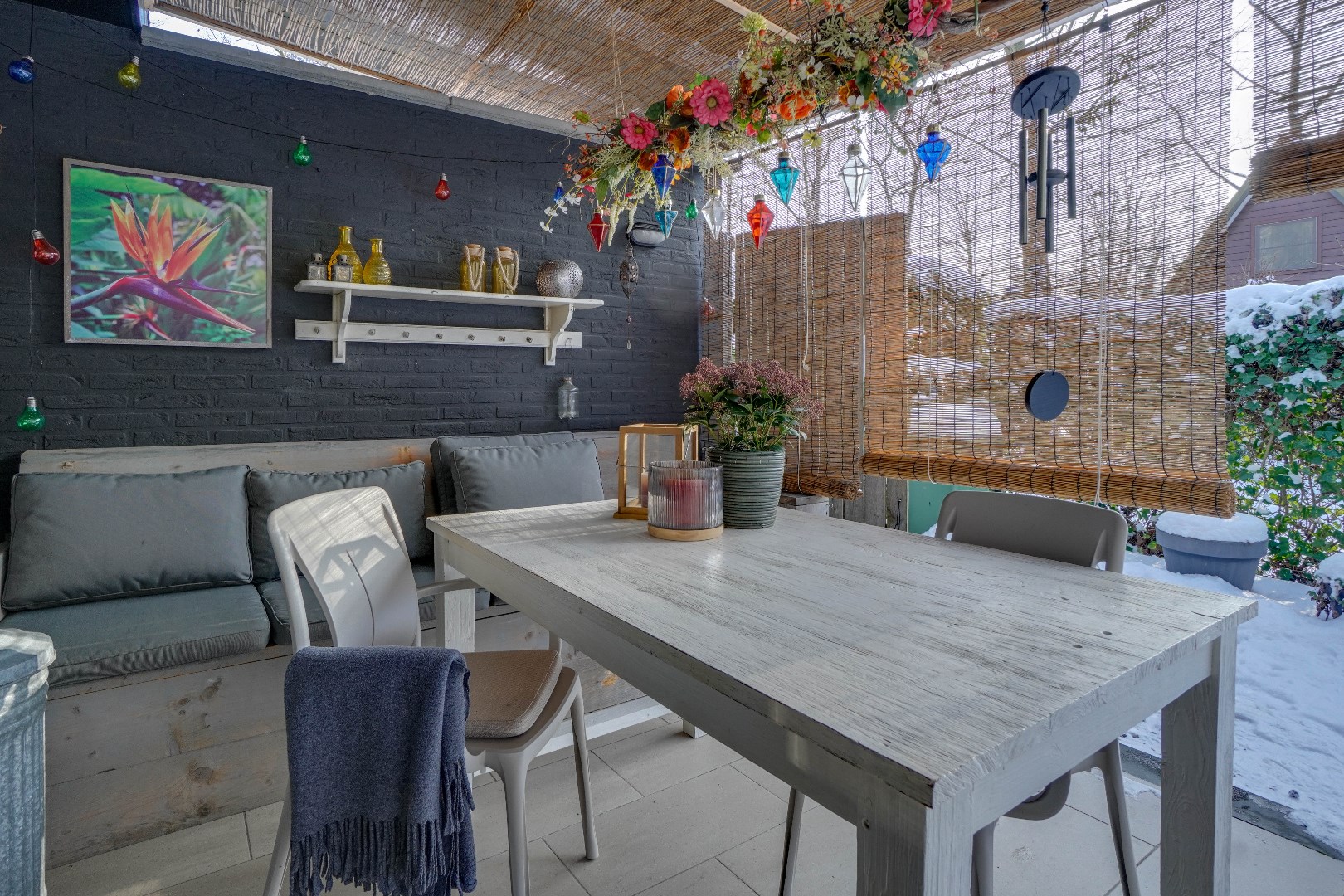 De westelijk-georiënteerde tuin is voorzien van een overdekt terras en een automatische zonneluifel. Bovendien is er aan de bungalow voldoende parkeergelegenheid, mede dankzij de riante voortuin.