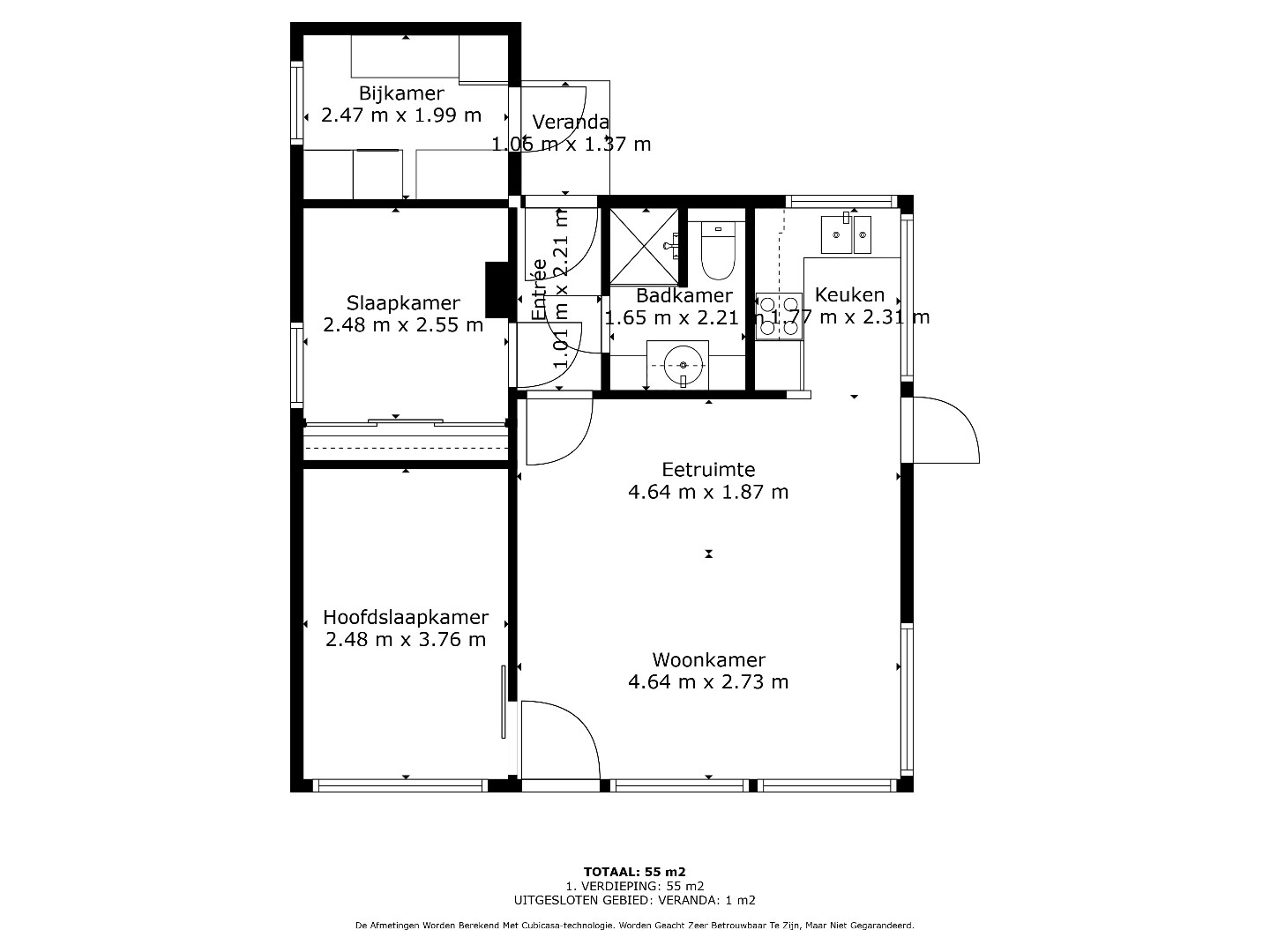 In de bungalow zijn er 2 slaapkamers aanwezig. Daarnaast is er ook een badkamer met lavabo, douche en toilet.