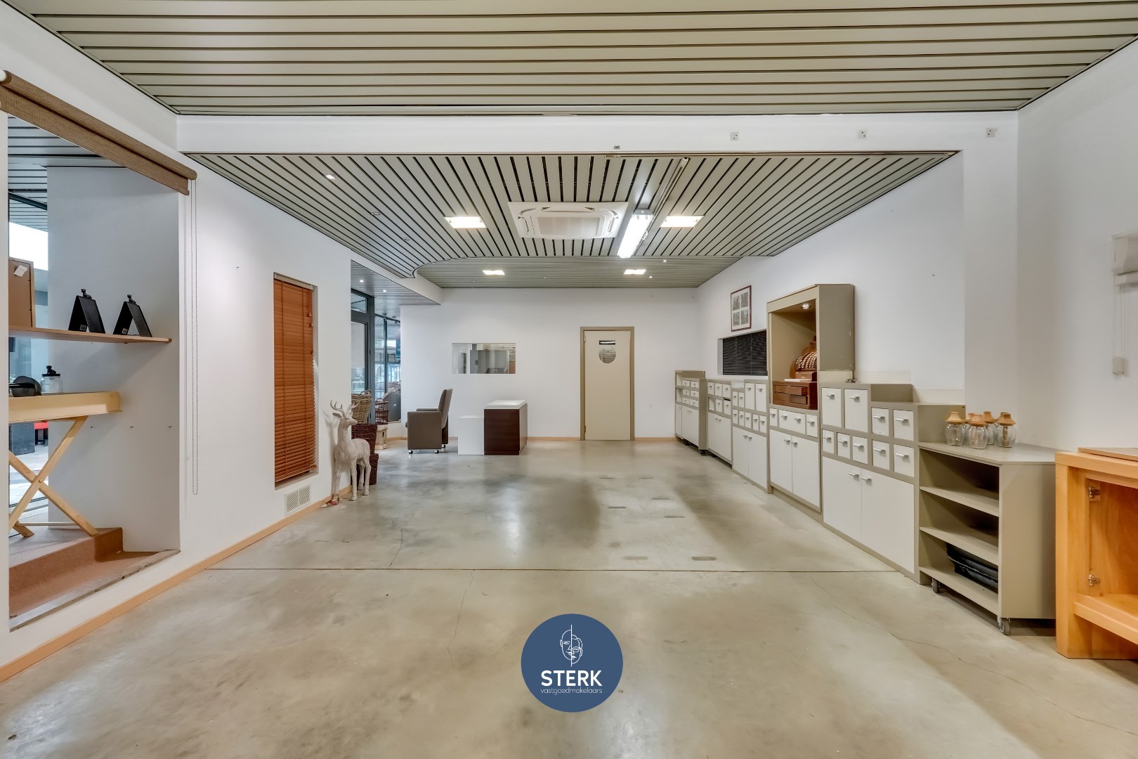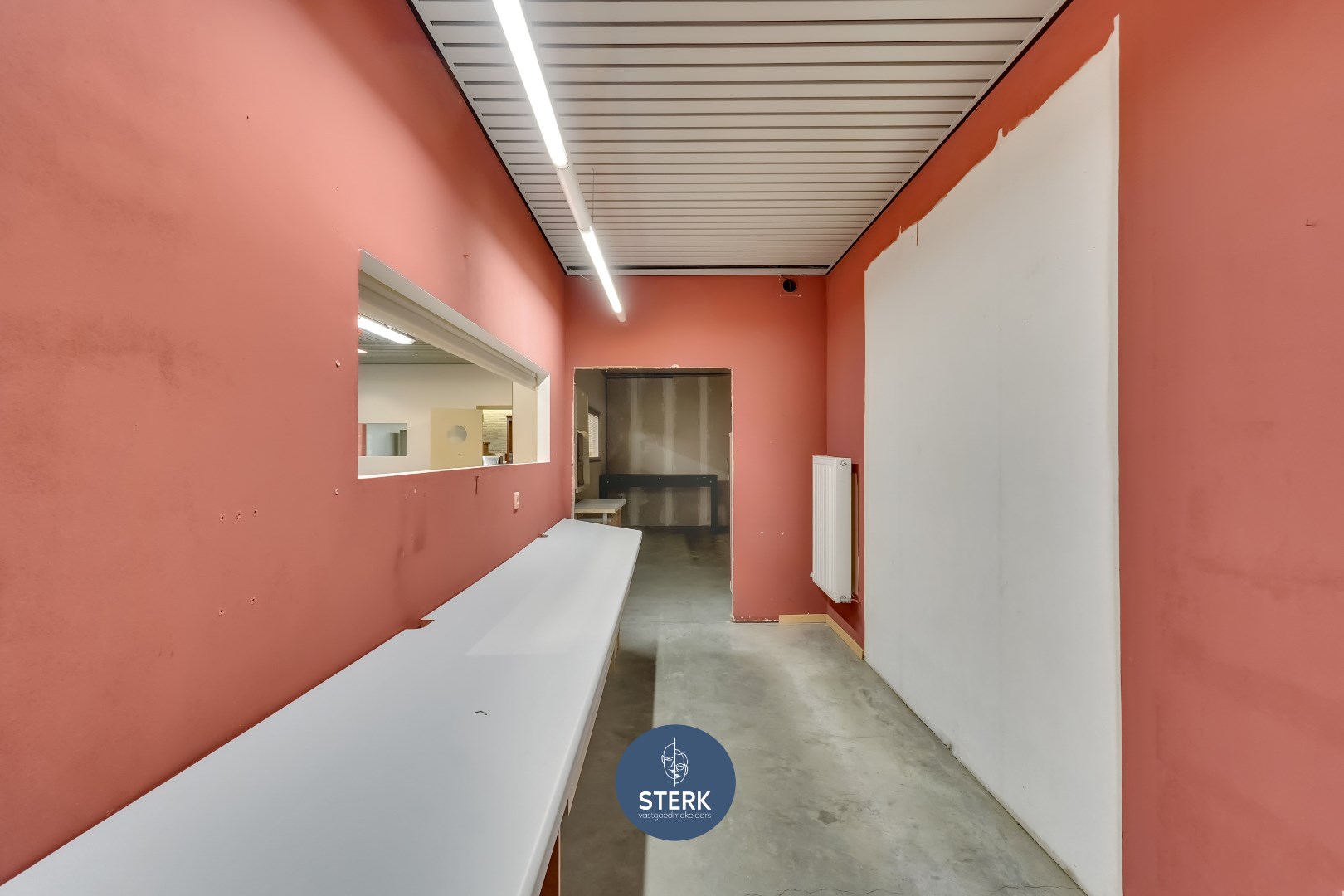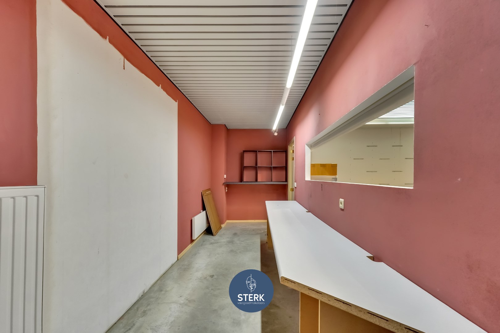 Bij binnenkomst in het pand, wordt men verwelkomd in een ruimte met een mooie oppervlakte van circa 65 m², dewelke beschikt over een etalage. De grote raampartijen bieden uitstekende zichtbaarheid en zijn ideaal om uw producten of diensten te presenteren.