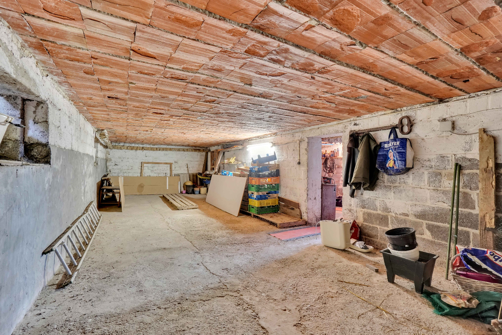 De woning is volledig onderkelderd, hier is er ruimte voor het parkeren van een wagen d.m.v. een elektrische poort maar ook is er voldoende opbergruimte.