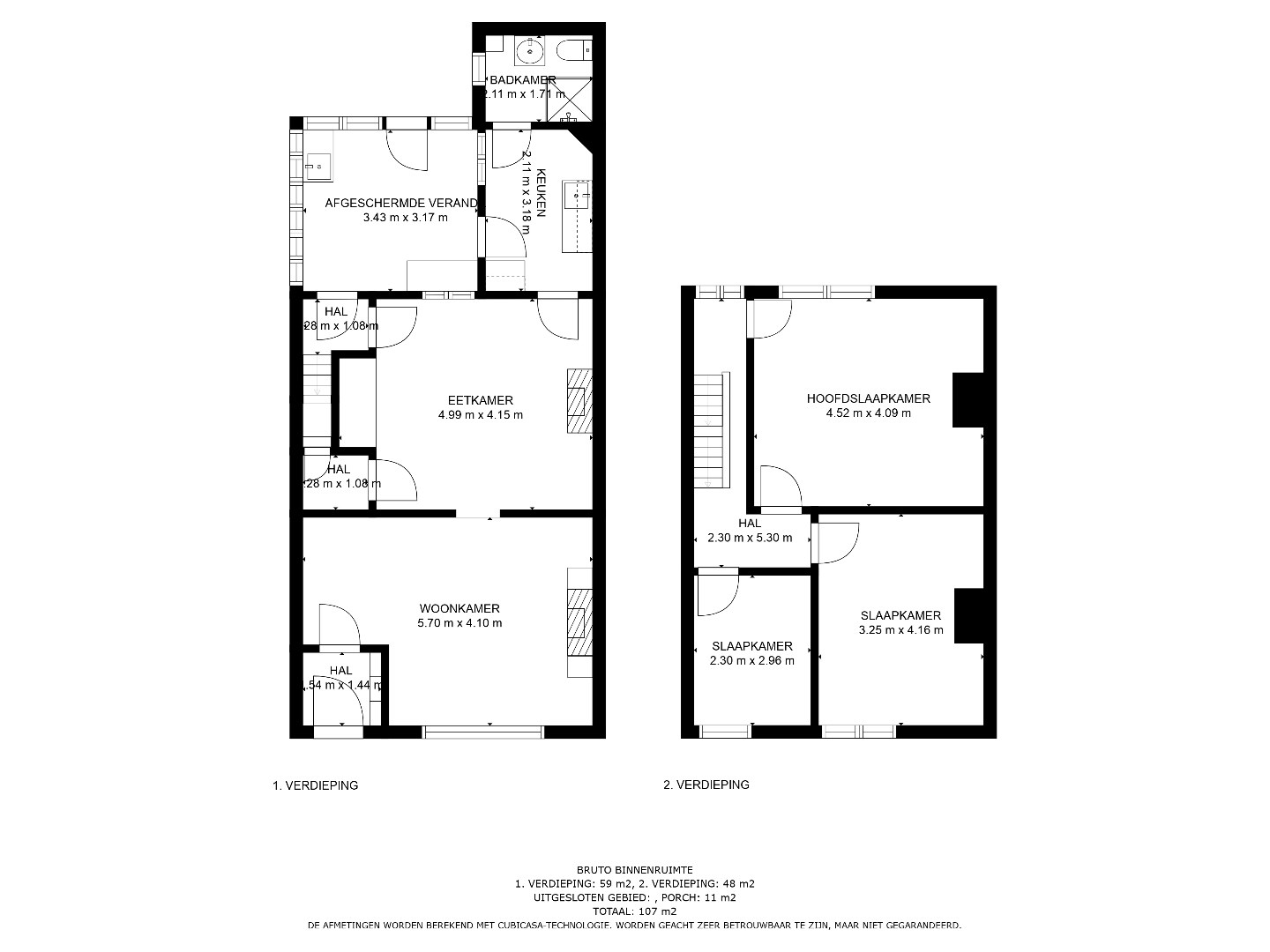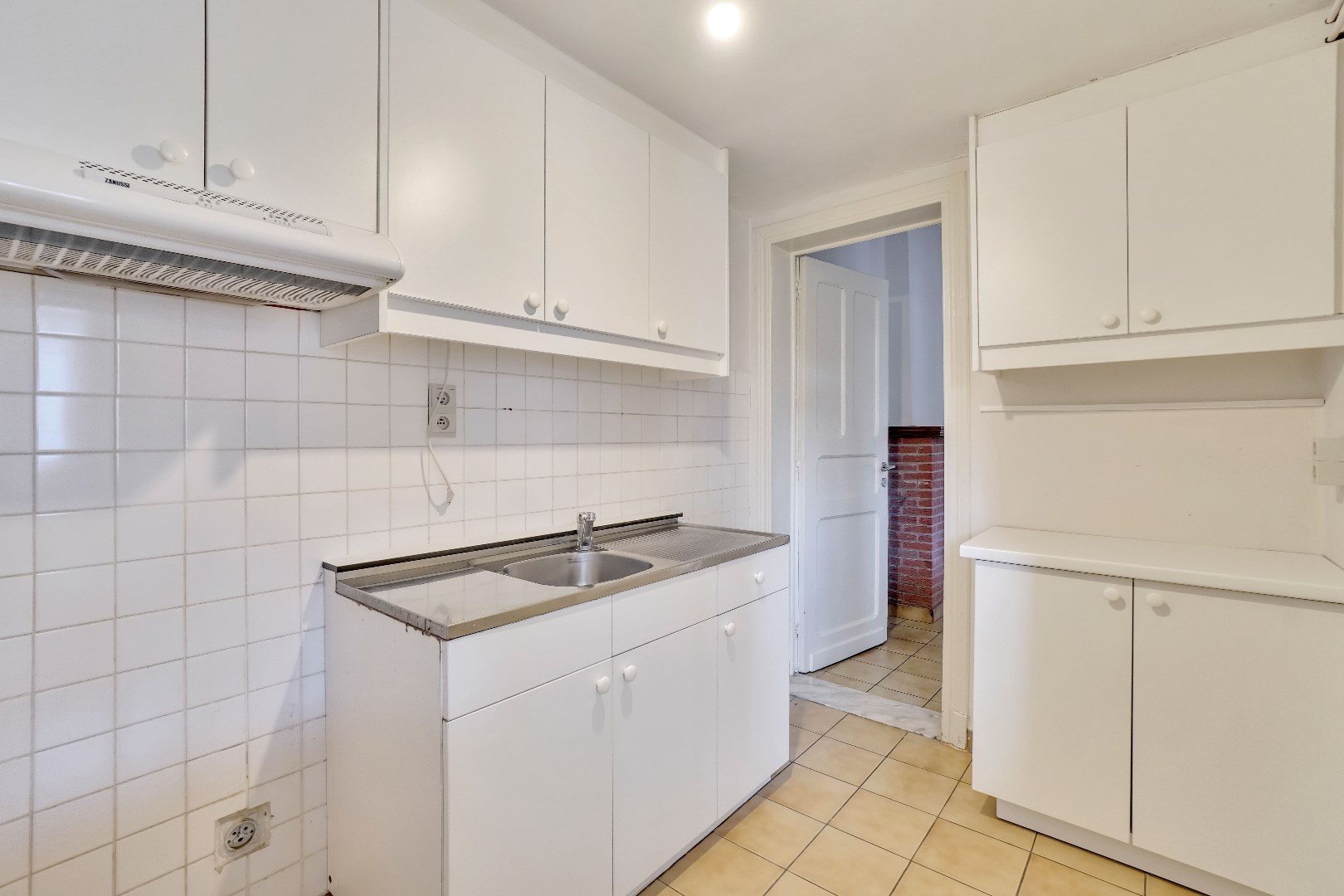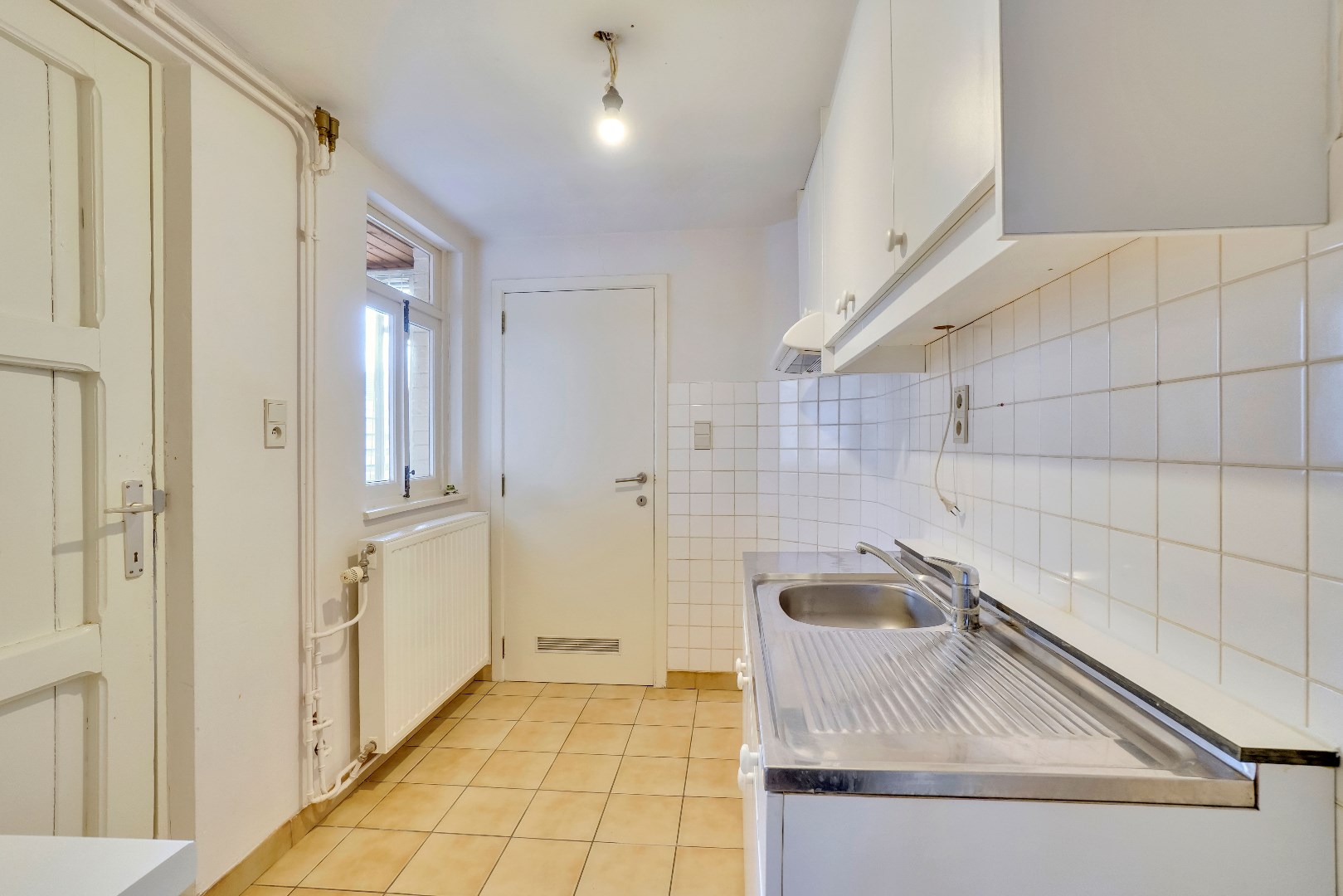 Via de inkomhal bereiken we de woonkamer en eetkamer. Achtergelegen is een aparte keuken voorzien met toegang tot de badkamer alsook de tuin die bereikbaar is via de veranda.