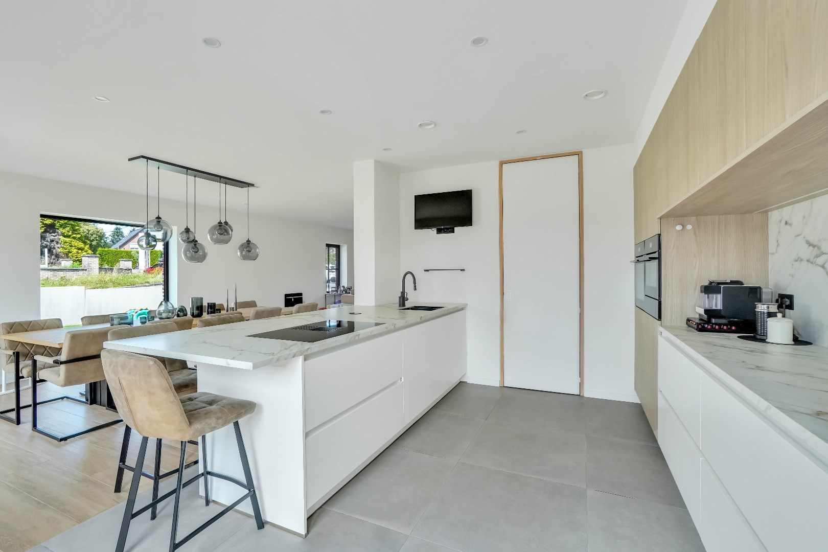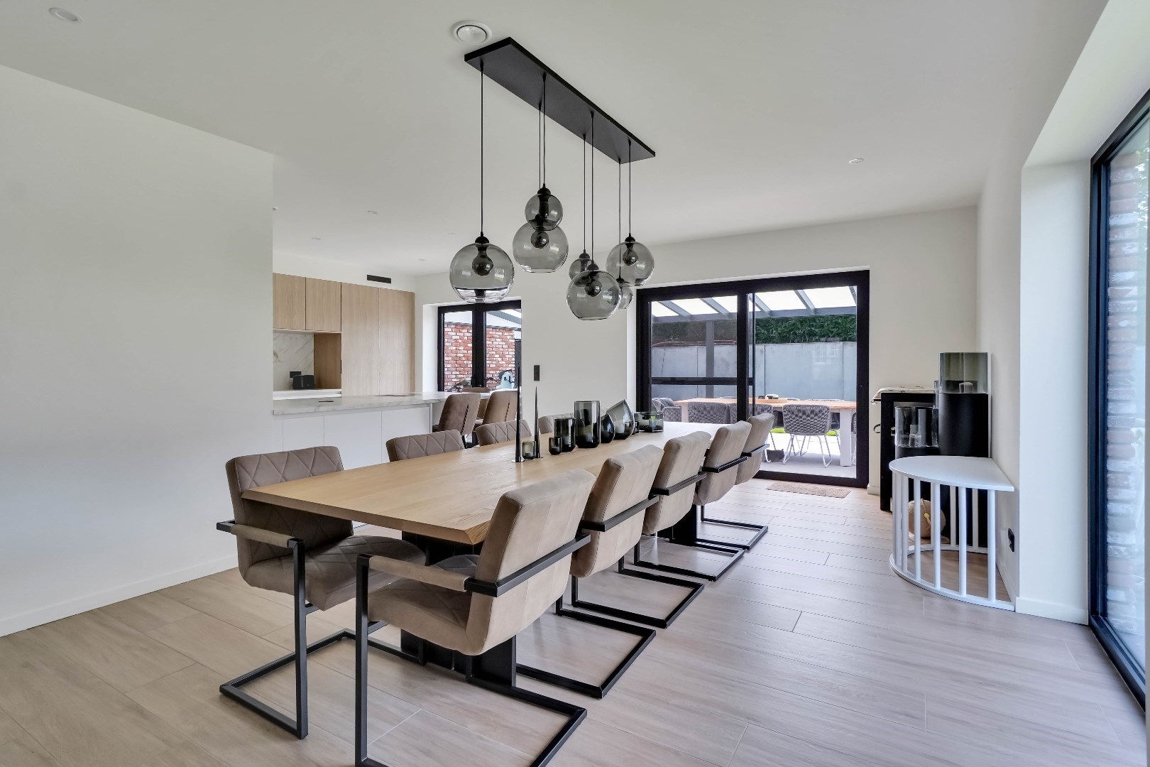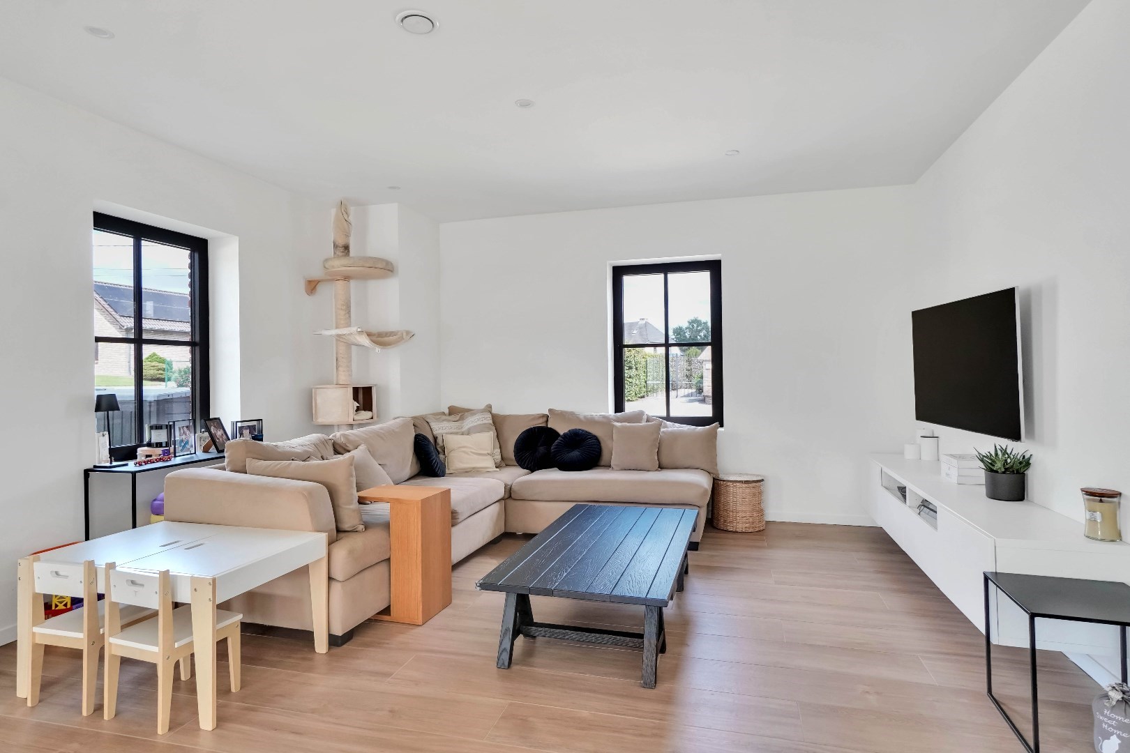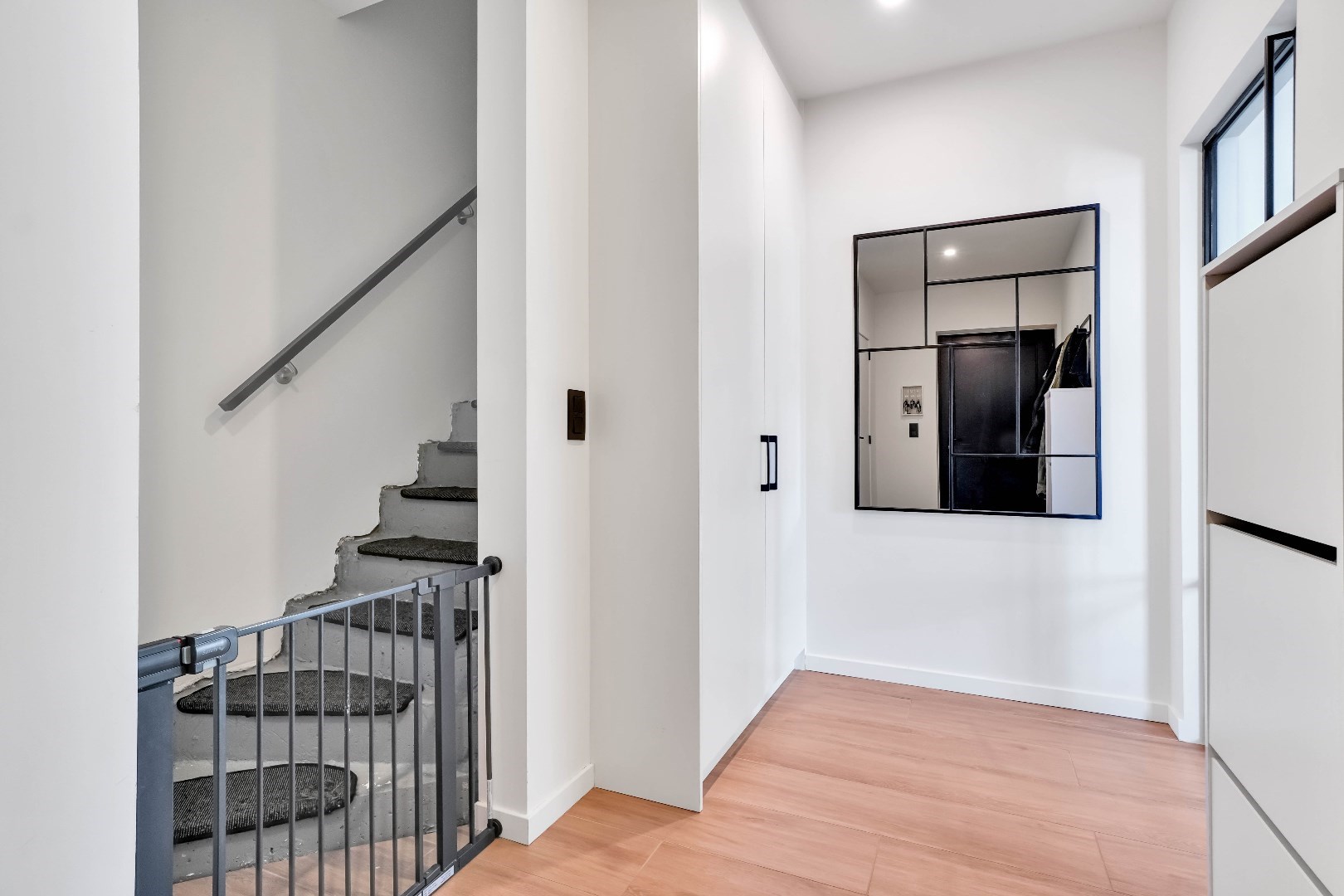 Via de inkomhal met gastentoilet, komen we binnen in het ruime en lichtrijke leefgedeelte.