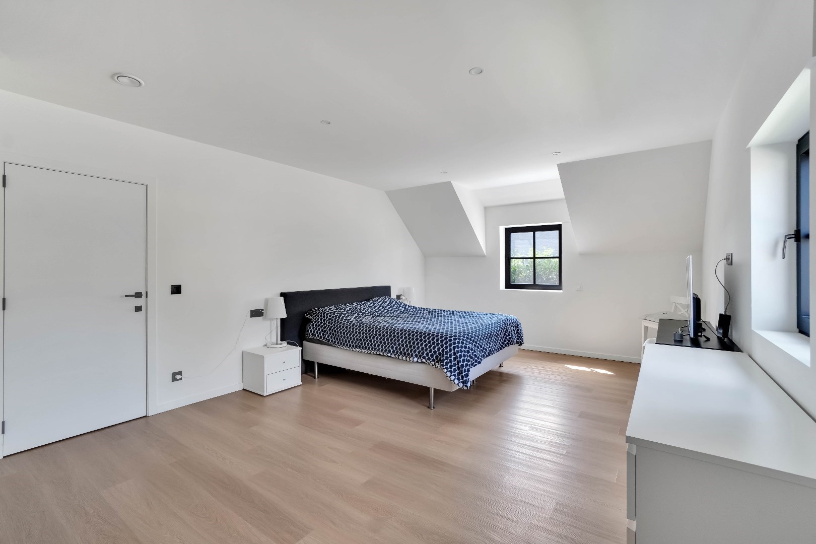 De slaapkamers variëren tussen de 14 en 28 m² en zijn voorzien van elektrische rolluiken.