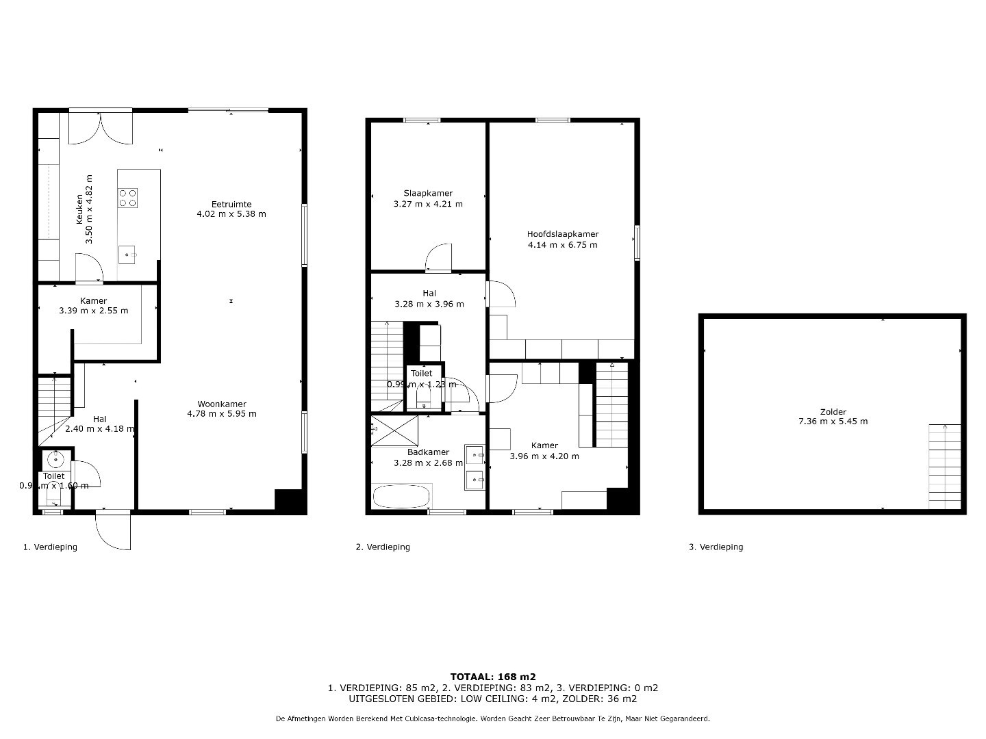 Op de eerste verdieping bevinden zich 3 slaapkamers en een badkamer.