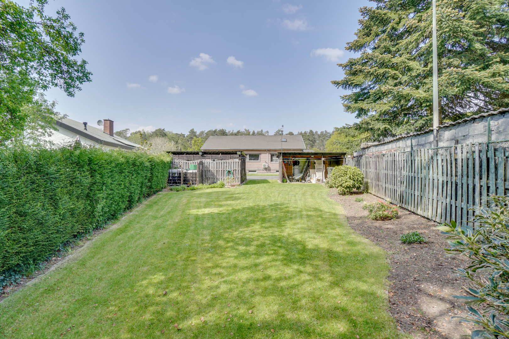 In de tuin zijn er enkele bijgebouwen terug te vinden alsook voldoende autostaanplaatsen.