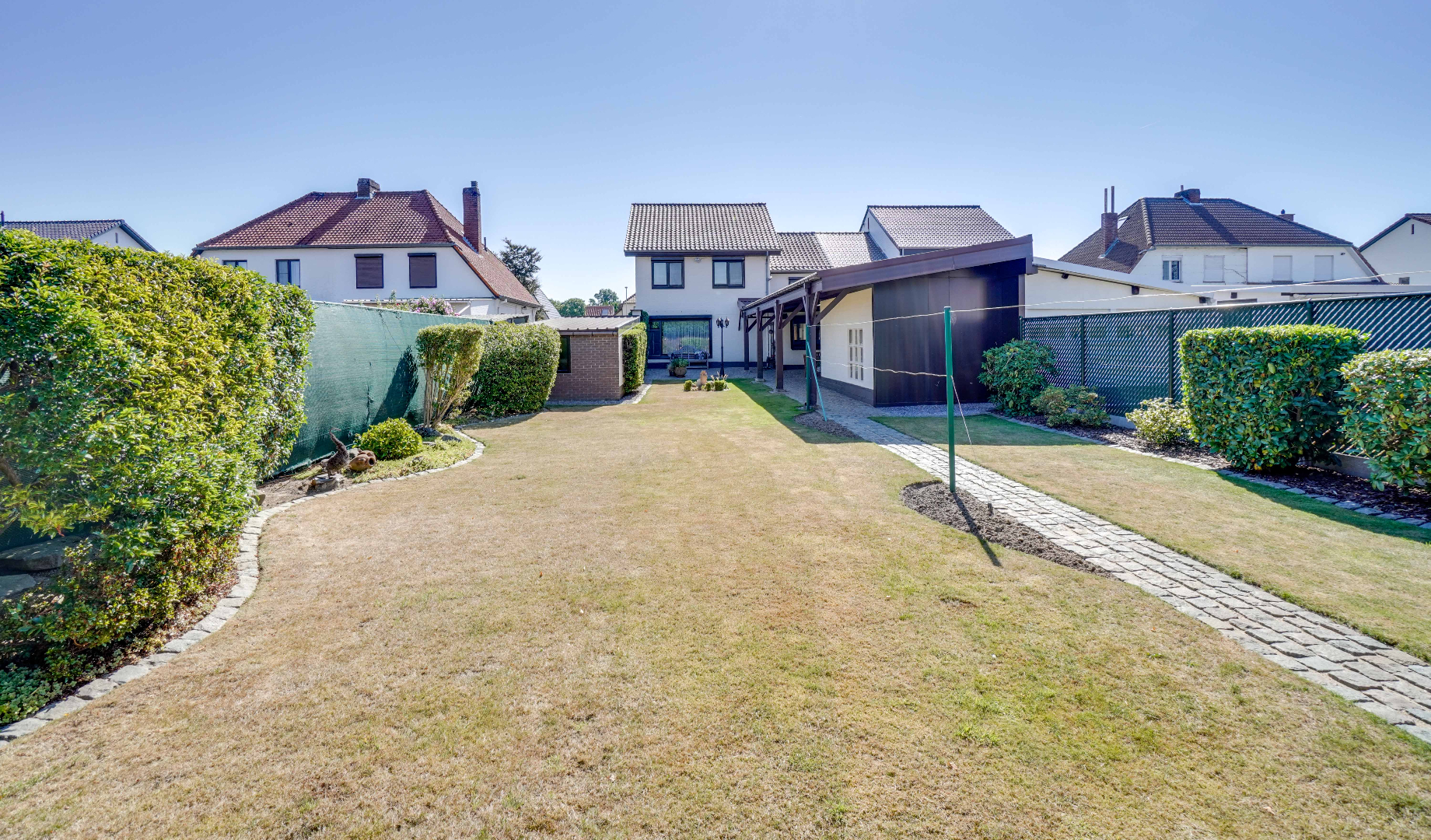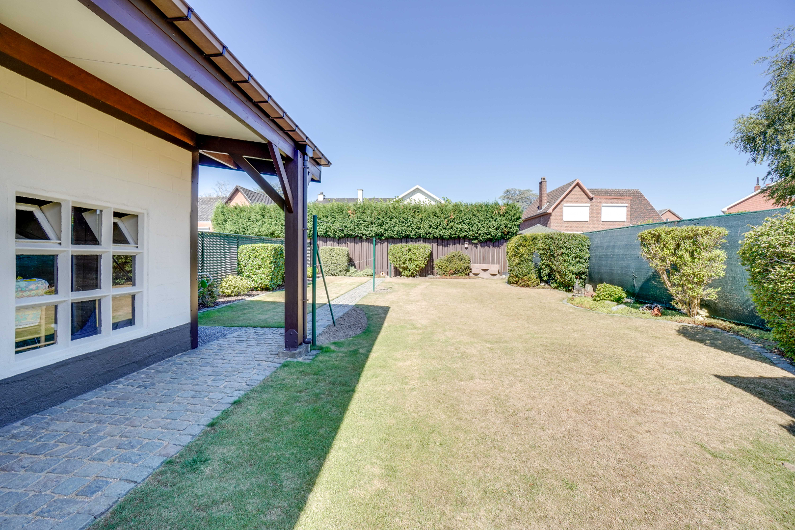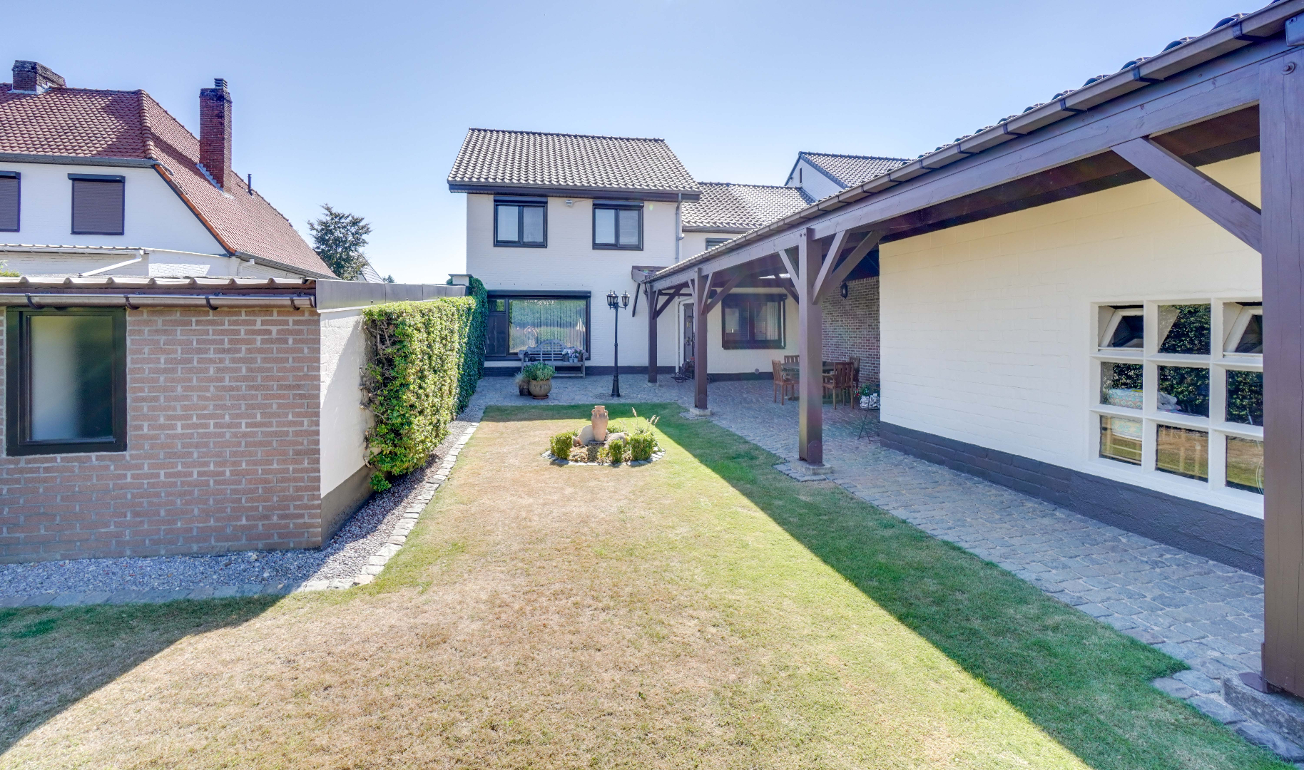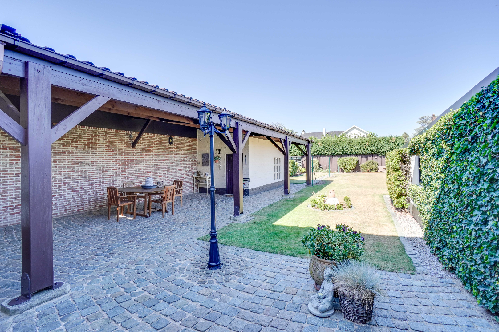 Op de gelijkvloerse verdieping bevinden zich tevens nog een wasplaats en toegang tot de zeer goed onderhouden tuin. Hier is er een overdekt terras aanwezig, een tuinberging en een ruime garage voorzien van een sectionaalpoort.