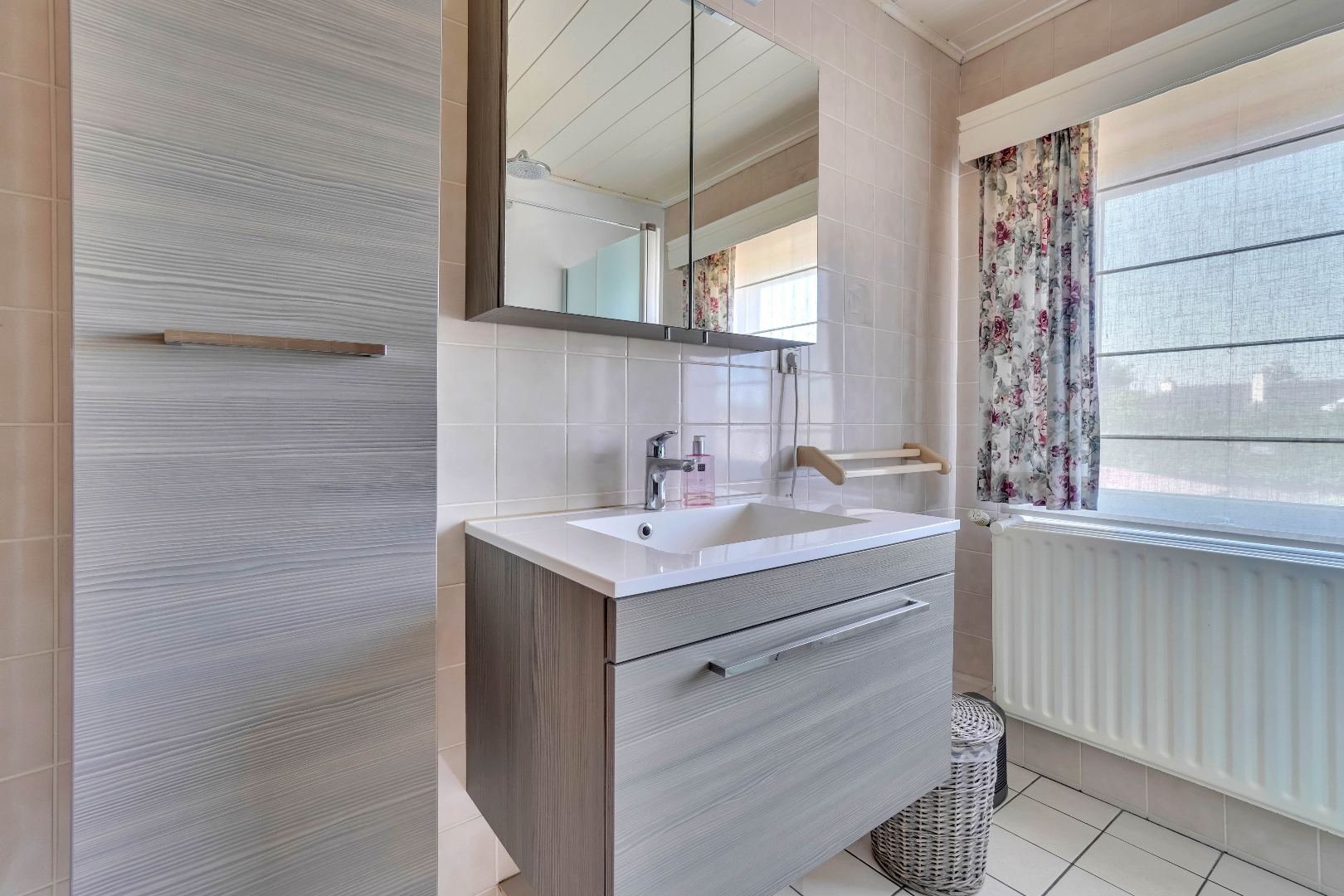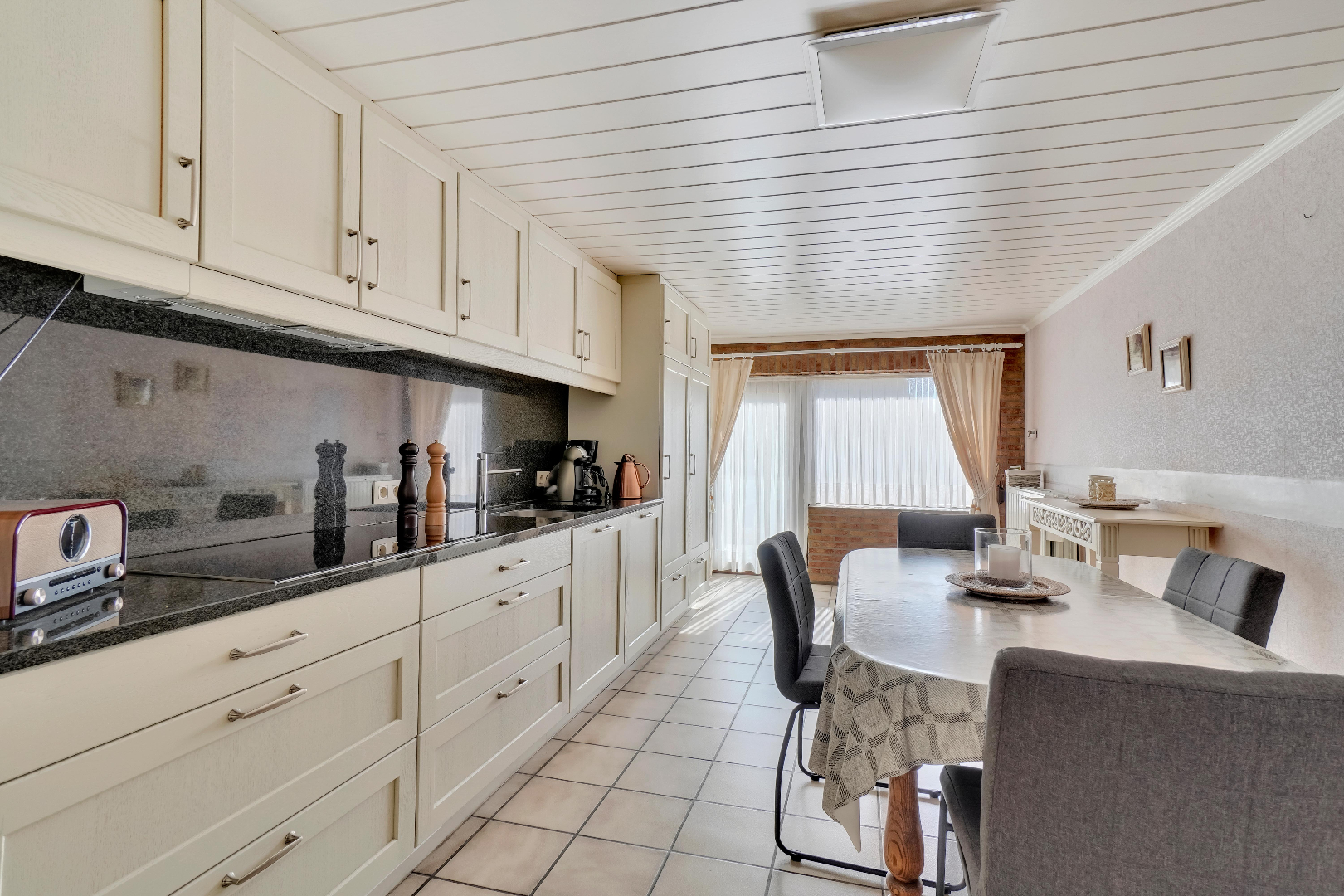 Via de inkomhal met gastentoilet heb je toegang tot een mooie leefruimte die is ingedeeld in een zit- en eethoek. Naastgelegen kan je keuken terugvinden, deze werd 10 jaar geleden volledig vernieuwd met alle comfort.