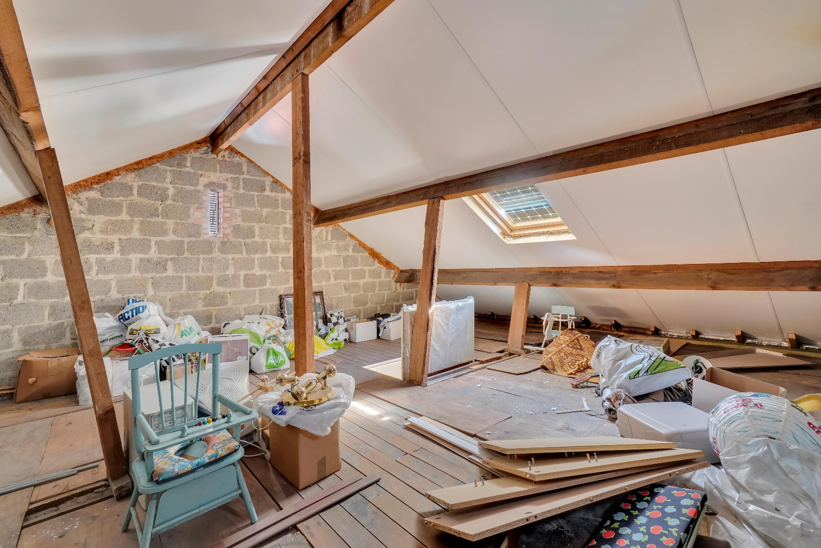 Via een zolderluik op de nachthal is er een toegang naar een verder af te werken zolder. Hier kan nog extra woonruimte gecreëerd worden.