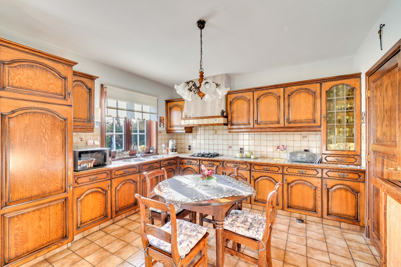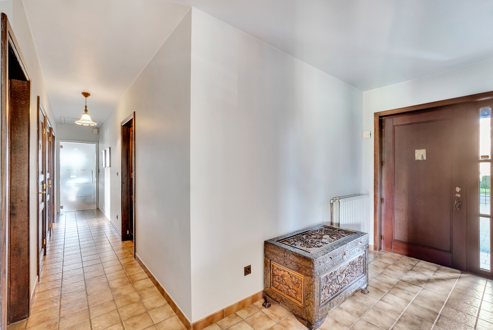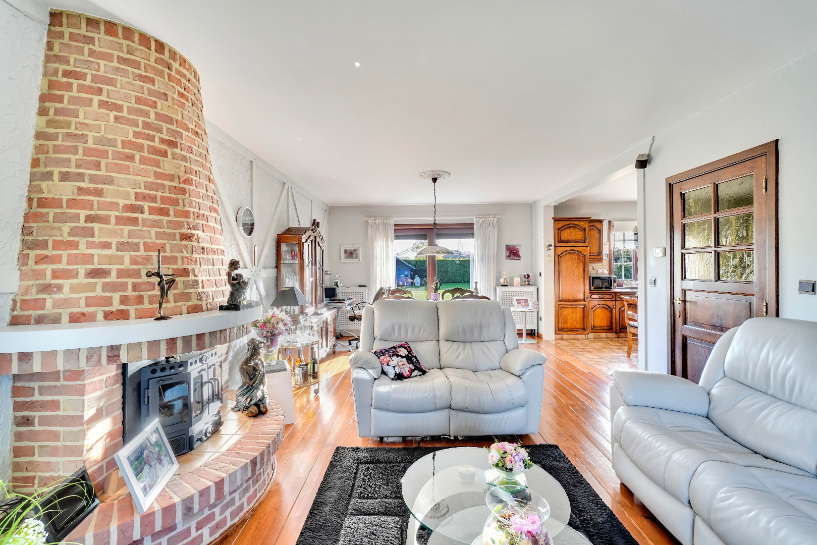 Via de inkomhal heb je toegang tot de woonkamer en de keuken. De woonkamer is opgedeeld in een knusse televisiehoek met houtkachel en een ruime eetplaats. Via de raampartijen aan de achterzijde van het gebouw heeft u zicht op de zuidelijk georiënteerde tuin.