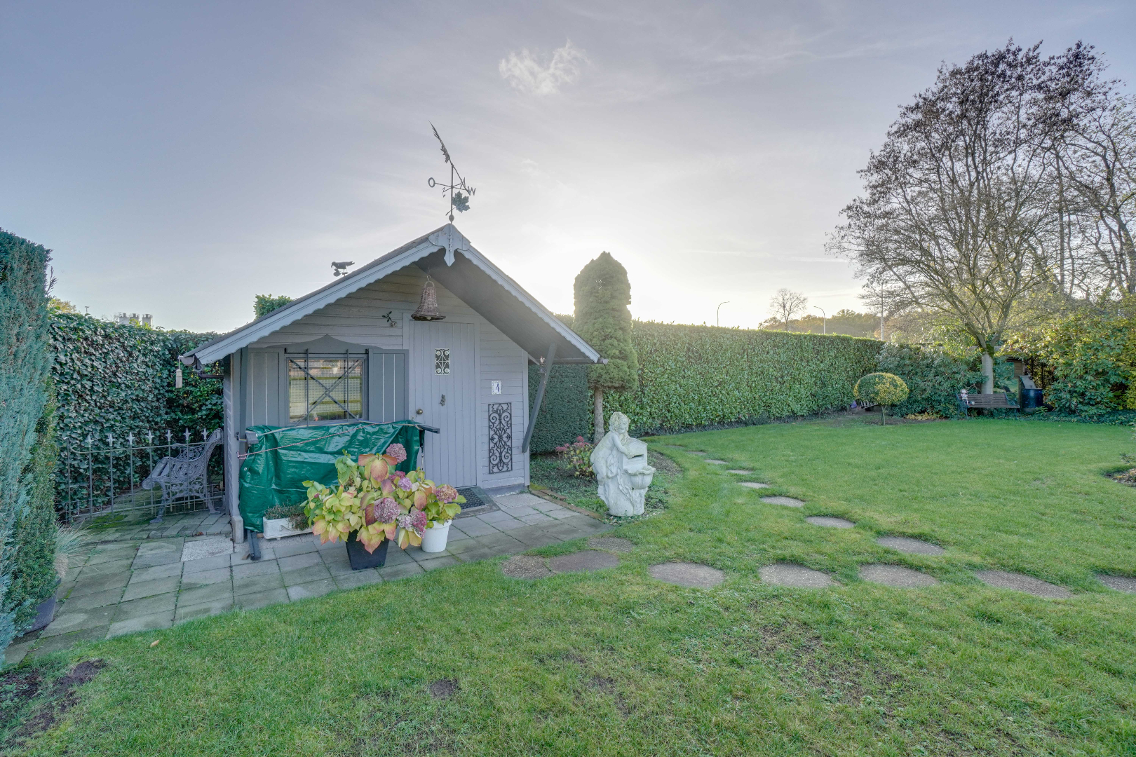 De mooi aangelegde tuin is volledig omheind en voorzien van 2 tuishuisjes en een zonneterras.