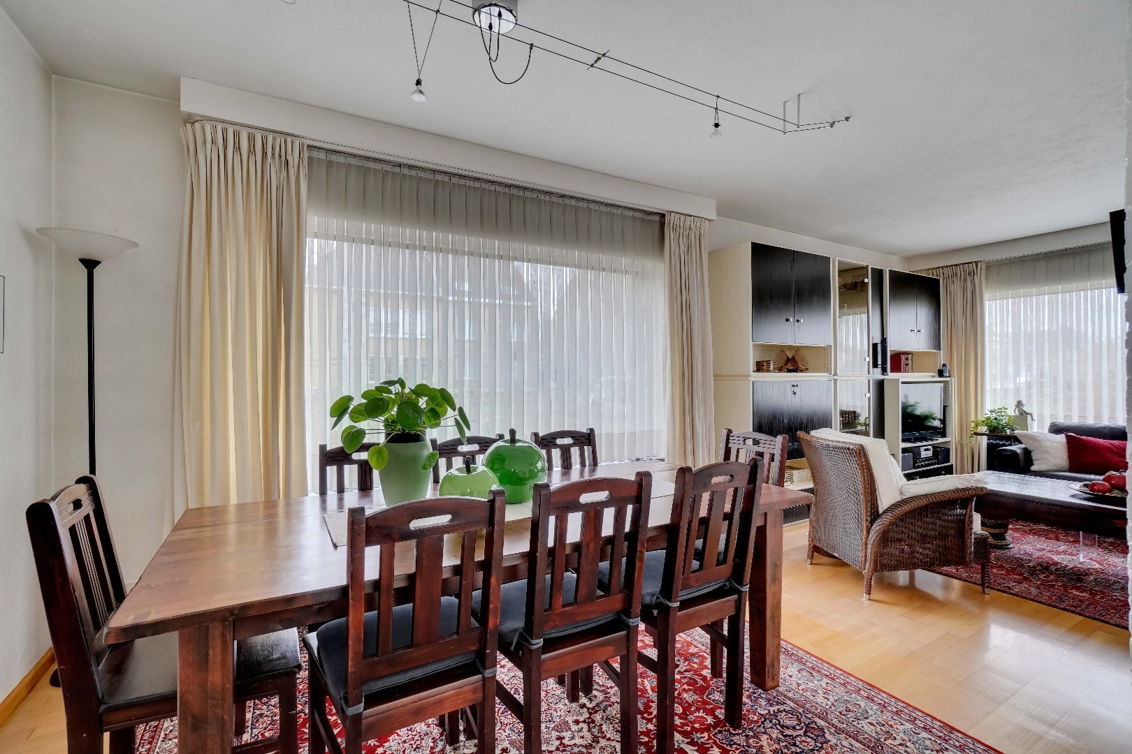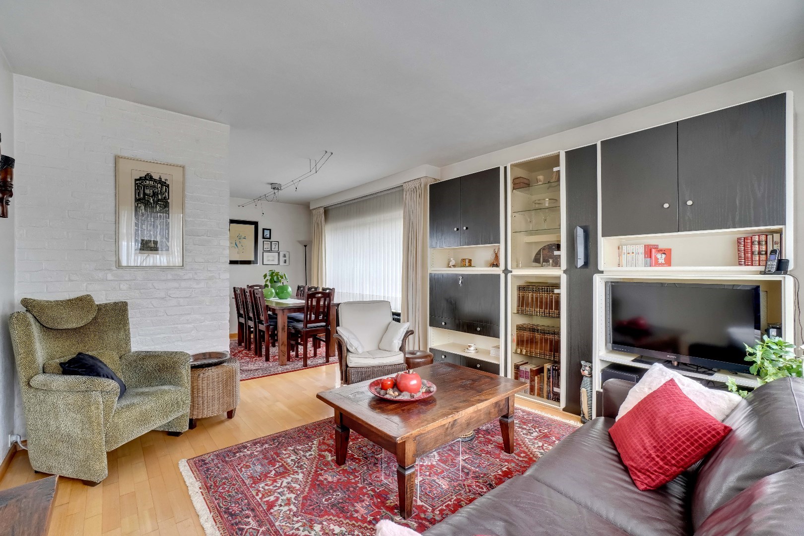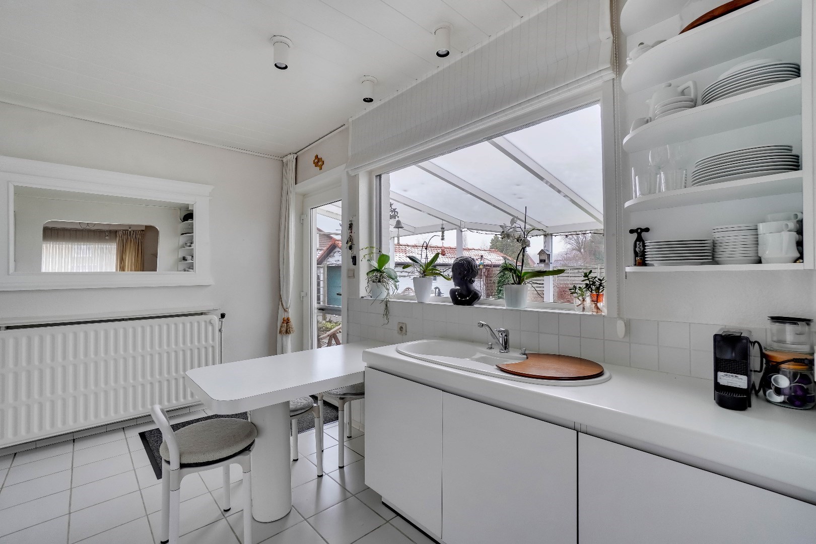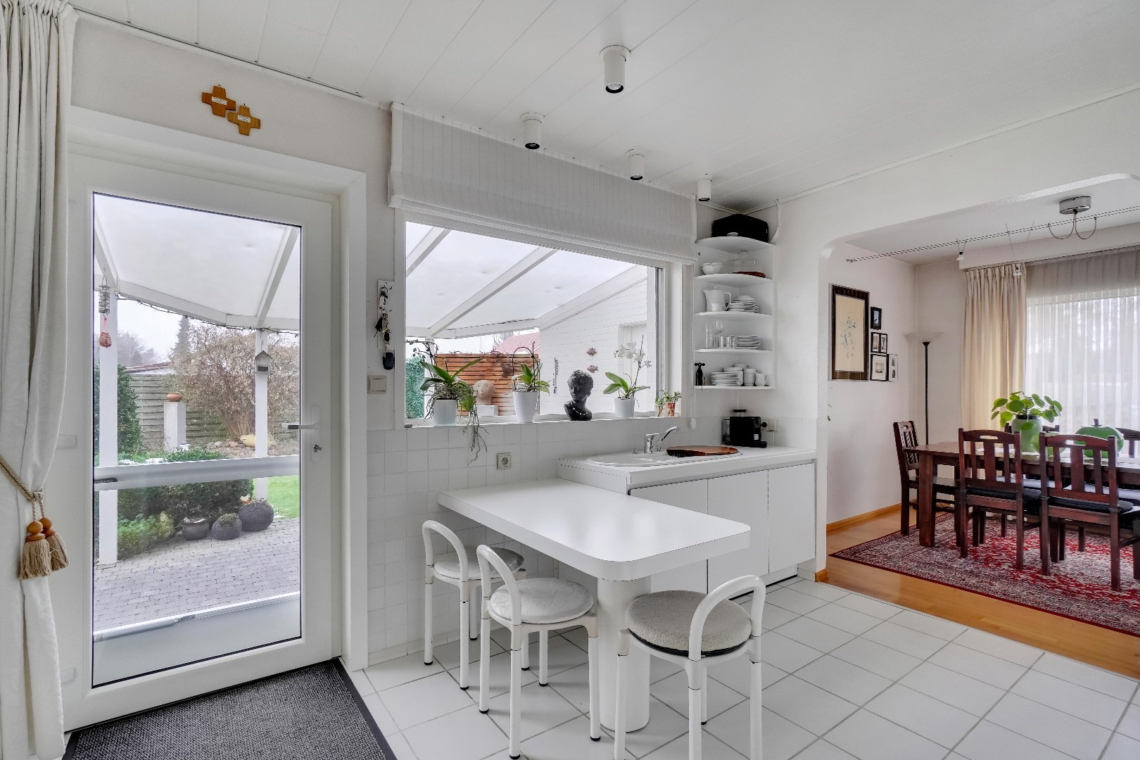 Via de inkomhal met gastentoilet heb je toegang via een deur tot de woonkamer en eetplaats. Naastgelegen bevindt zich de volledig uitgeruste keuken. Via de raampartijen heb je vanuit de leefruimte en keuken zicht op het overdekte terras en de tuin.