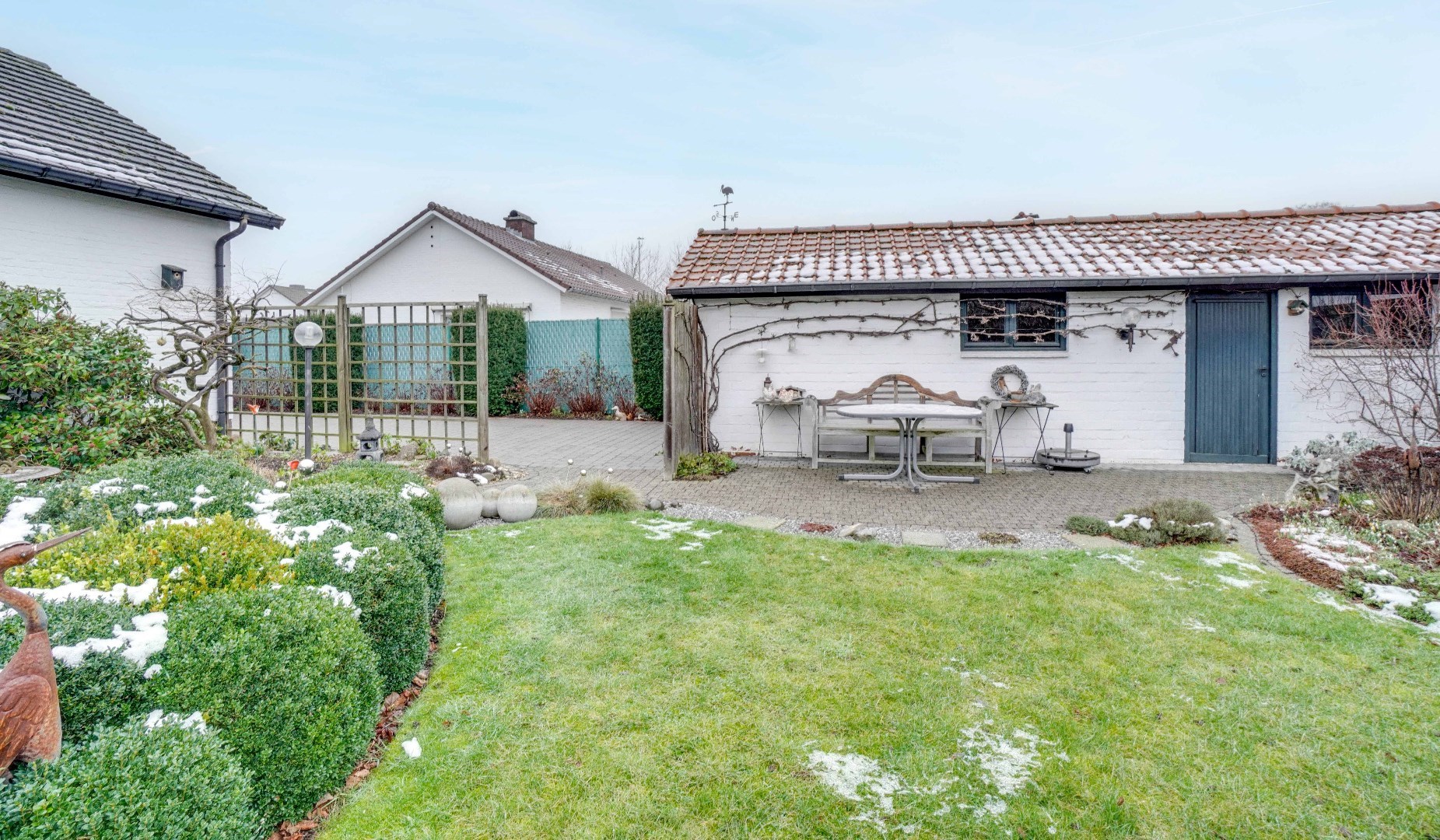 In de tuin is er een garage met aansluitend een tuingebouw terug te vinden alsook zijn er voldoende autostaanplaatsen aanwezig.