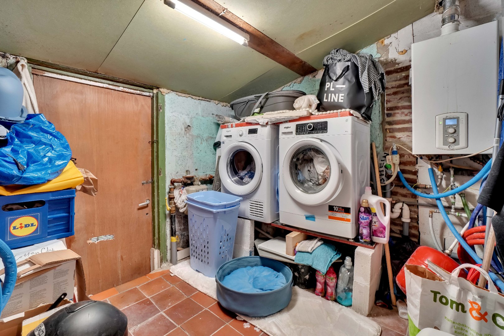 Het terrasje aan de achterzijde is toegankelijk via deze bergruimte. In de bergruimte zijn de voorzieningen aanwezig voor een wasmachine en droogkast. Ook de hoogrendementsketel op gas staat in deze ruimte, deze werd geplaatst in 2018.