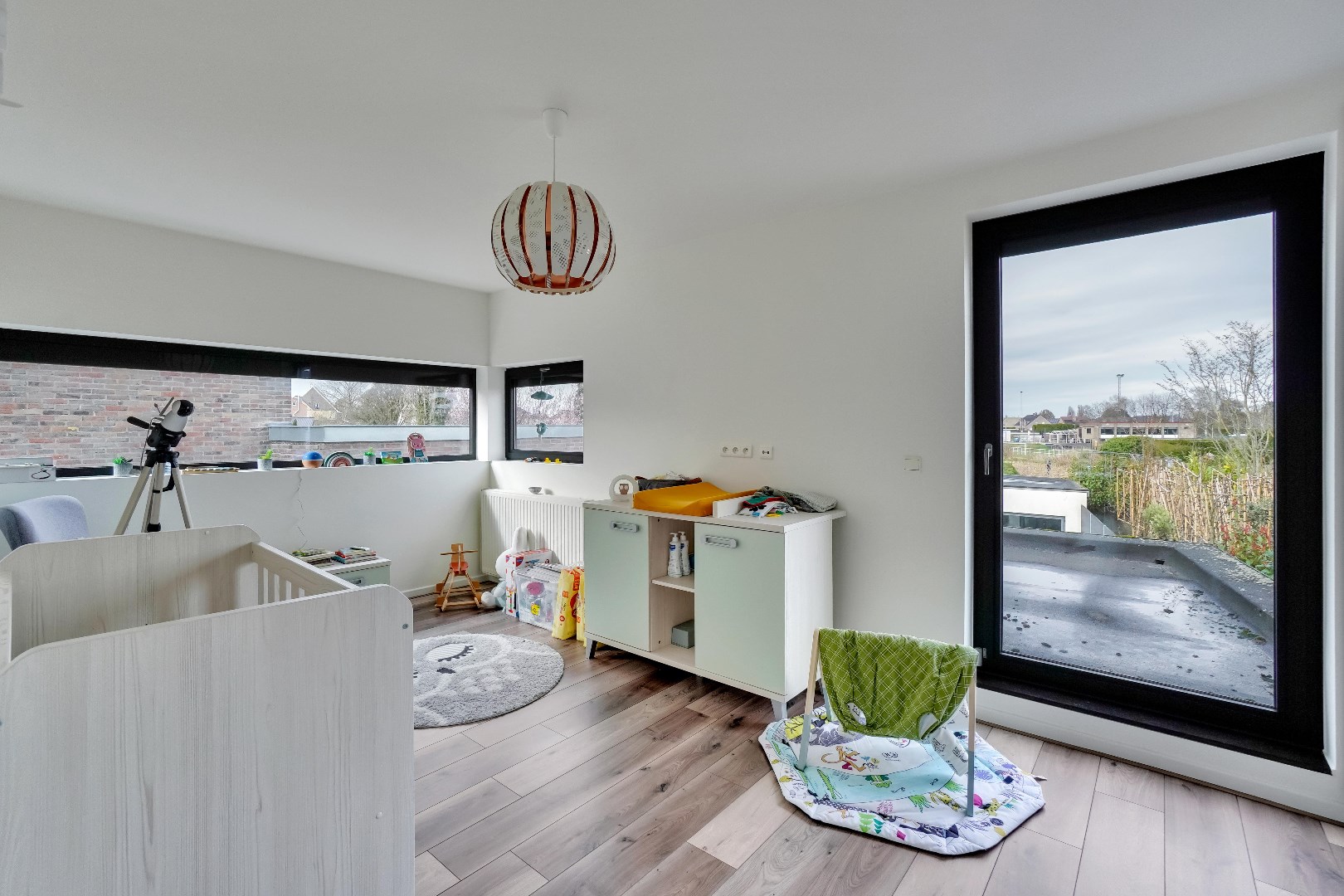 Via de vaste trap begeeft u zich naar de 2e verdieping, die momenteel ingericht is als 4de slaapkamer. Deze verdieping is een multifunctionele ruimte die perfect is voor gezinnen die extra leefruimte nodig hebben. Het biedt voldoende plaats voor een verscheidenheid aan toepassingen. Deze verdieping kan namelijk dienen als een extra slaapkamer, speelkamer, kantoor of fitnessruimte. Het is daarenboven ook voorzien van een ruim terras aan de voor- en achtergevel. Dit terras is de perfecte plek om te genieten van de buitenlucht en het mooie weer.