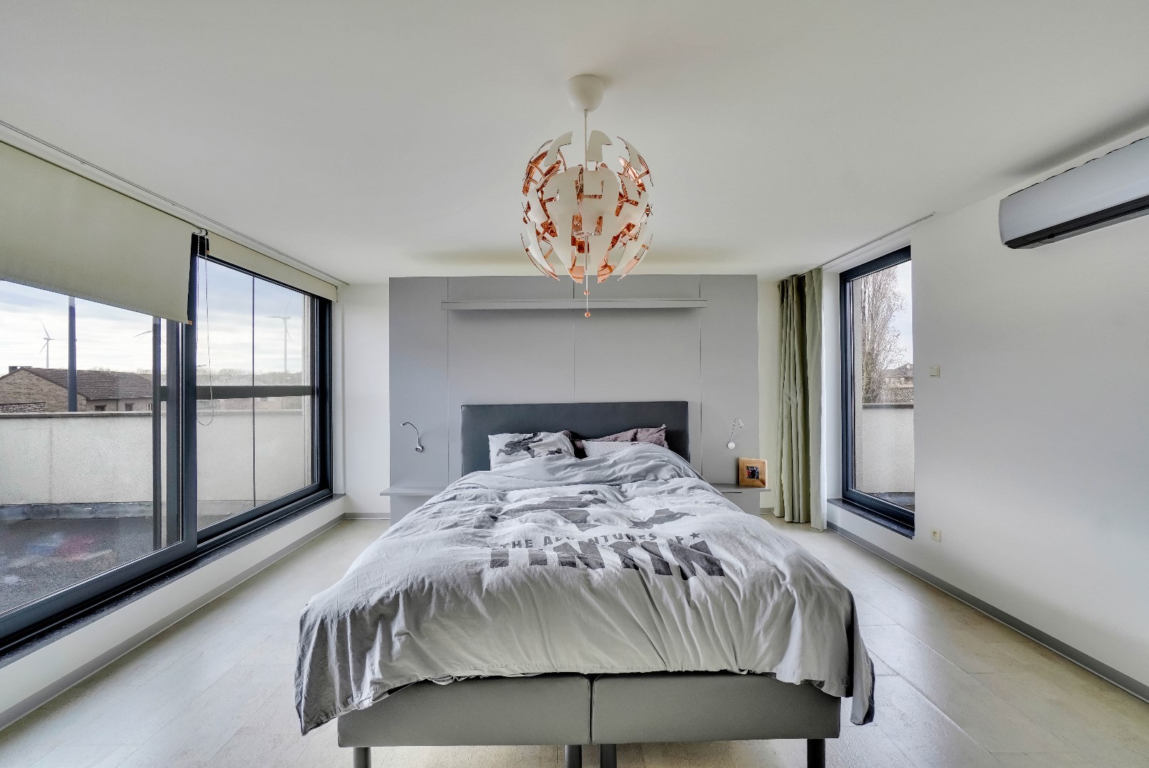 Op de eerste verdieping bevinden zich 3 slaapkamers waarvan 2 grote en 1 die momenteel ingericht is als dressing. De slaapkamer aan de achterzijde van de woning is voorzien van een terras, dit maakt deze slaapkamer extra bijzonder. De grote raampartijen zorgen voor veel lichtinval, waardoor de kamers een frisse en ruimtelijke uitstraling hebben.