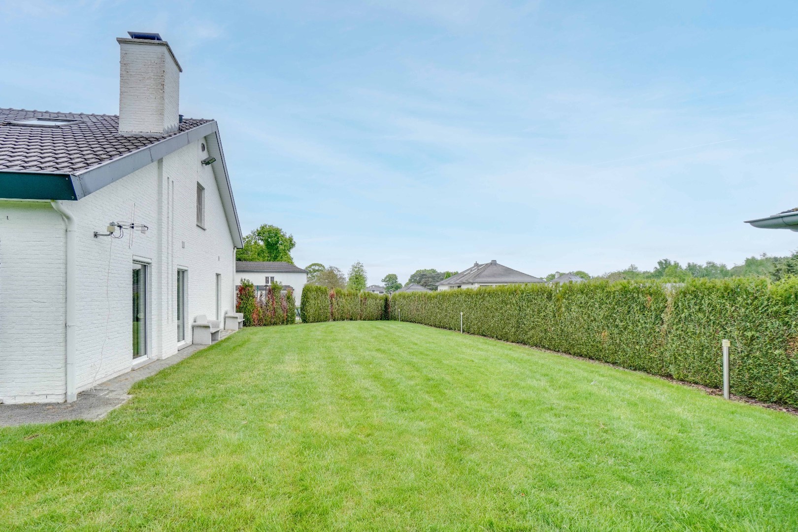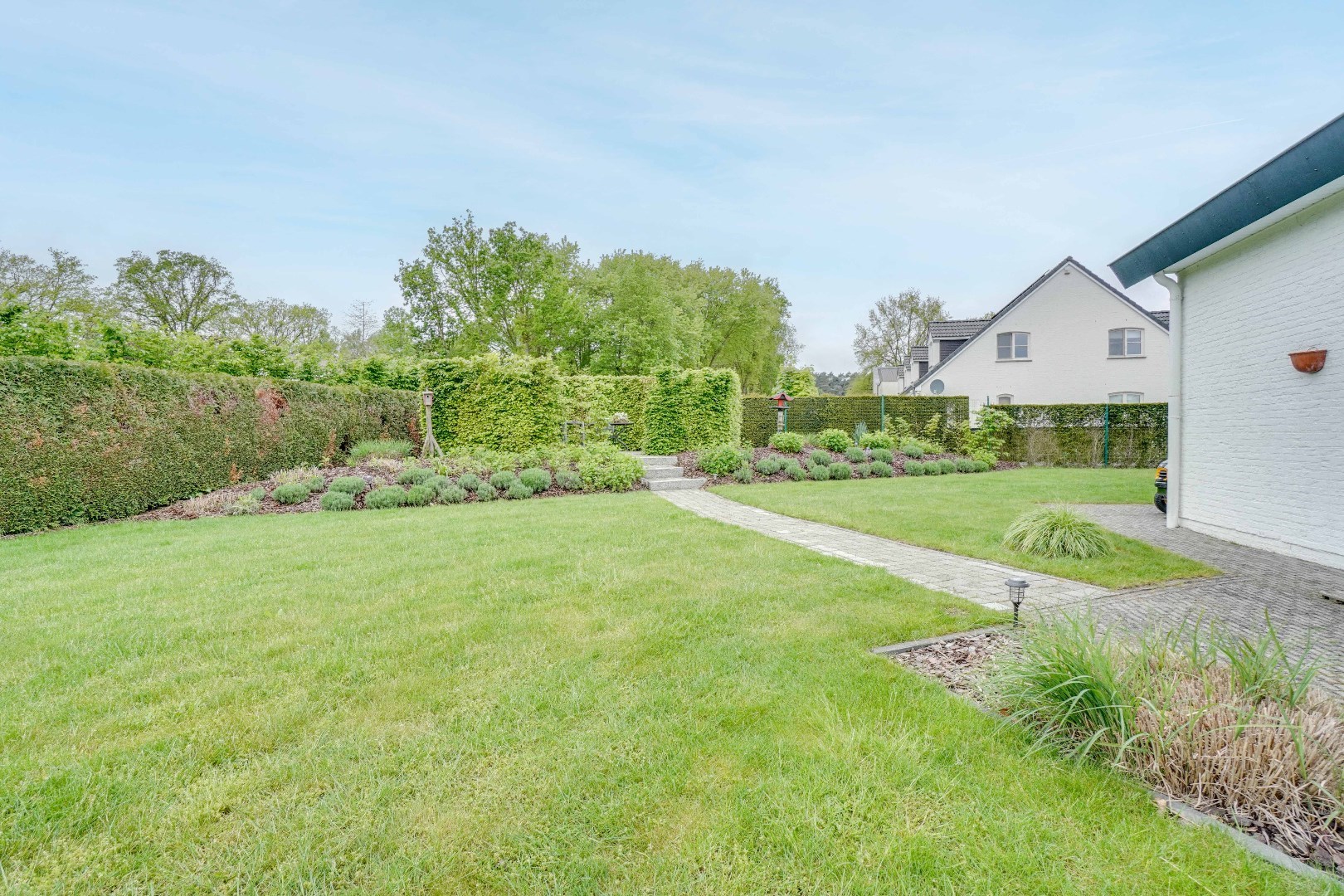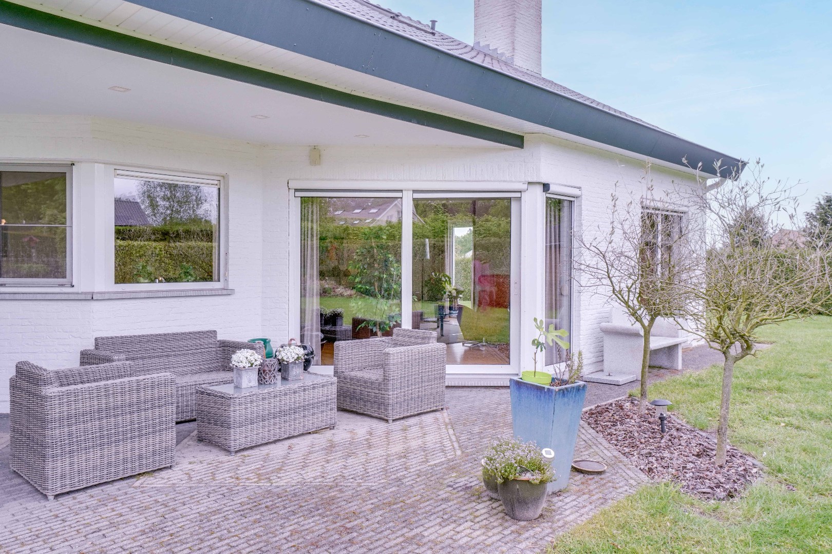De zuid-westelijk georiënteerde tuin is voorzien van een overdekt terras, dit maakt de tuin doorheen het hele jaar heerlijk vertoeven.