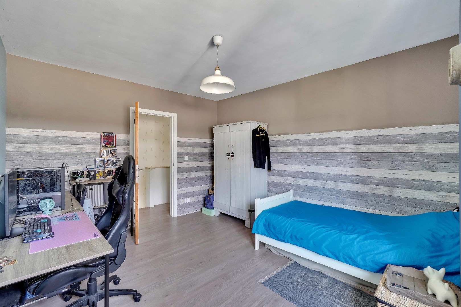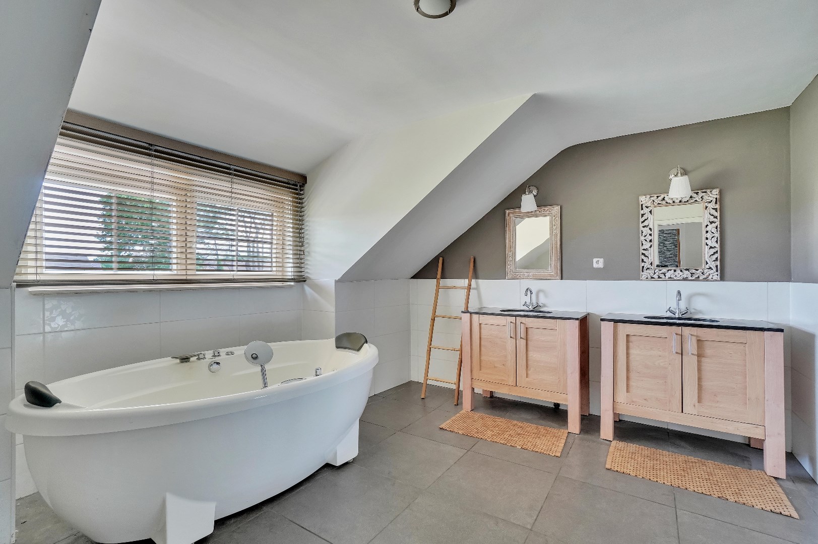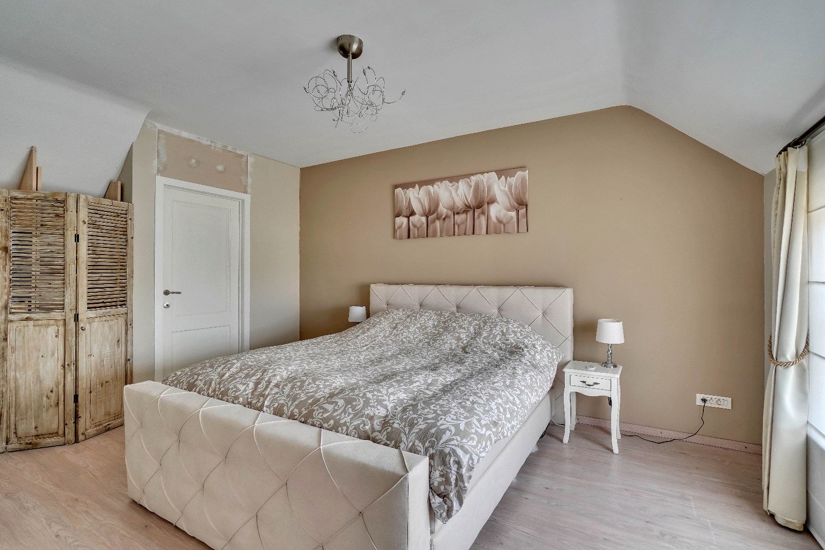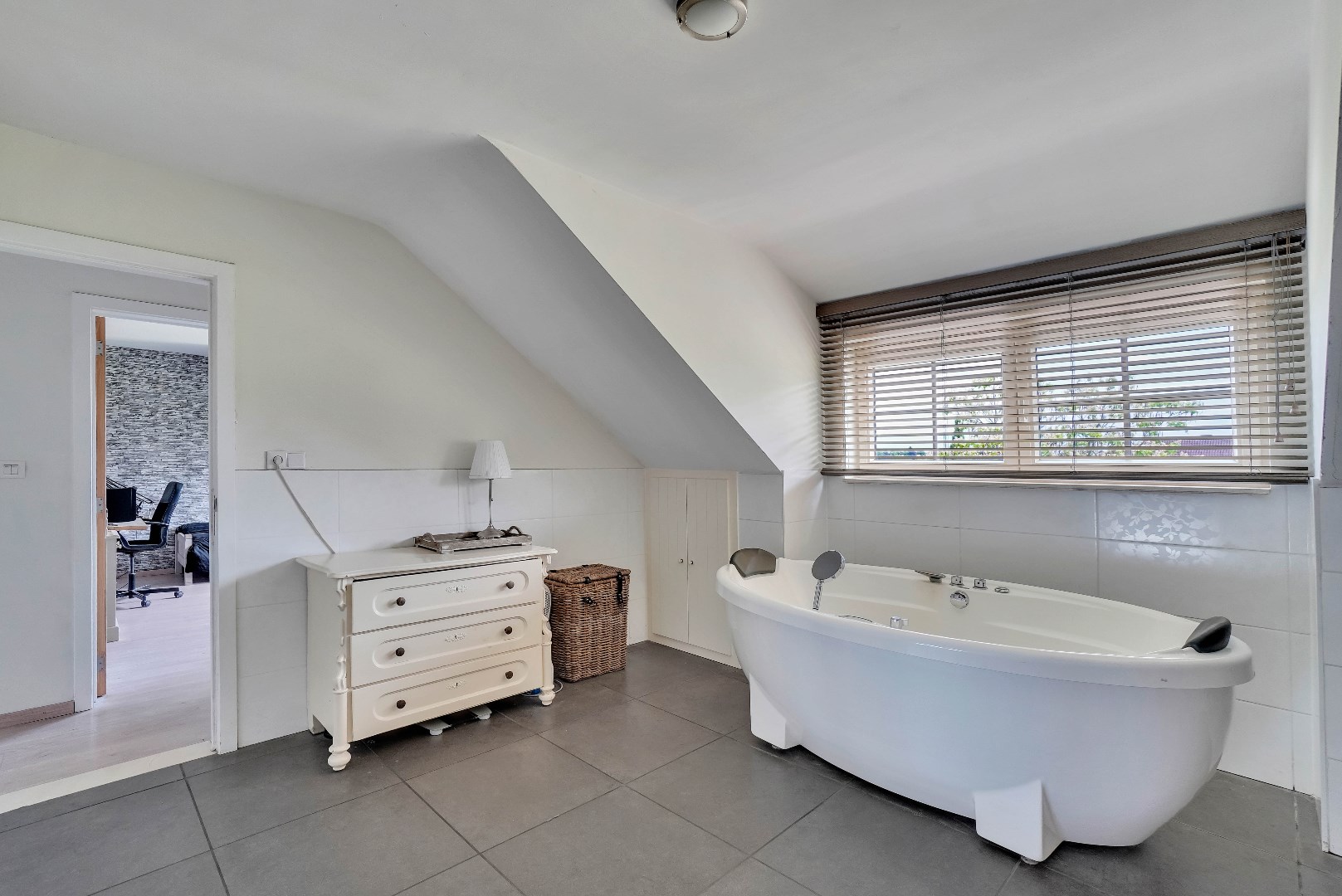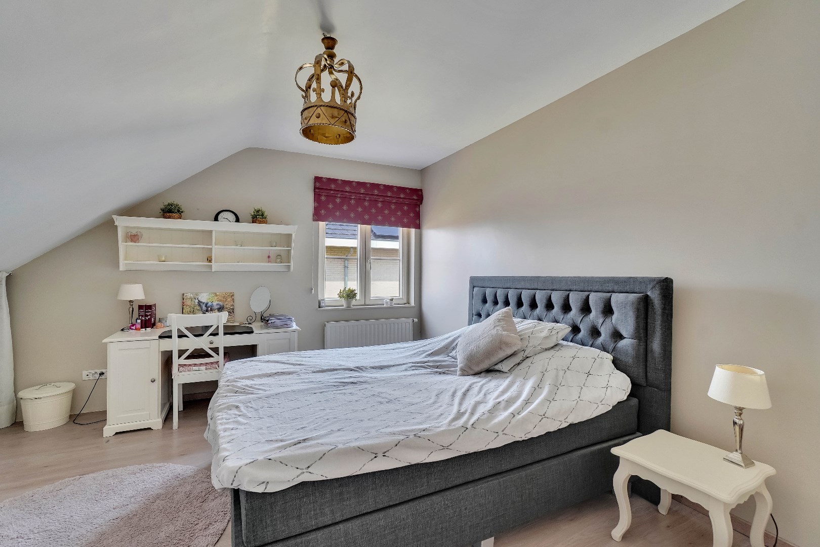 Een vaste trap leidt naar de zolder, dewelke opgedeeld is in 2 ruimtes. Hier zijn reeds aansluitingen voorzien voor een eventuele tweede badkamer.