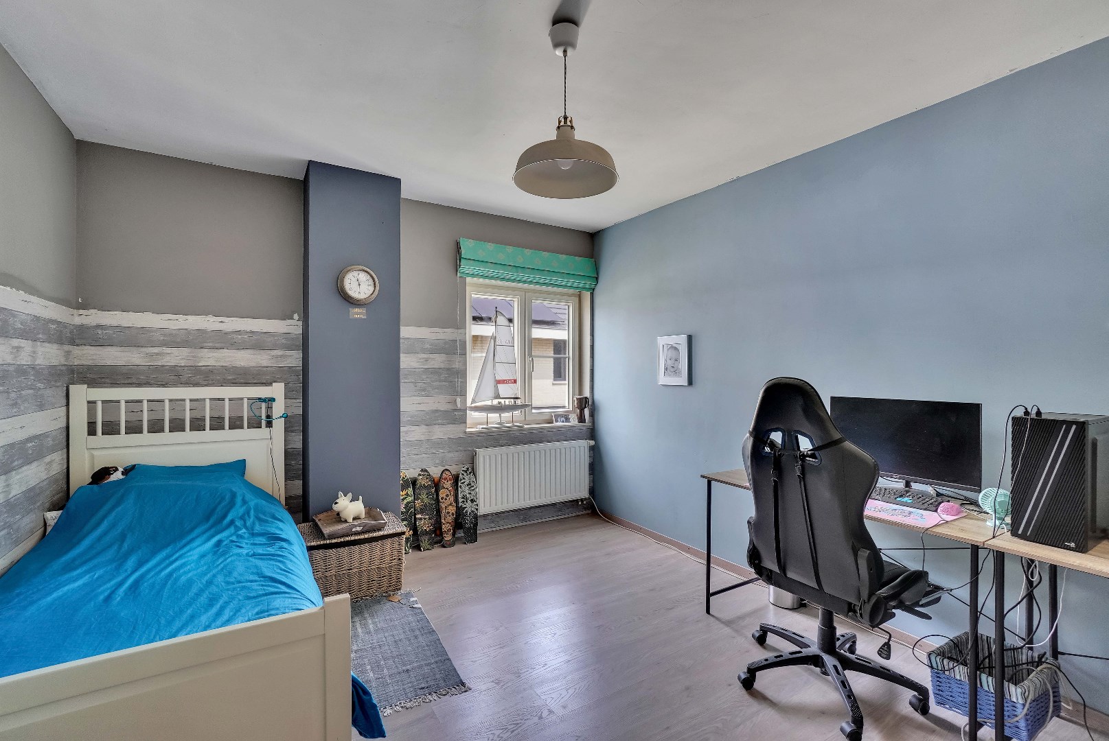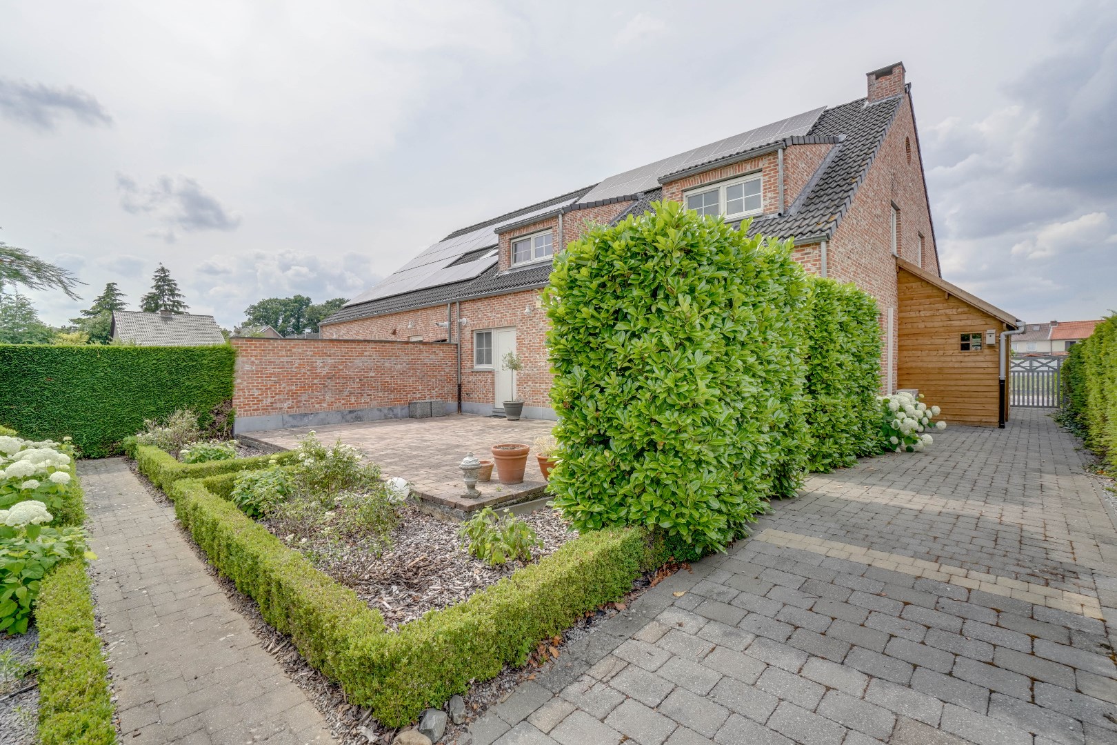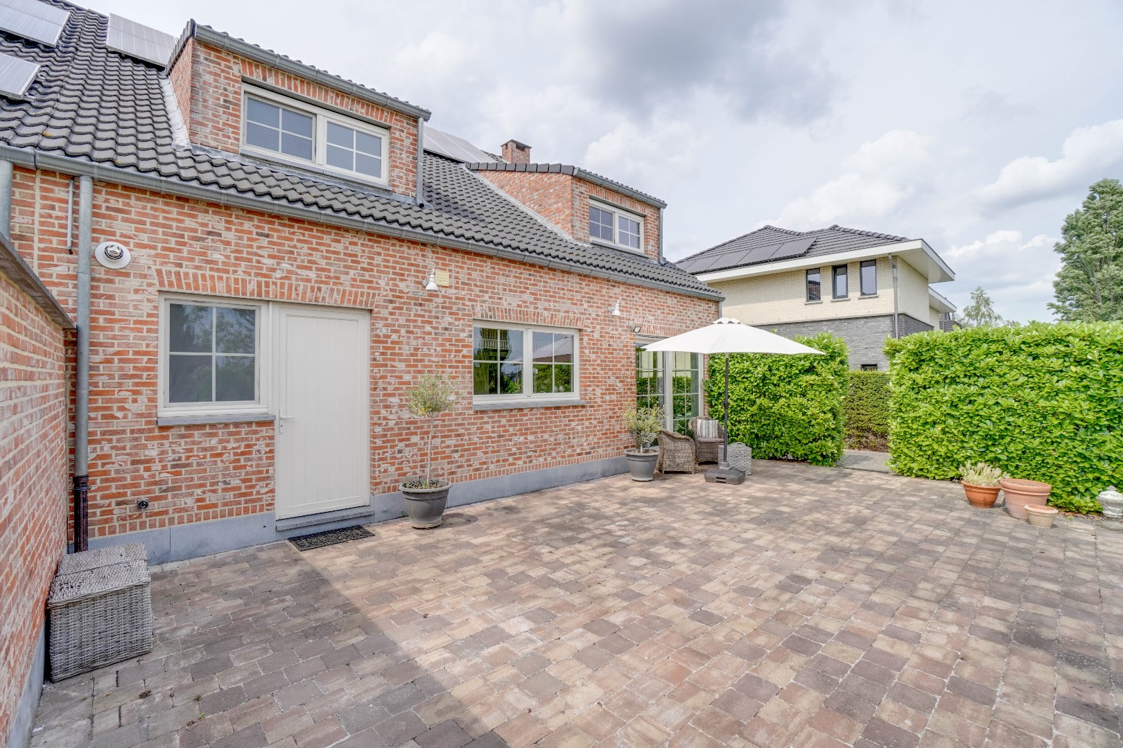 De zuid-oostelijk georiënteerde tuin biedt zowel een terrasgedeelte als een grasgedeelte, perfect voor buitenactiviteiten en ontspanning. Deze woning biedt ook diverse praktische voorzieningen, waaronder een ruime kelder en een inpandige garage.