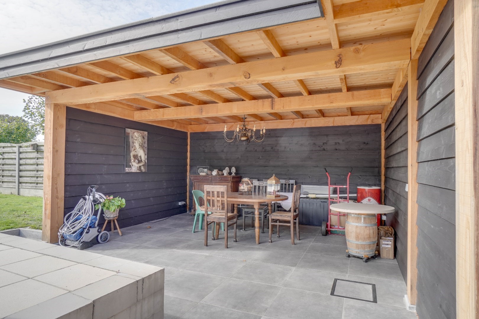 Daarenboven is er een inpandige garage + een dubbele carport aanwezig.