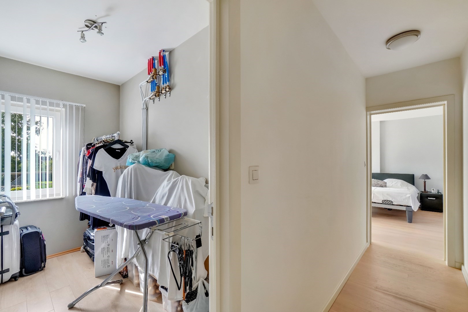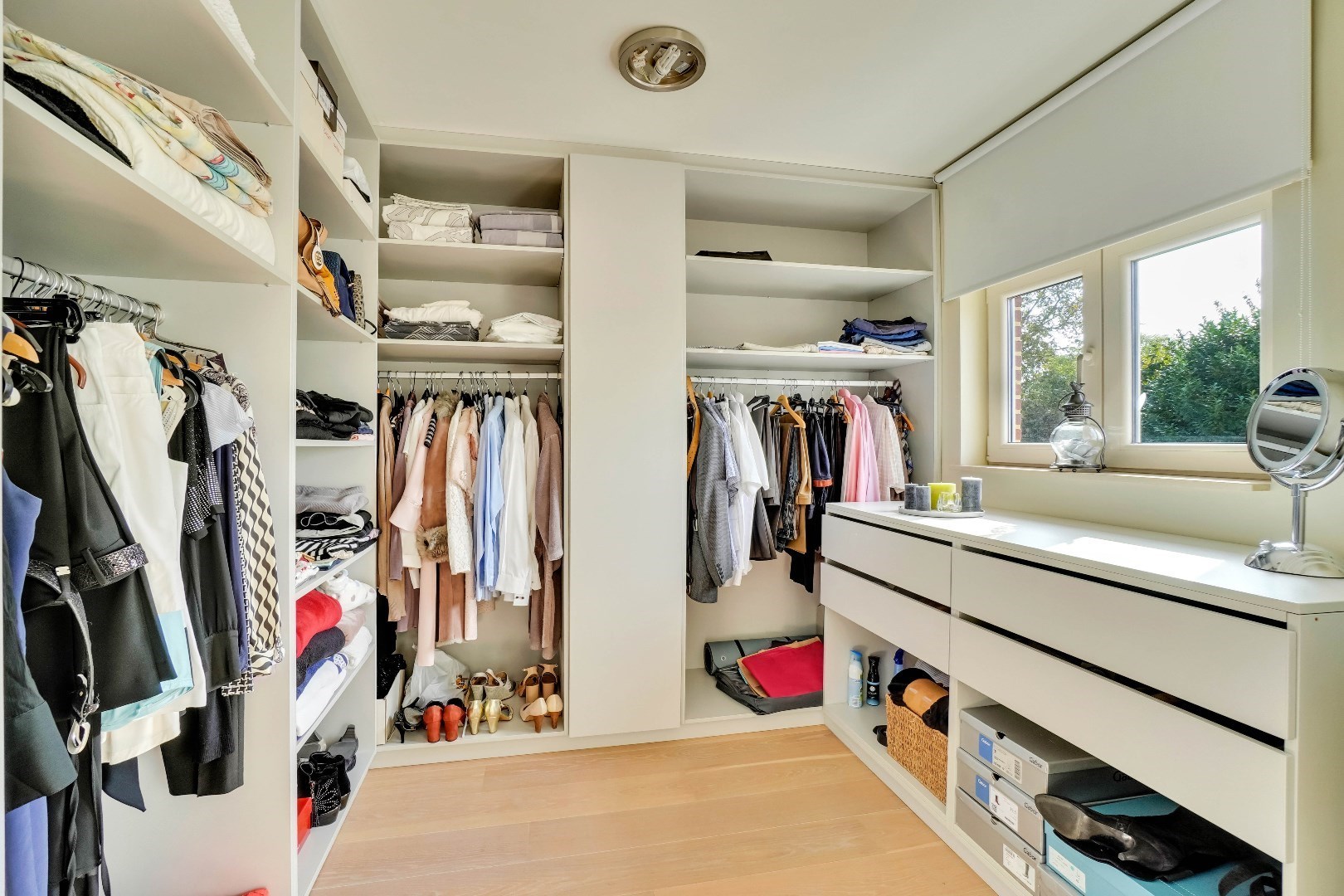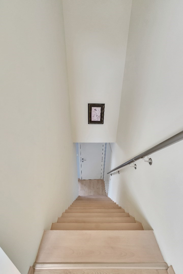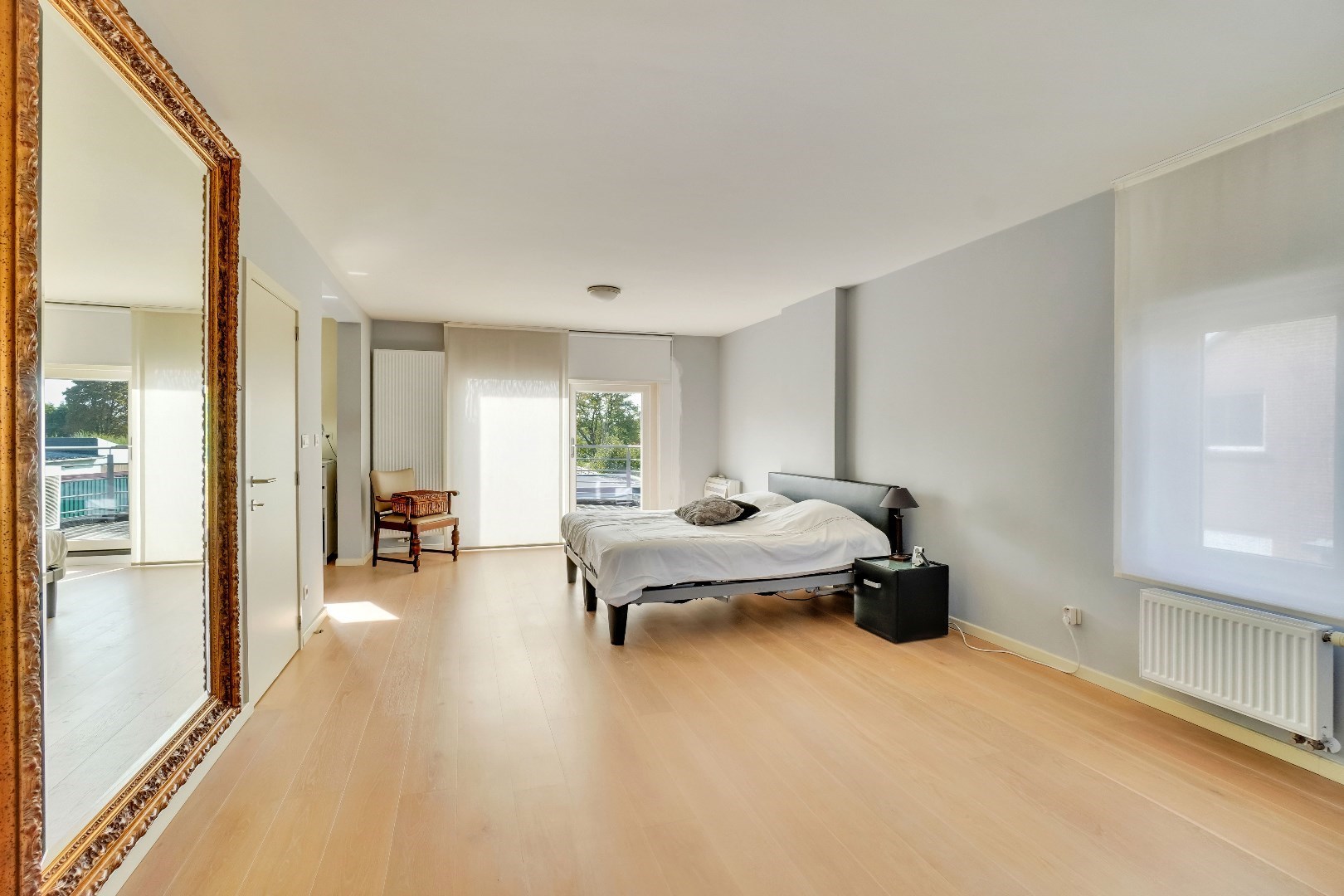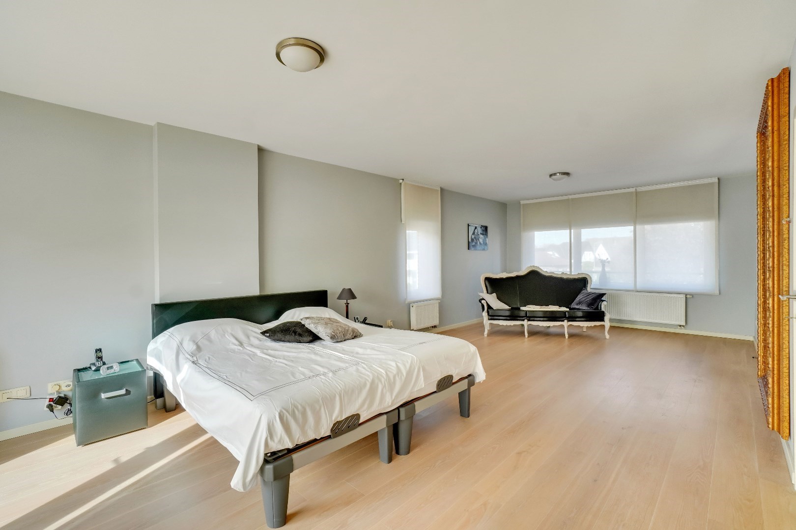 Op de eerste verdieping zijn er 2 slaapkamers en een bergruimte aanwezig, waarvan de masterbedroom met inloopkast een oppervlakte heeft van +/- 43 m². Daarenboven biedt deze ruimte toegang tot het balkon met uitzicht op de tuin.