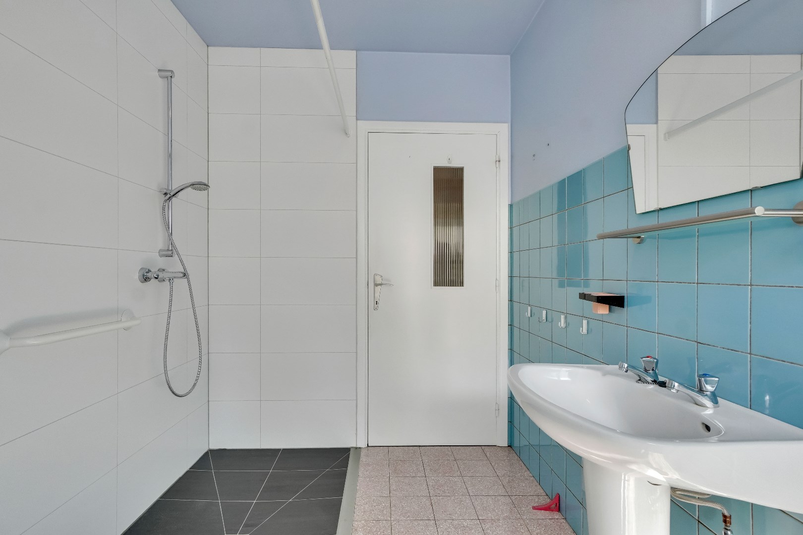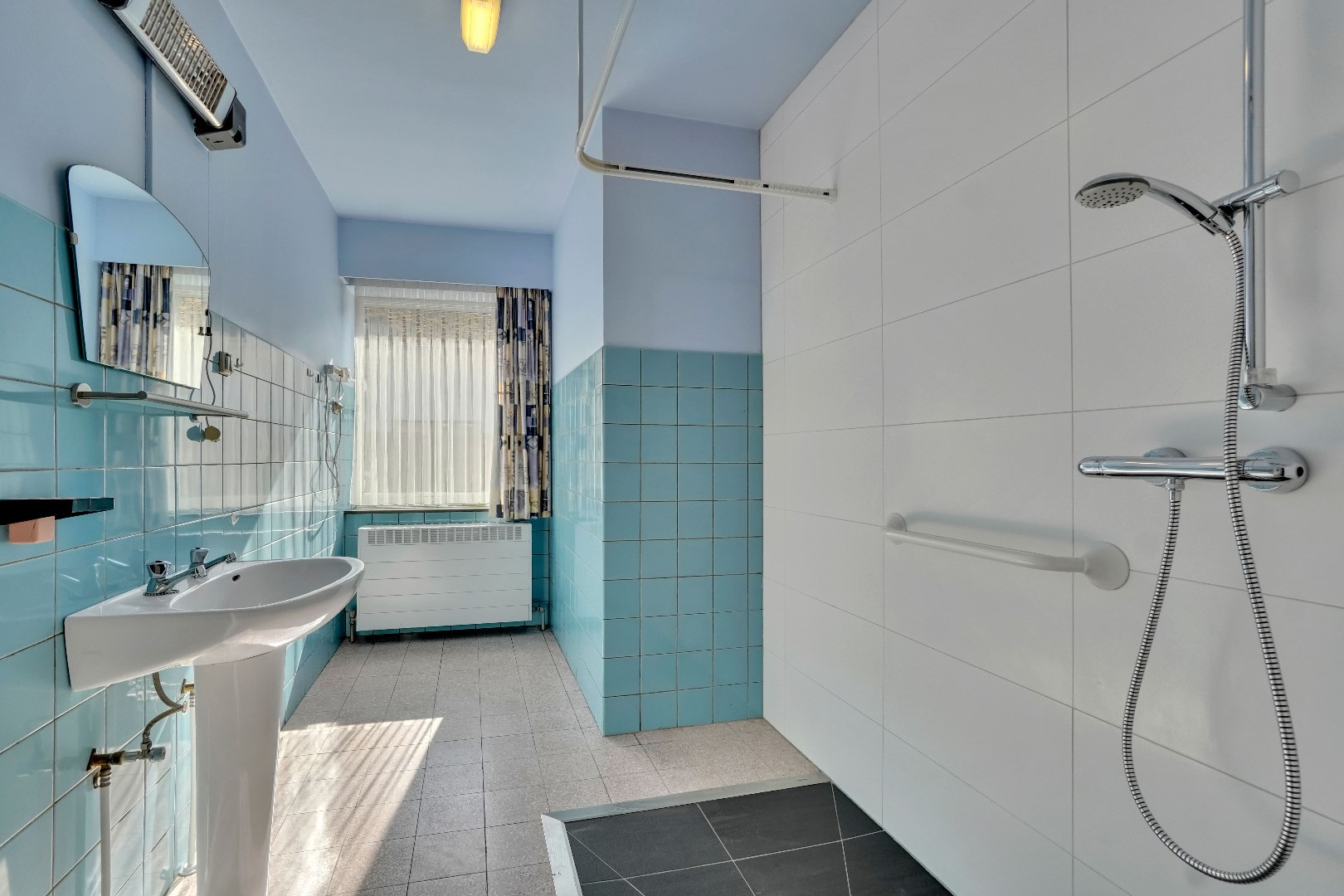De badkamer is momenteel voorzien van een wastafel en ruime inloopdouche.