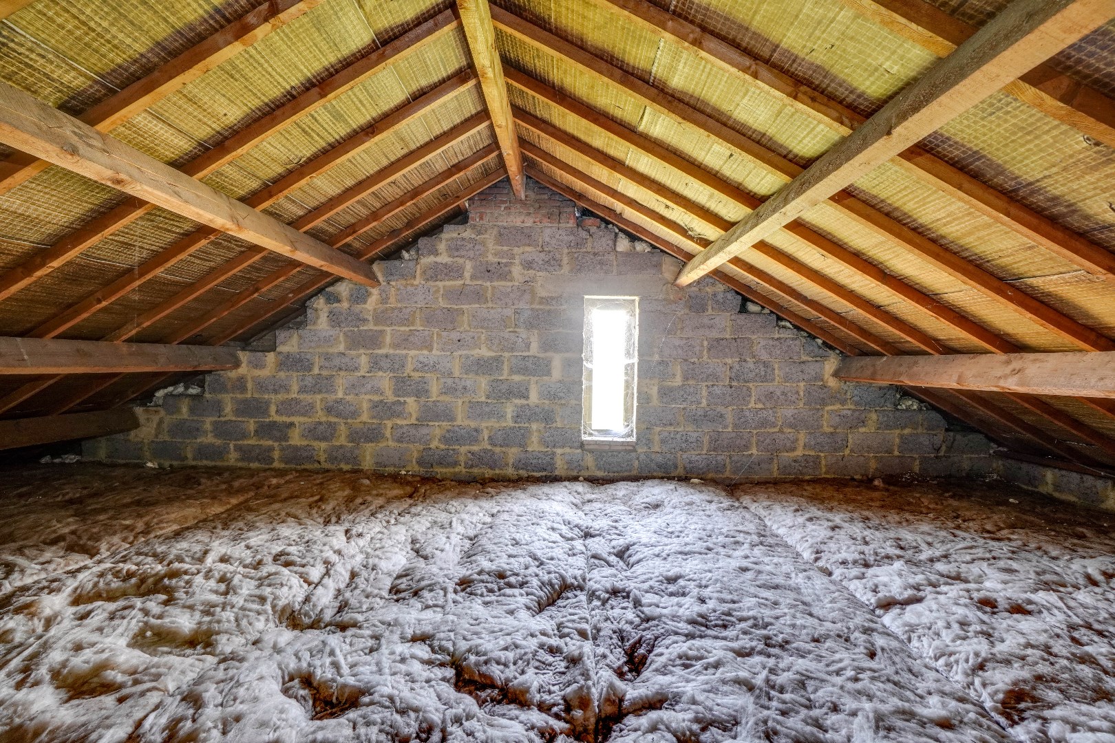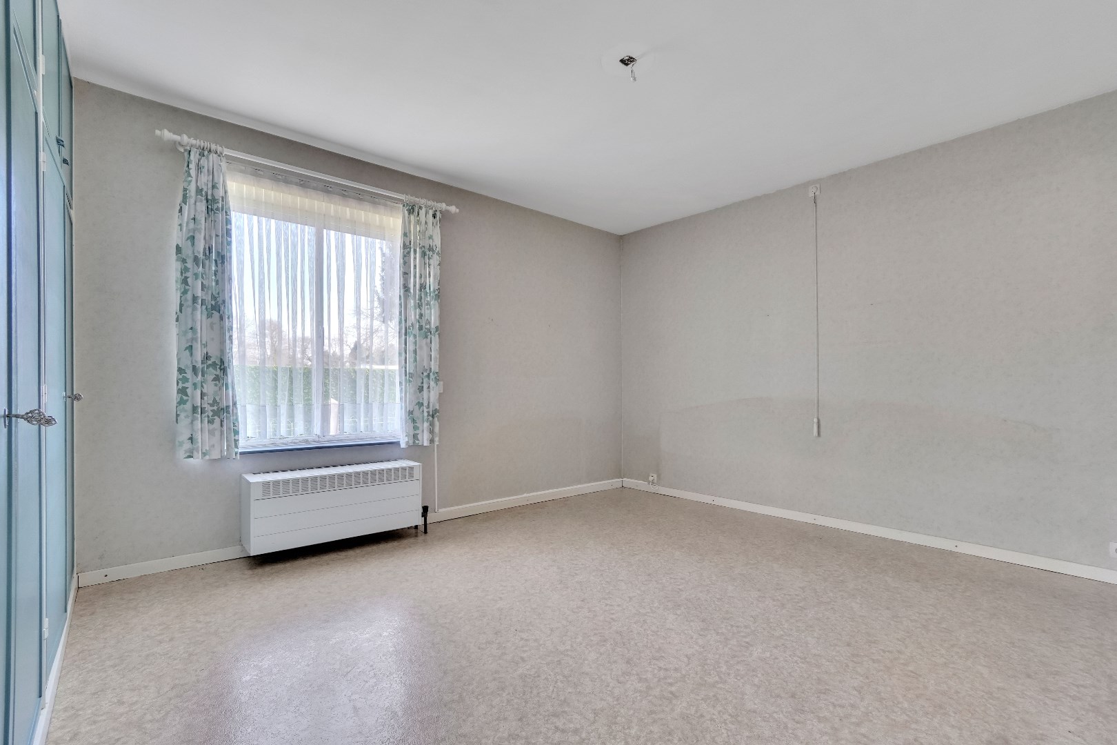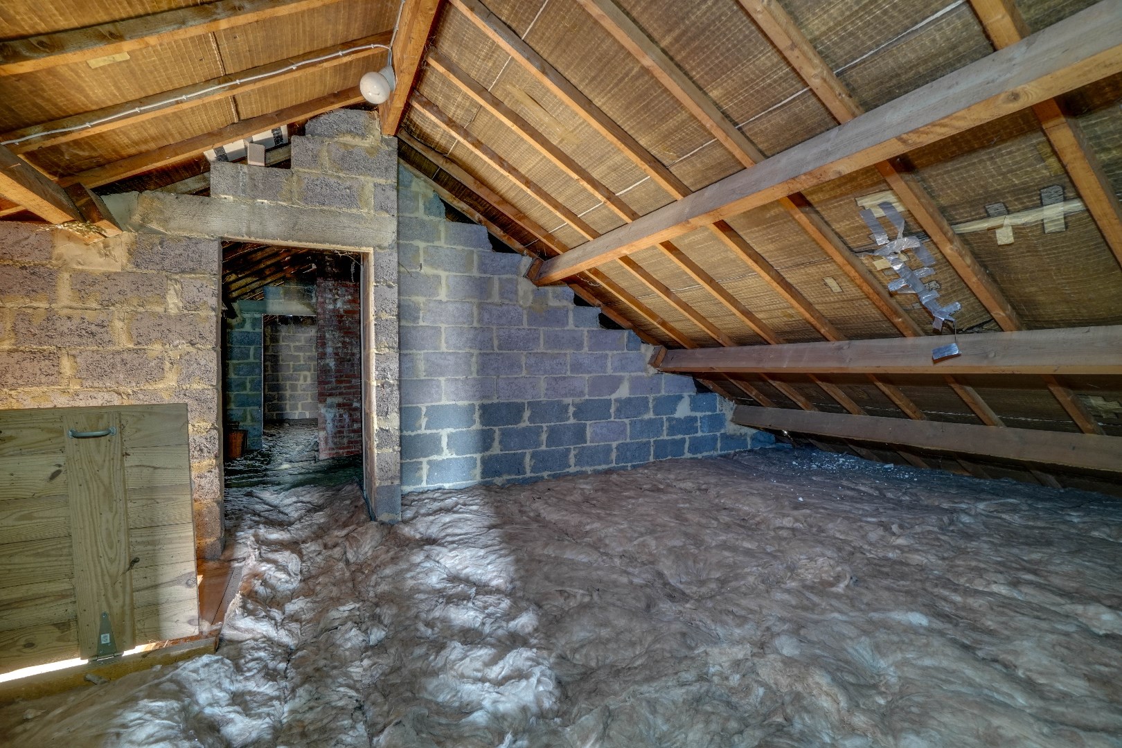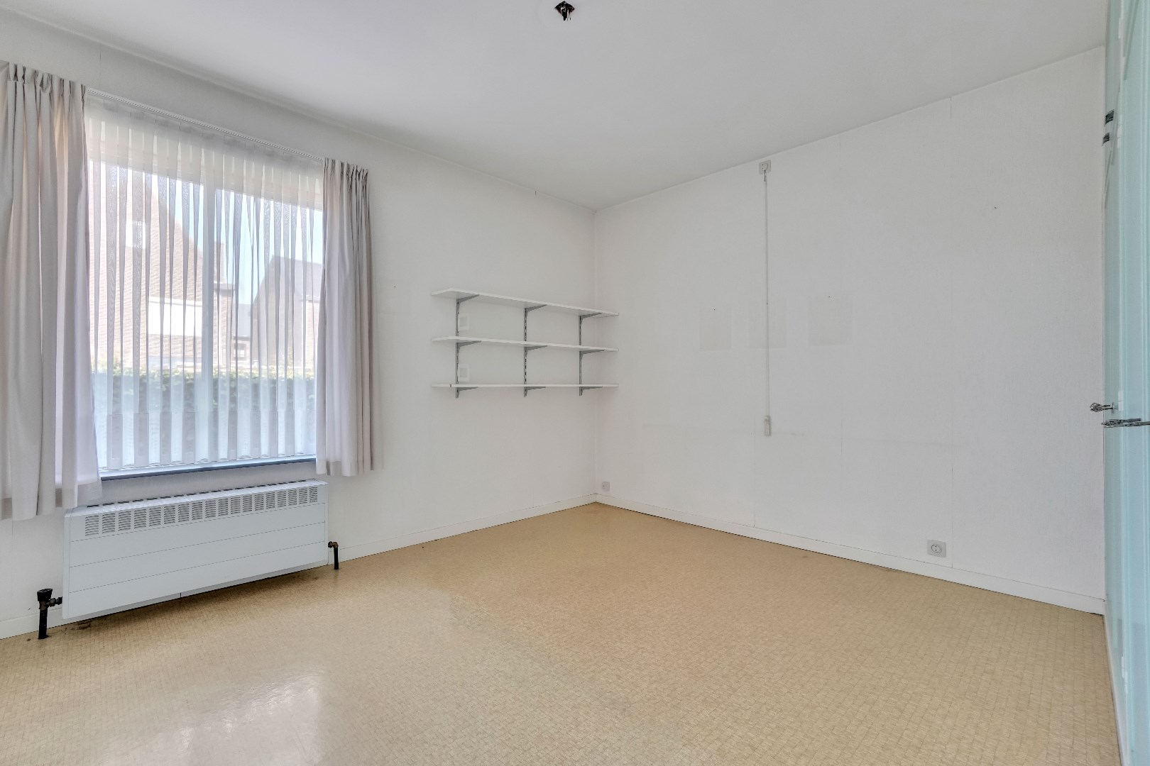De hal achter de keuken verleent toegang naar buiten alsook naar de zolder, te bereiken via een vaste trap. Door zijn oppervlakte van maar liefst +/- 67 m² biedt de zolder potentieel voor het inrichten van extra kamers.