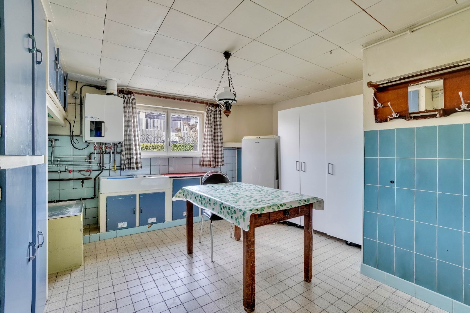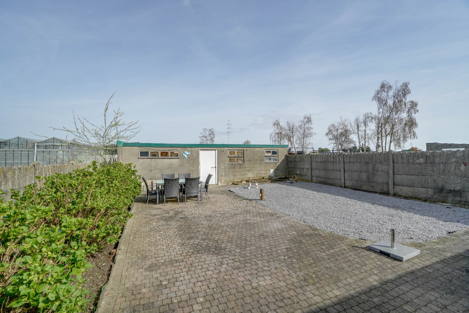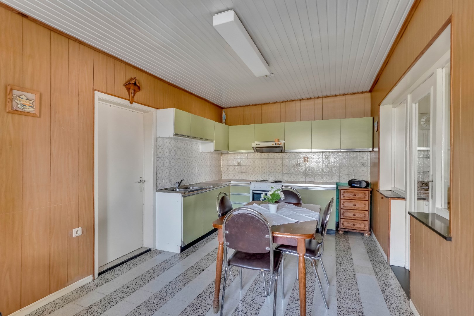 Vanuit de inkomhal is er toegang naar het leefgedeelte, bestaande uit een woon- en eetkamer, of naar de extra familieruimte. Via beide ruimtes kan men de keuken betreden, dewelke tevens voldoende plaats biedt voor een eetkamer in te richten. Aan de keuken bevindt zich de entrée naar de buitenruimte. Achter de keuken is er een berging/wasplaats, voorzien van een werktafel met lavabo. Hier vinden we ook de badkamer terug, dewelke momenteel ingericht is met een wastafel en douche.