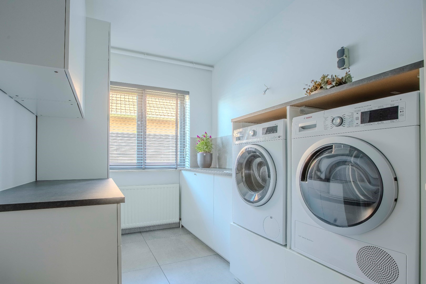 Verder vinden we op het gelijkvloers nog een praktische wasruimte terug, voorzien van een lavabo en douche. Bovendien zijn er nog 2 ruimtes dewelke momenteel ingericht zijn als bureaus, maar eventueel ook kunnen dienen als slaapkamers, hobbykamers, speelkamers ... Afhankelijk van uw wensen en behoeftes.
