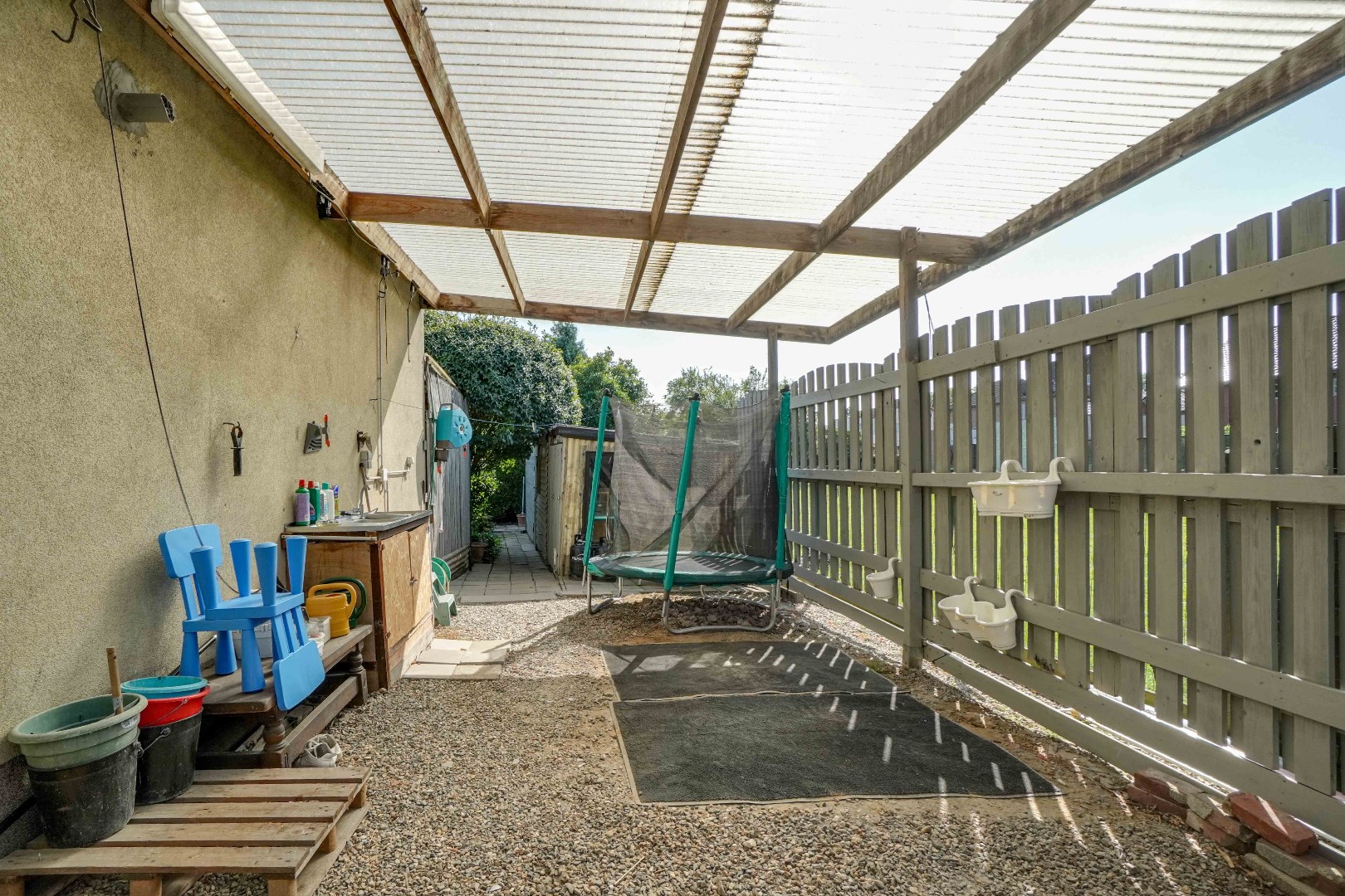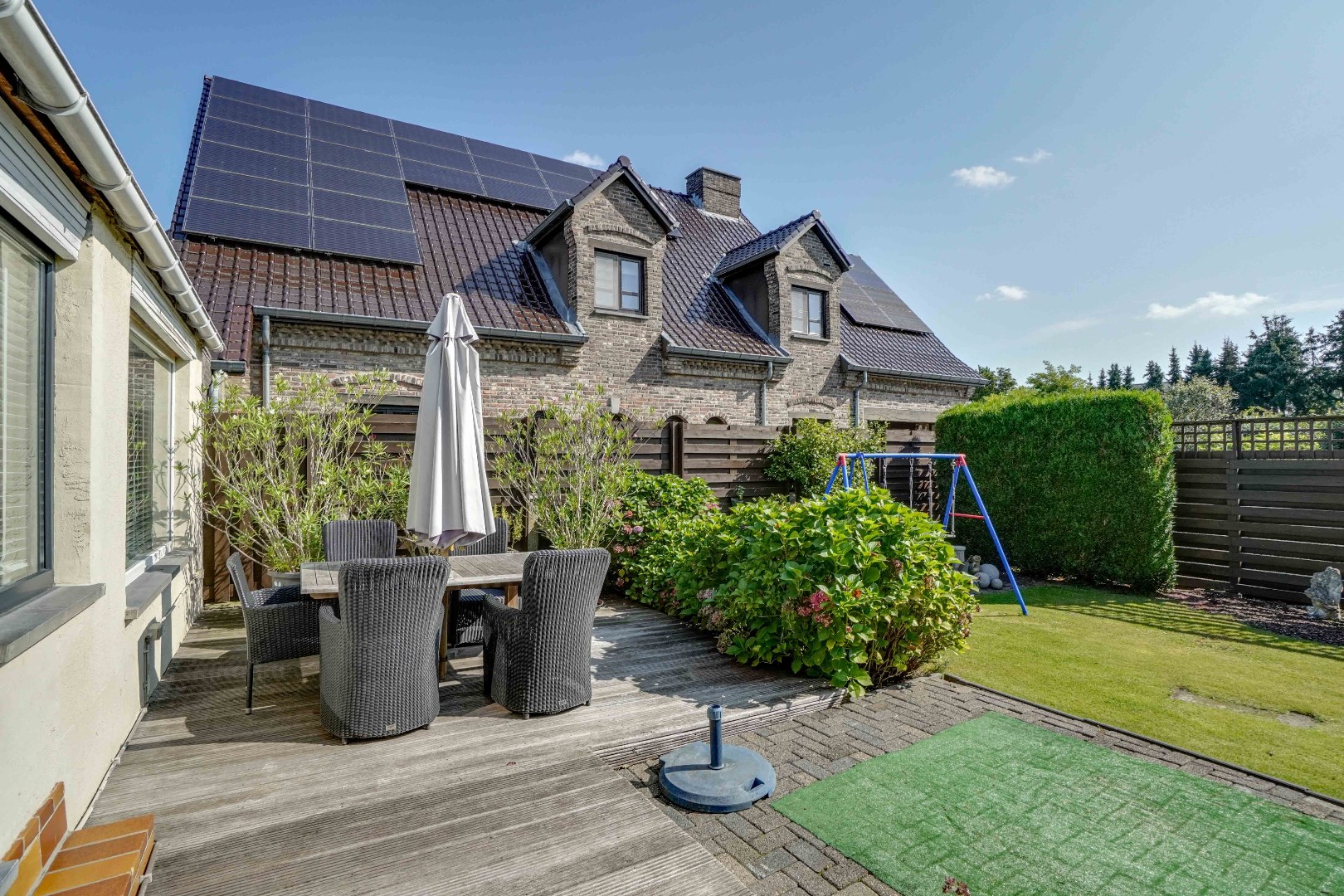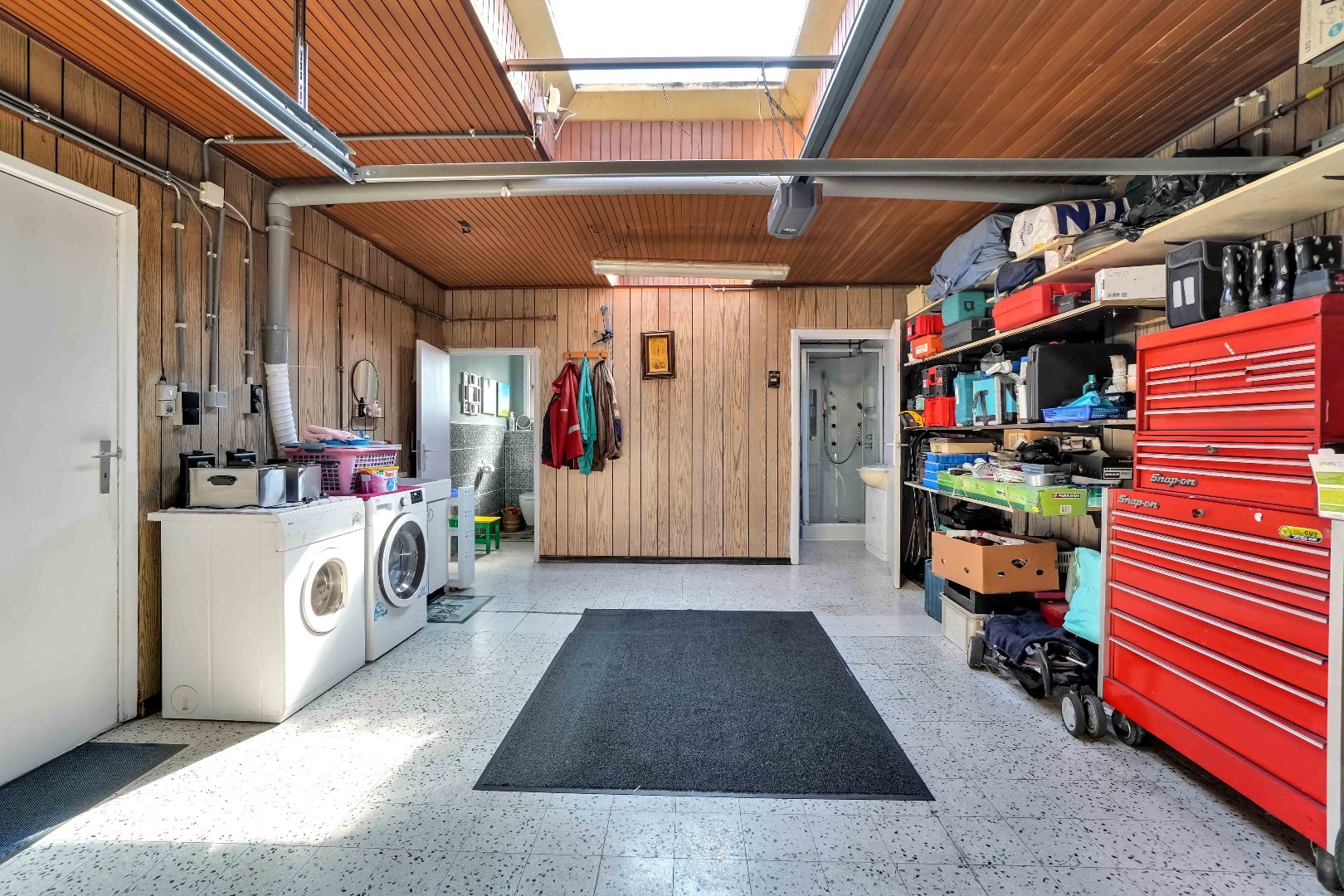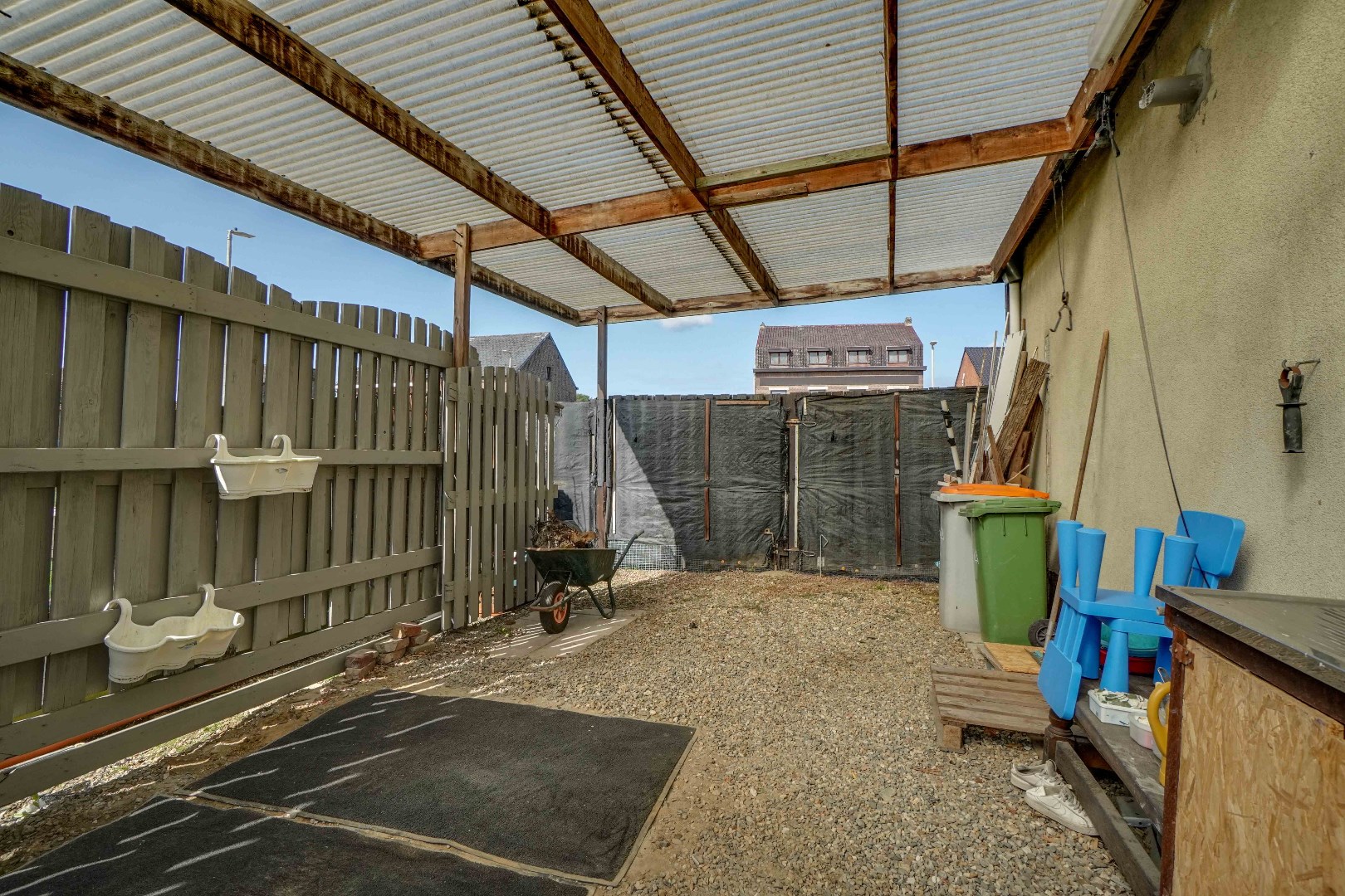 Tevens bevindt zich hier ook een carport, dewelke ervoor zorgt dat er 2 overdekte parkeerplaatsen ter beschikking zijn (garage + carport).