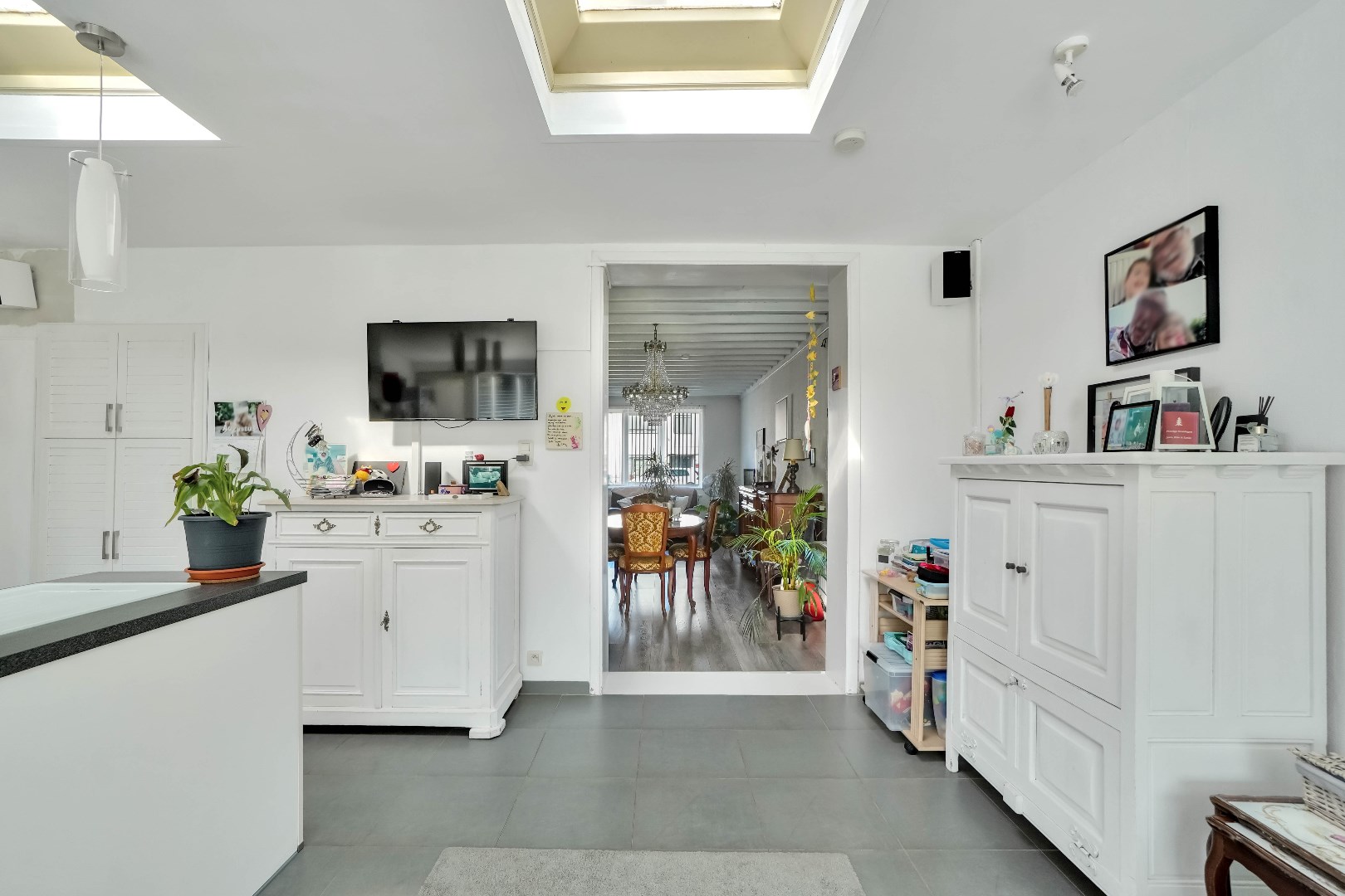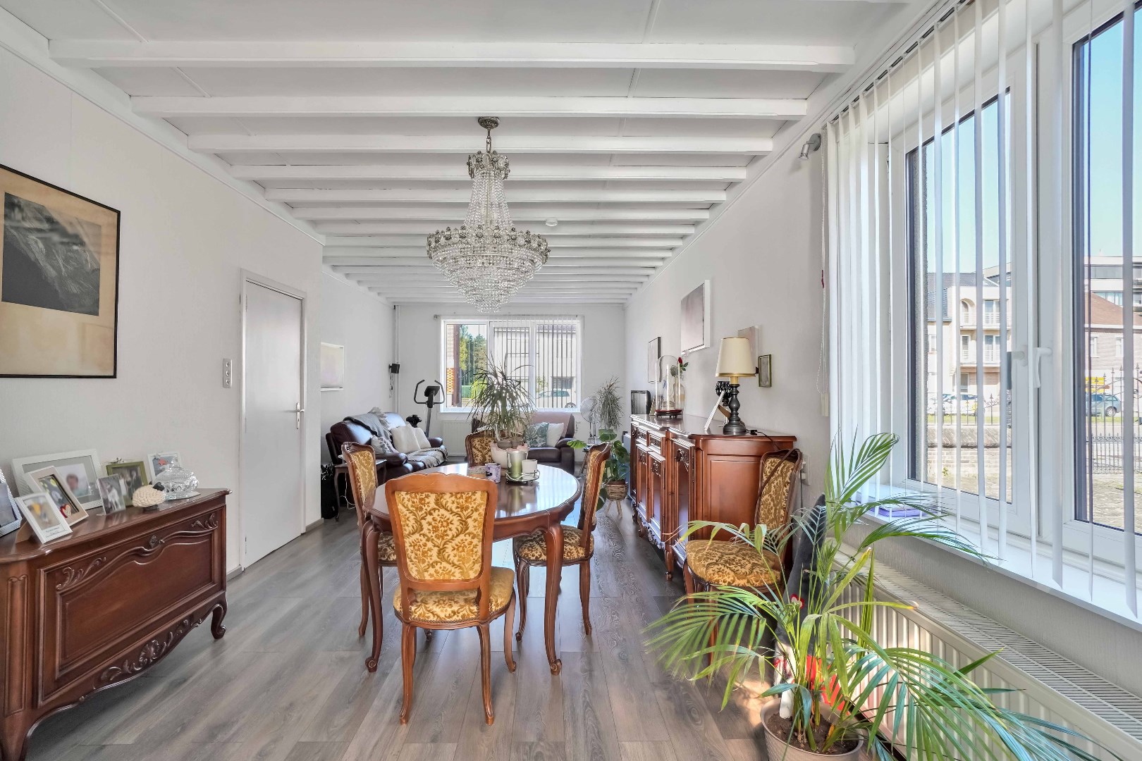 Bij binnenkomst in de woning is er toegang naar de woon- en eetkamer.