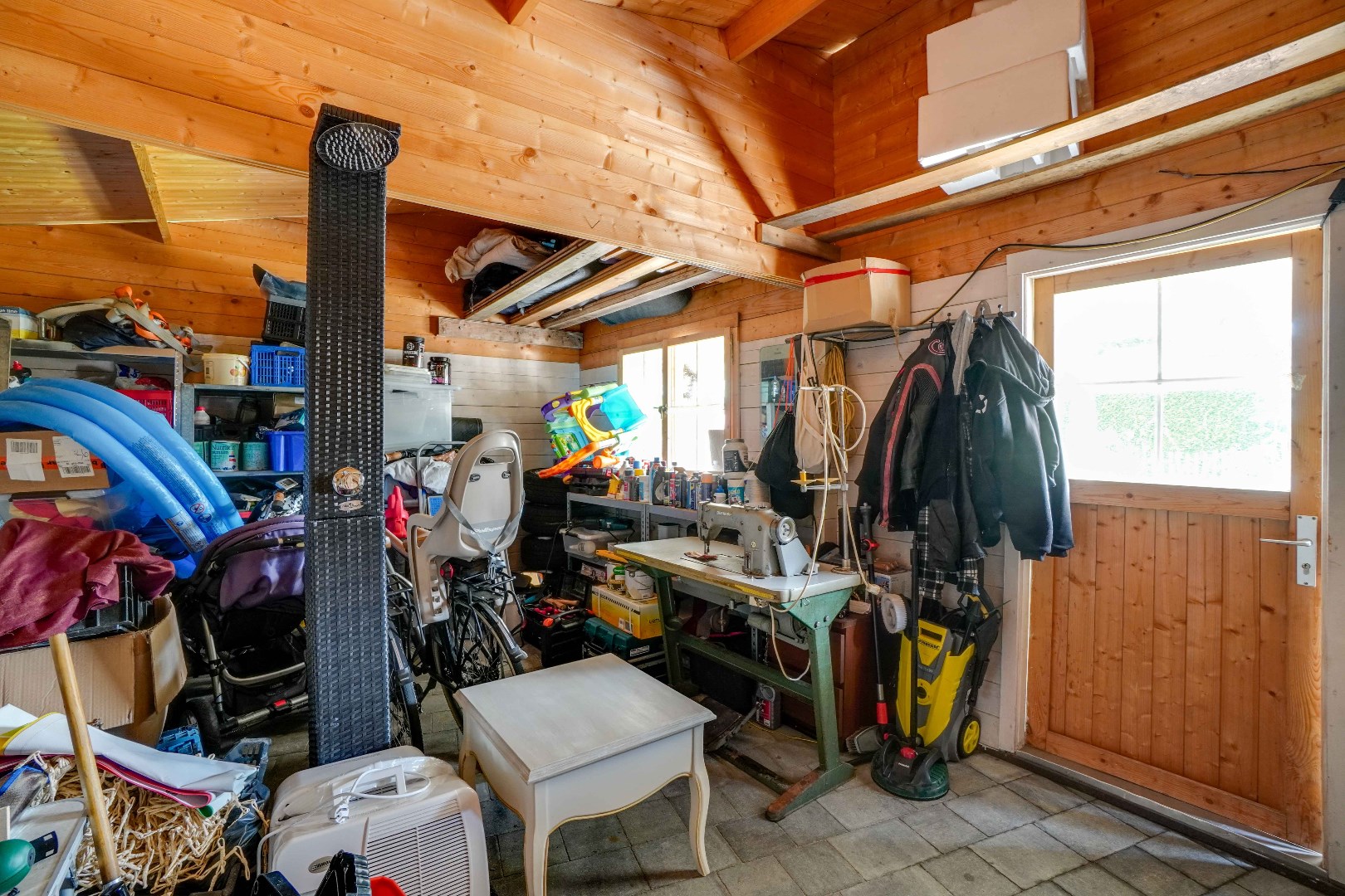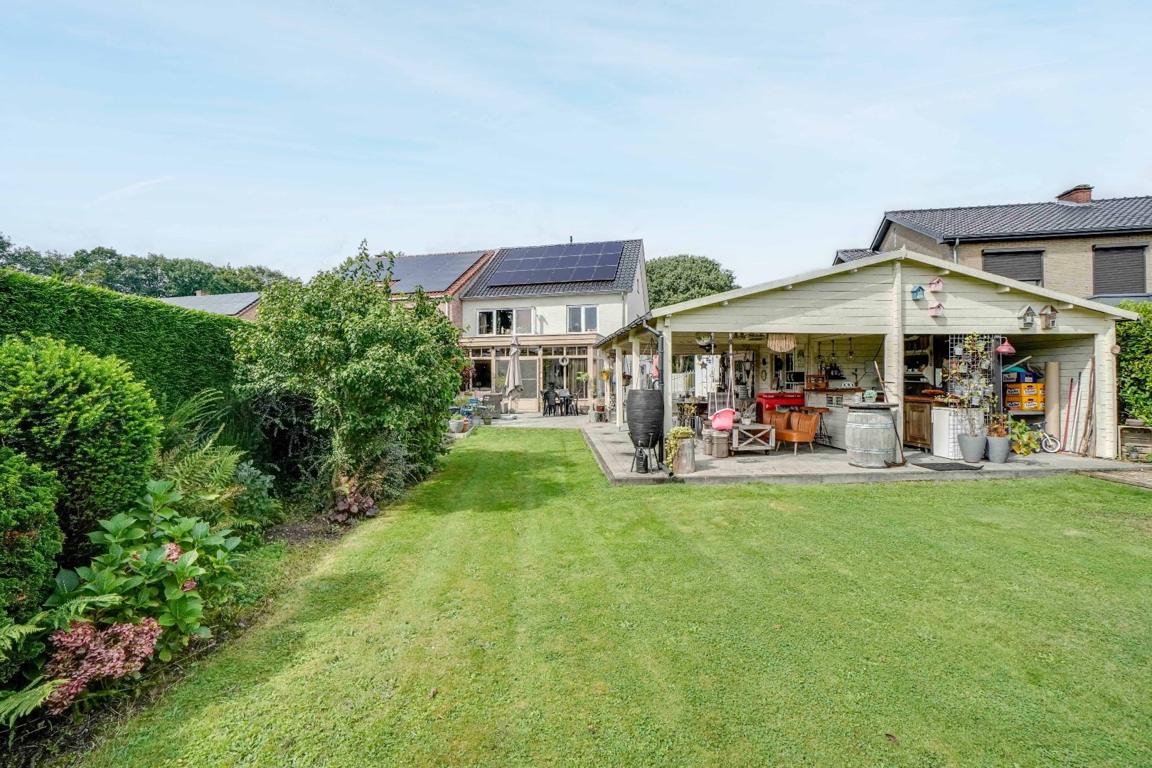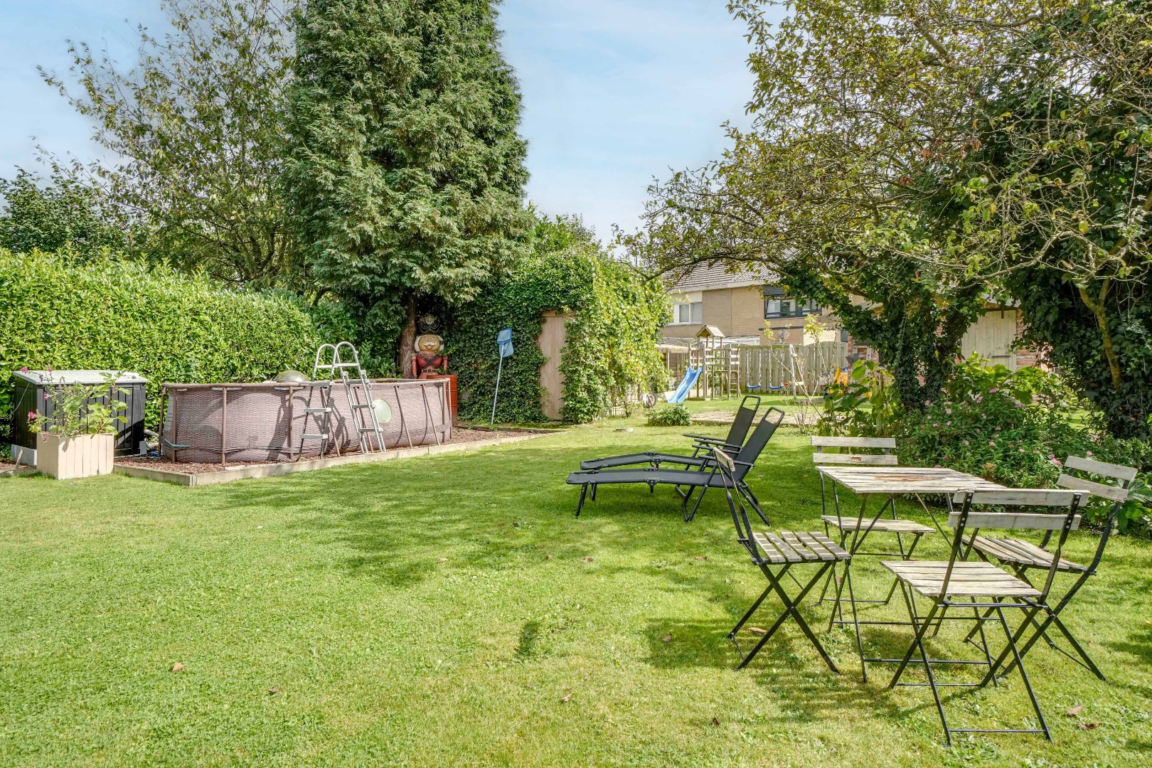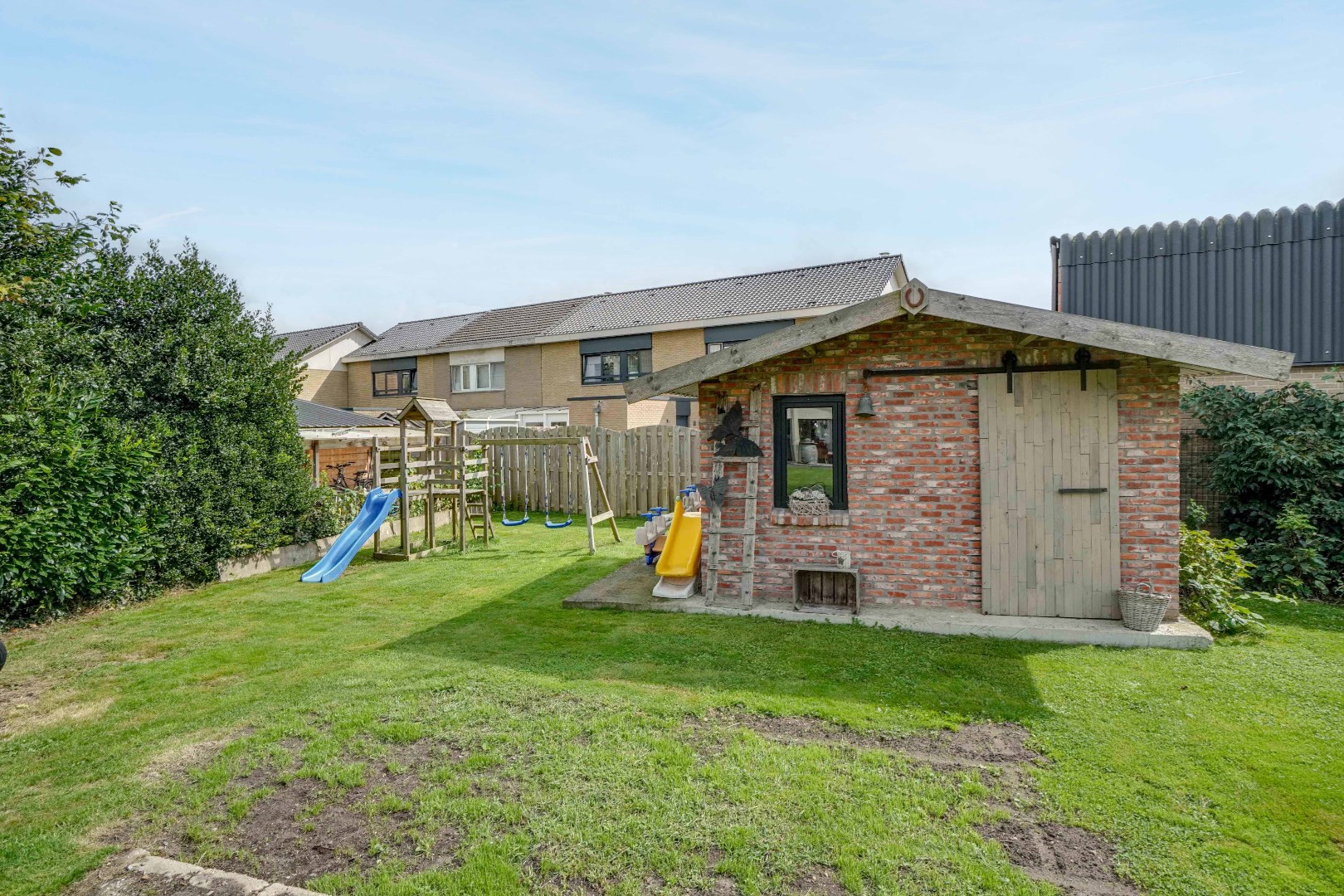 De zuid-oostelijk georiënteerde tuin is voorzien van een terras en mooi uitgestrekt gazon met tuinhuis, ideaal voor het opbergen van fietsen, gereedschap, etc.