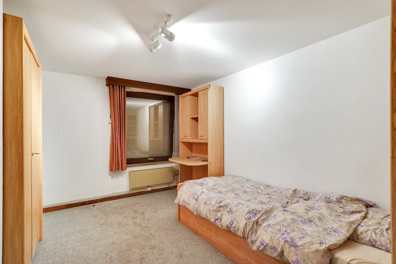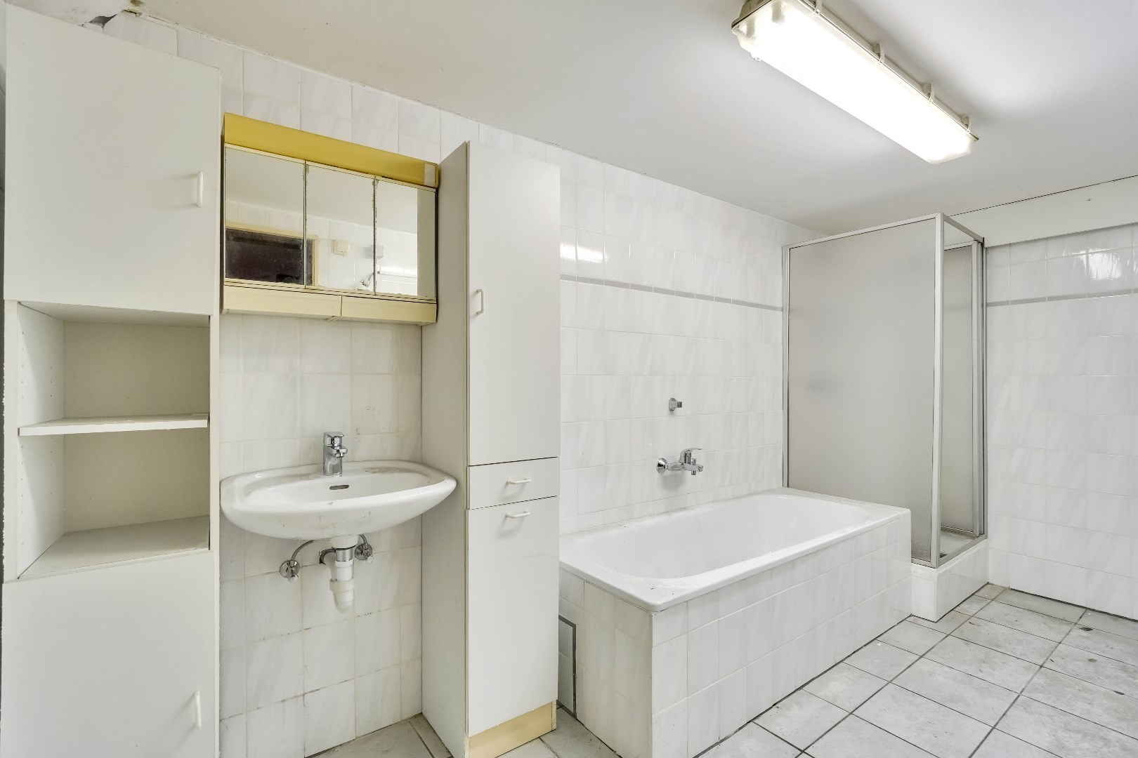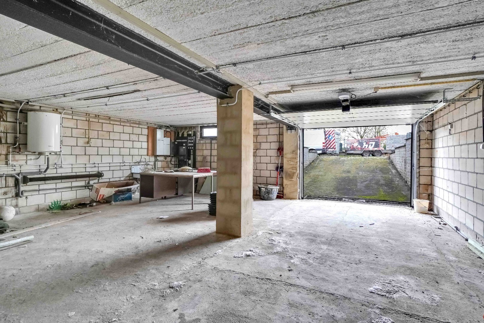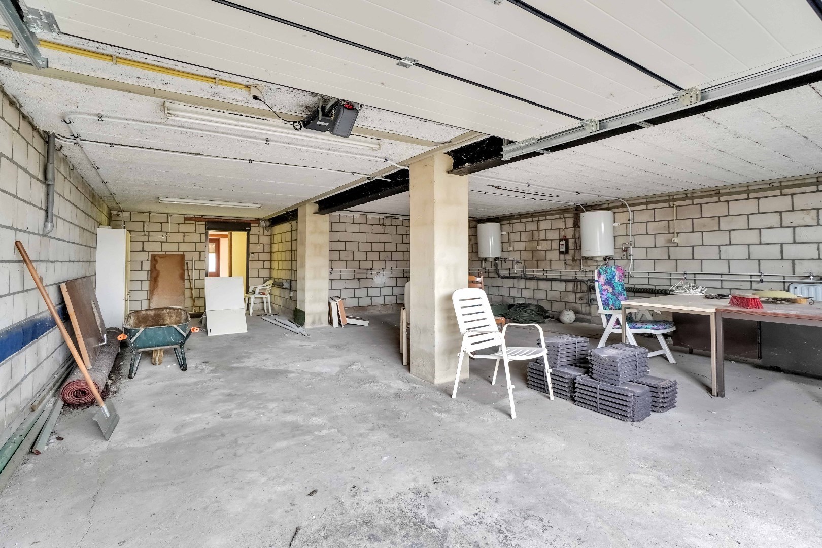 De benedenverdieping voorziet 2 extra slaapkamers, een badkamer, een berging (momenteel ingericht als eetkeuken) en een ruime inpandige garage van +/- 70 m². De badkamer is momenteel voorzien van een wastafel, ligbad en douche. Op zowel de benedenverdieping als het gelijkvloers bevindt zich een apart toilet.