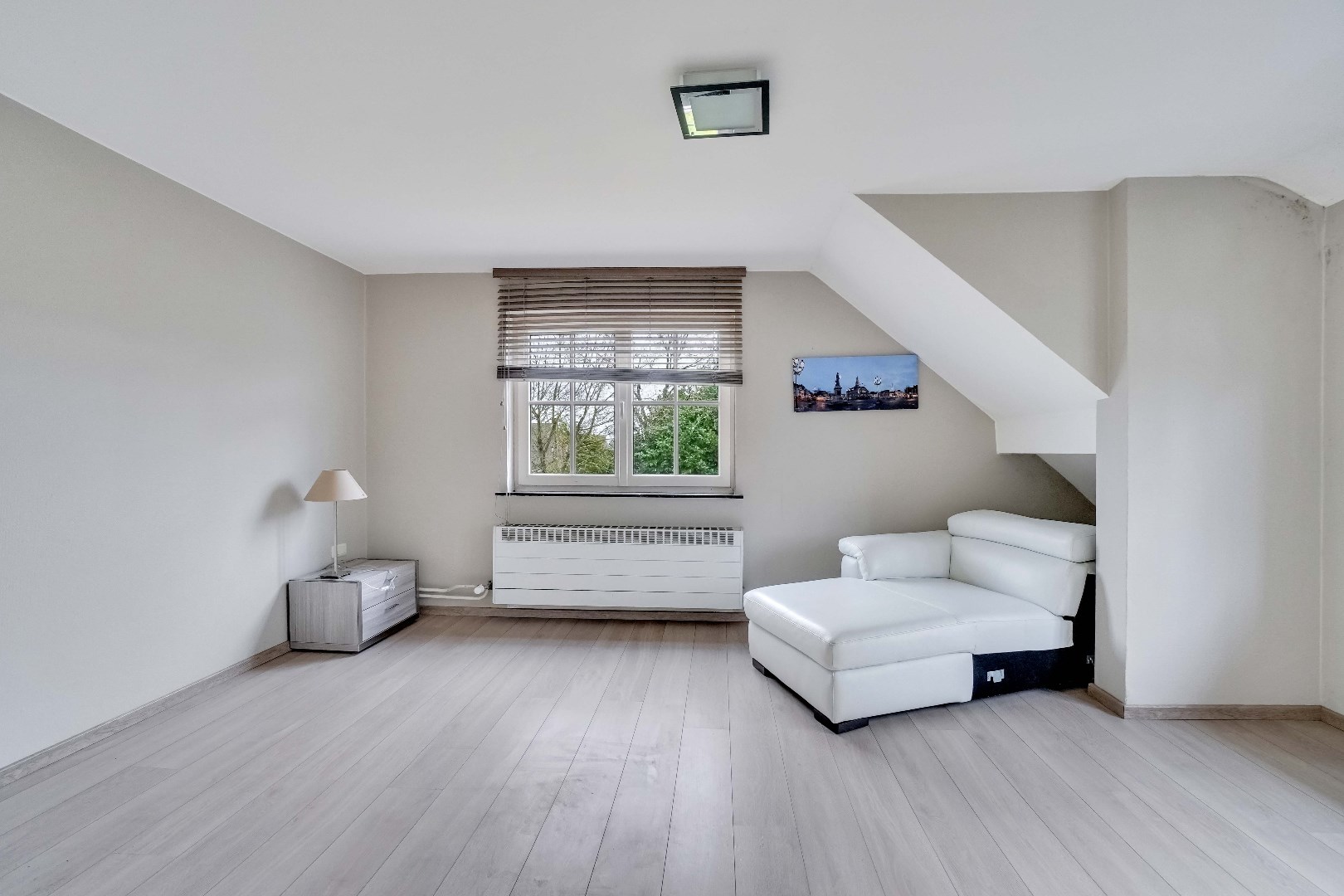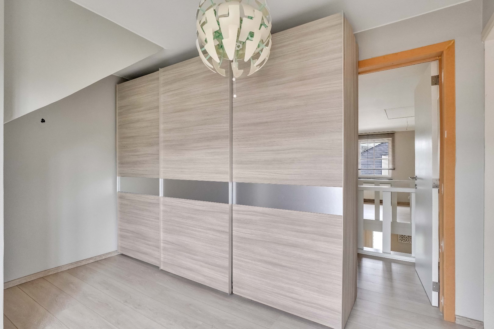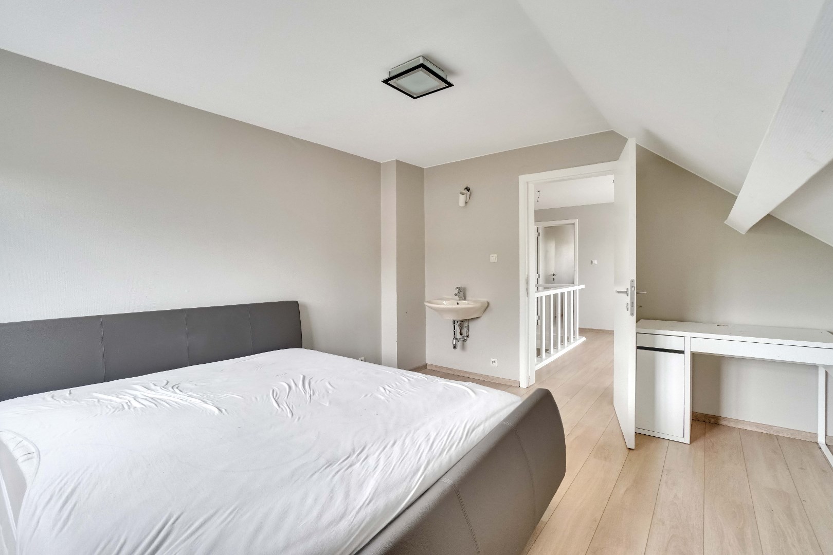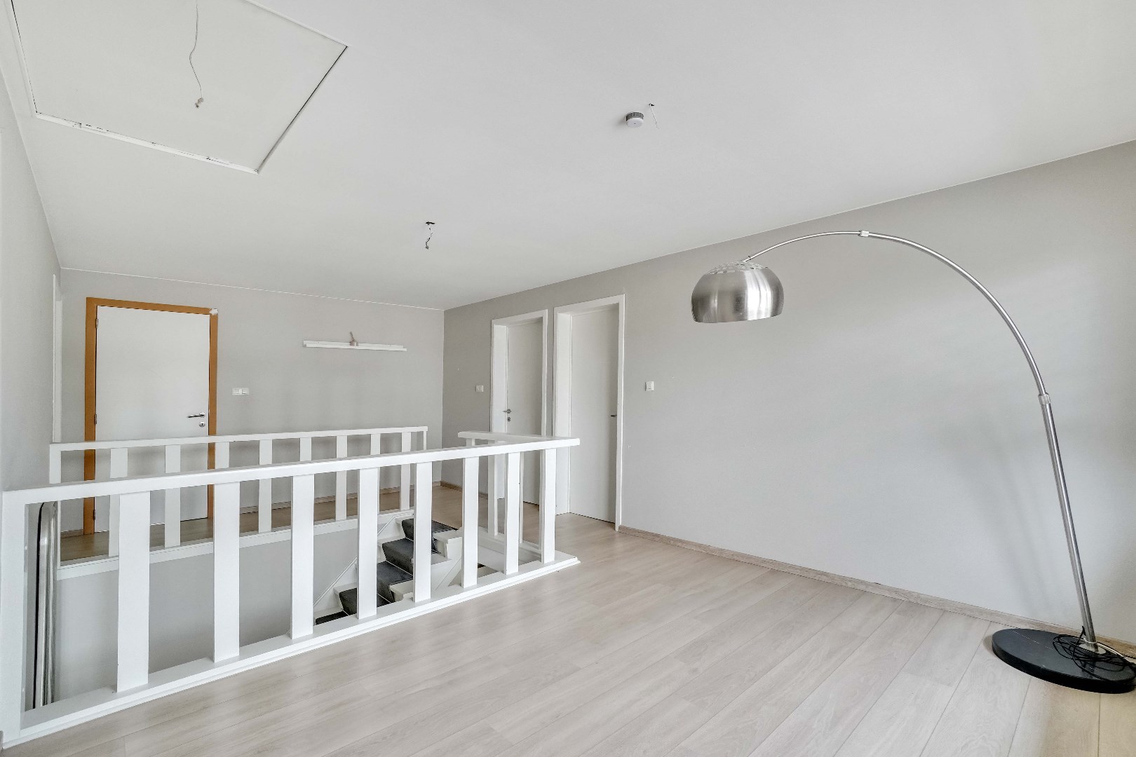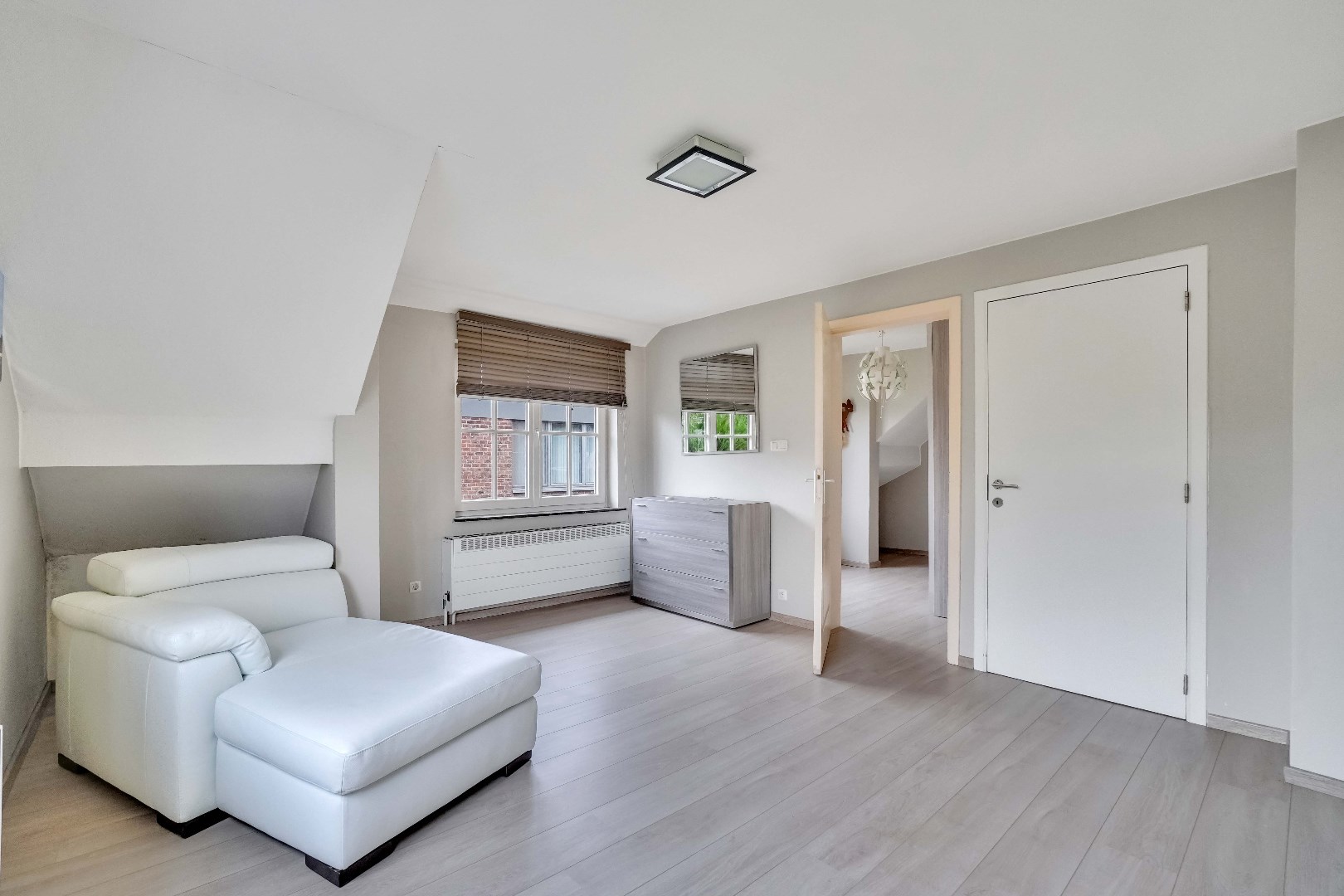 De eerste verdieping biedt een royale overloop dewelke perfect kan dienen als leeshoek, speelruimte of extra werkplek. Hier bevinden zich 3 slaapkamers, waarvan de master bedroom voorzien is van een praktische inloopkast. Deze kamer kan eventueel ook dienen als vierde slaapkamer.