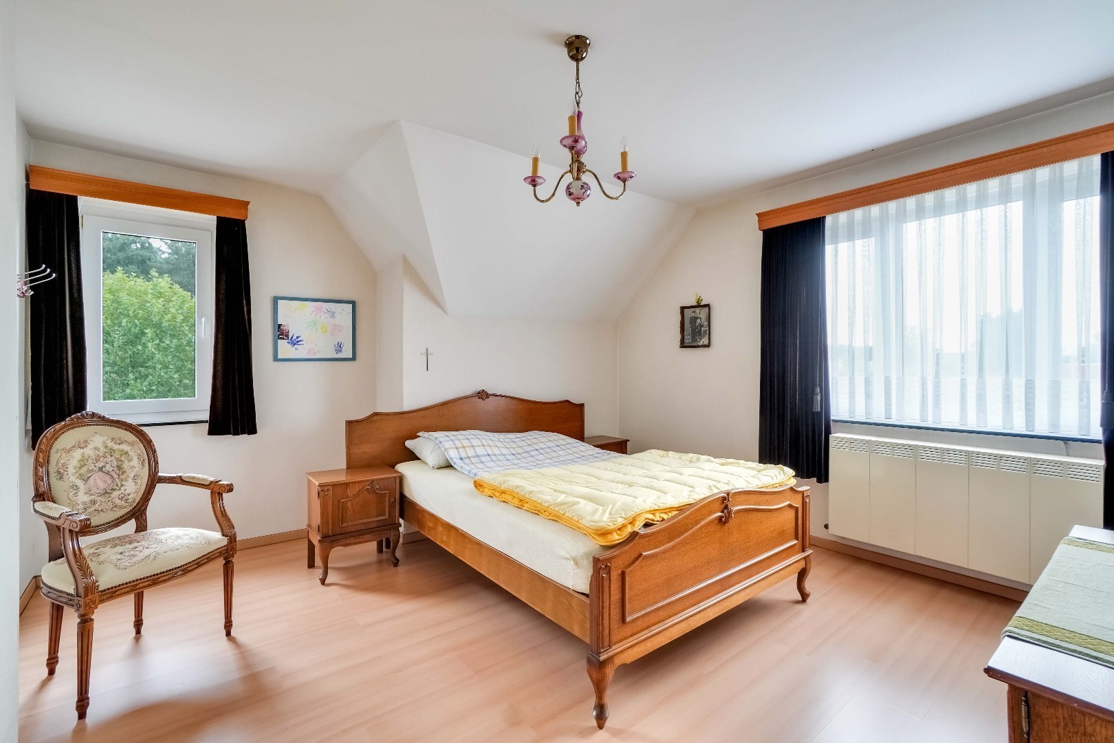 De slaapkamers variëren tussen de 14 en 18 m² en zijn alle 3 voorzien van een wastafel. De badkamer is uitgerust met een wastafel, ligbad en bidet.