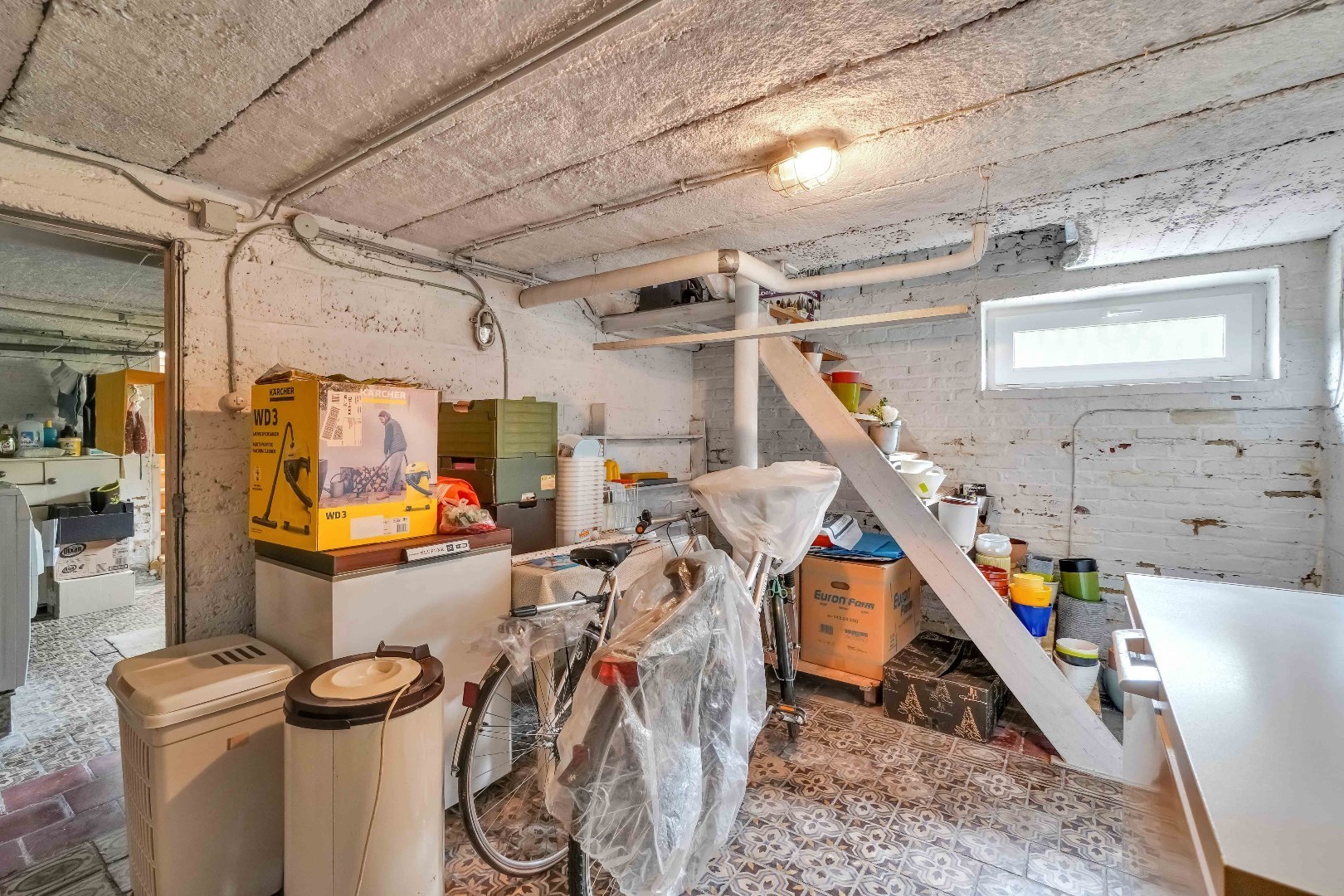 De woning is compleet met zijn volledig onderkelderde kelder, dewelke ingedeeld is in 4 aparte ruimtes en een inpandige garage.