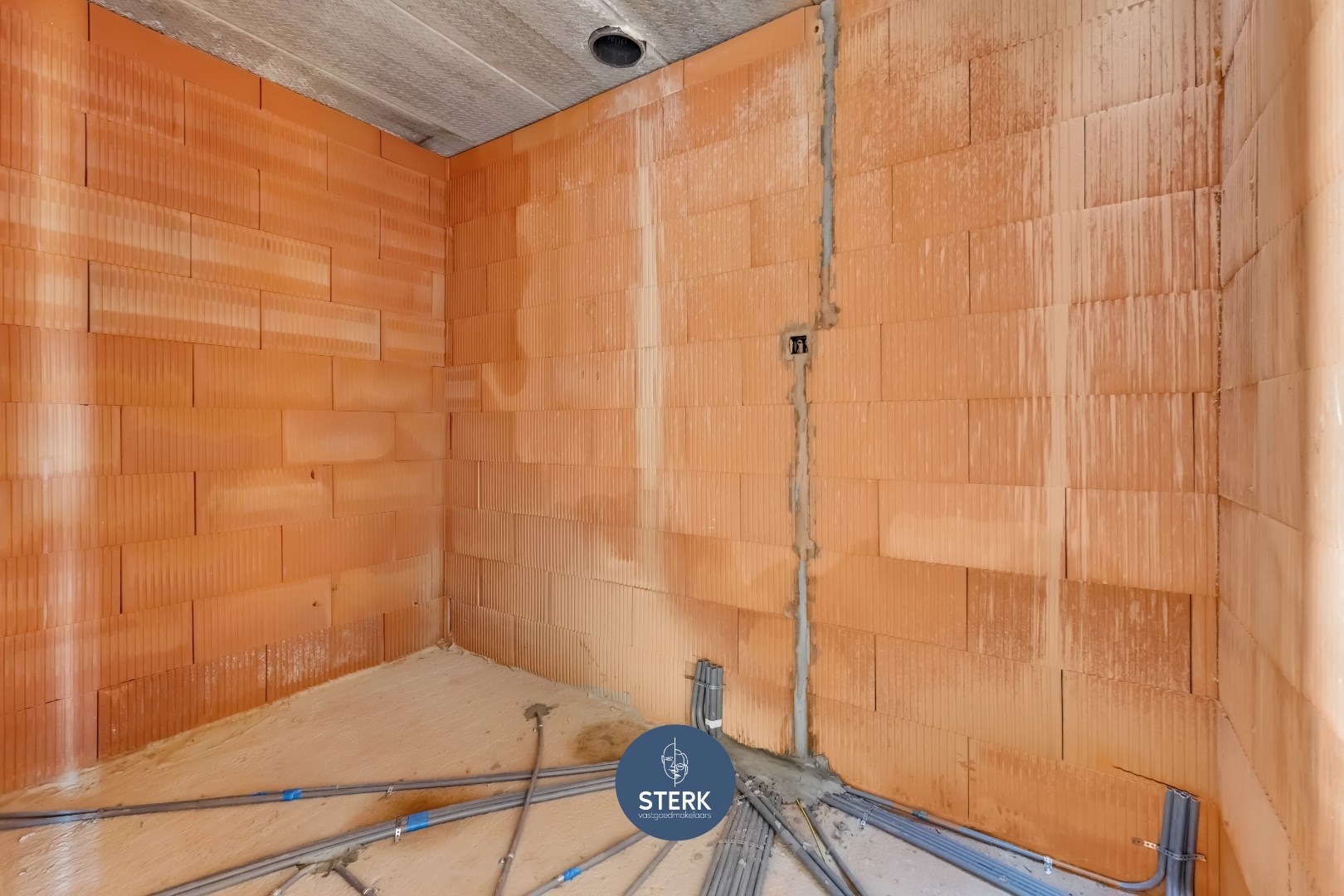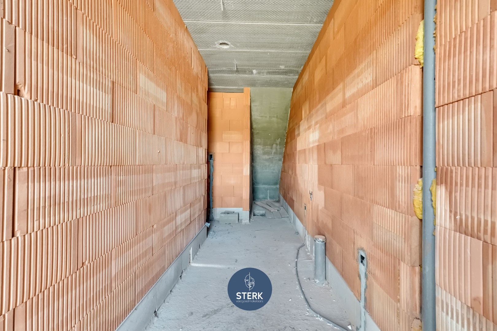 De woning zal casco+ opgeleverd worden. Dit wilt zeggen dat de woning wind- en waterdicht opgeleverd zal worden, inclusief alle structurele en technische elementen gaande van de sanitaire en elektrische leidingen, chape, pleisterwerken, centrale verwarming, ventilatie, volledige elektrische installatie en binnenwanden.