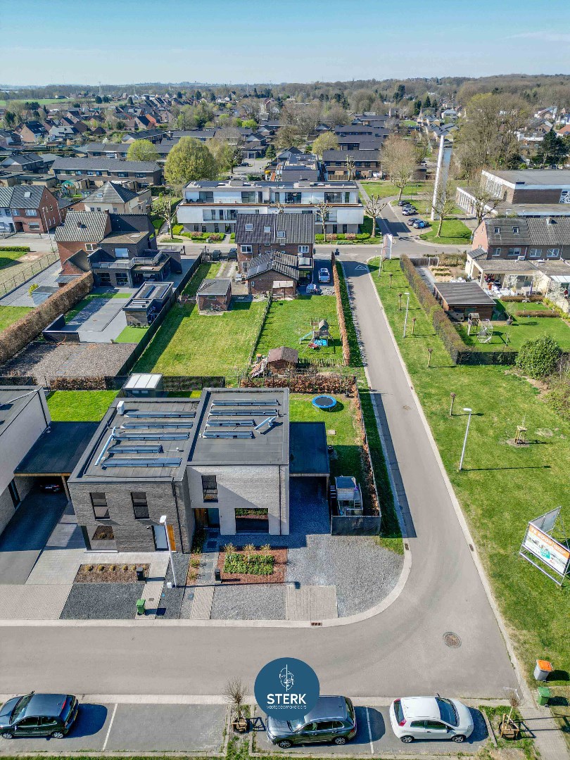 We vinden deze bijna-energieneutrale woning terug op een rustige, doch centrale locatie in Lanaken.