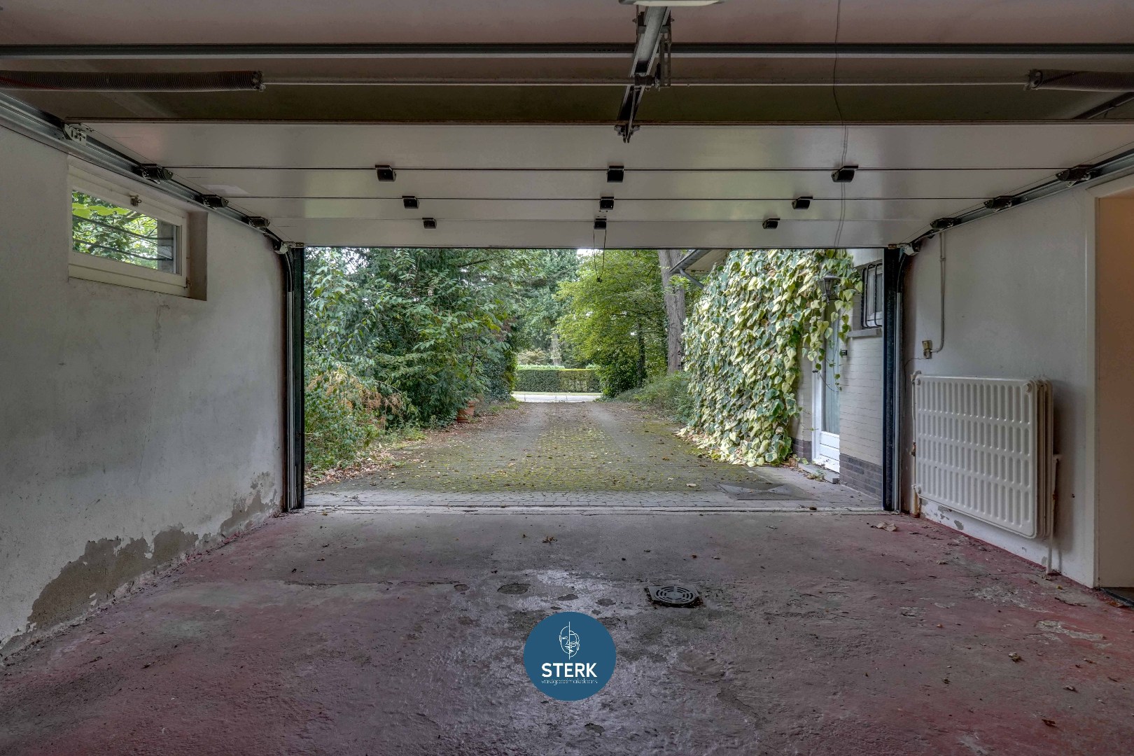 De inkomhal vormt het hart van de woning en geeft toegang tot een royale woonkamer van 5,00 m op 9,40 m, een aparte eetkamer en een zithoek. Daarnaast zijn er een keuken, een wasruimte, gastentoilet en een inpandige garage van circa 31 m².
