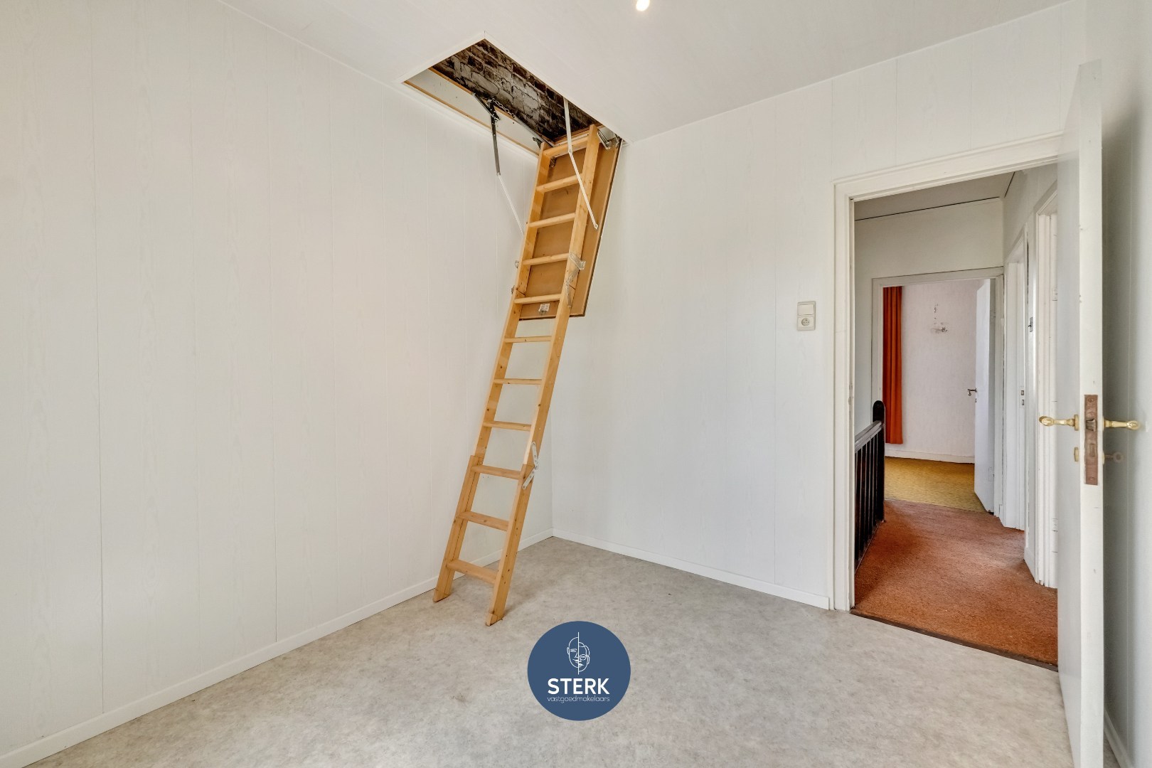 Op de eerste verdieping zijn er 4 slaapkamers, met oppervlaktes variërend tussen circa 7 m² en 13 m². Vanuit één van de slaapkamers bereikt men via een vlizotrap de zolder. Deze ruime zolder biedt tal van mogelijkheden, zoals extra slaapkamer, hobbyruimte of opslag, afhankelijk van uw renovatieplannen.
