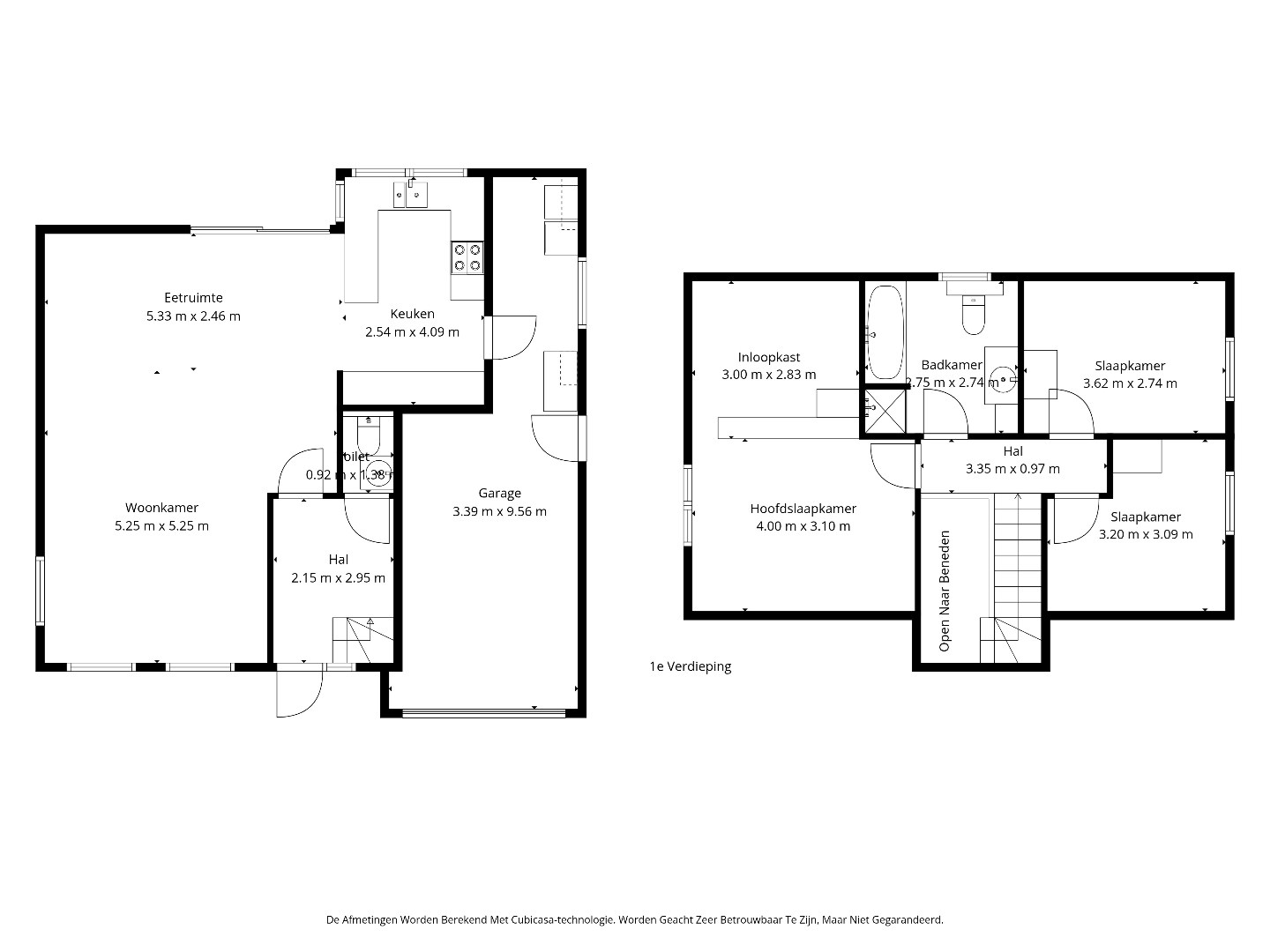 De eerste verdieping omvat 3 slaapkamers met oppervlaktes van circa 9 en 20 m². De hoofdslaapkamer is momenteel ingedeeld in een slaapgedeelte met aansluitend een inloopkast. De badkamer is uitgerust met een wastafel, ligbad, douche en toilet, waardoor alle comfort aanwezig is. Via een valluik op de nachthal is er toegang tot de zolder, die perfect dienst kan doen als extra bergruimte.