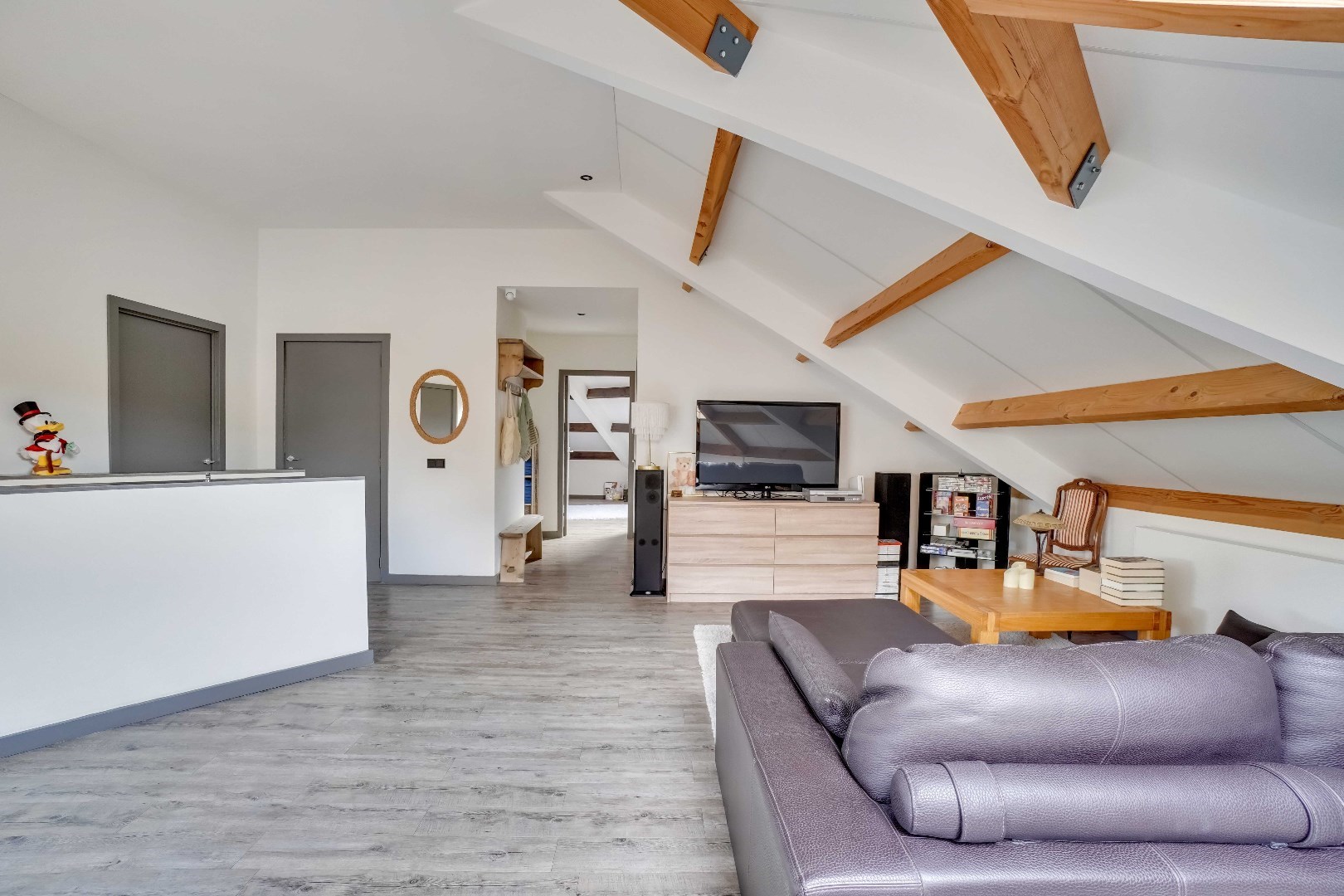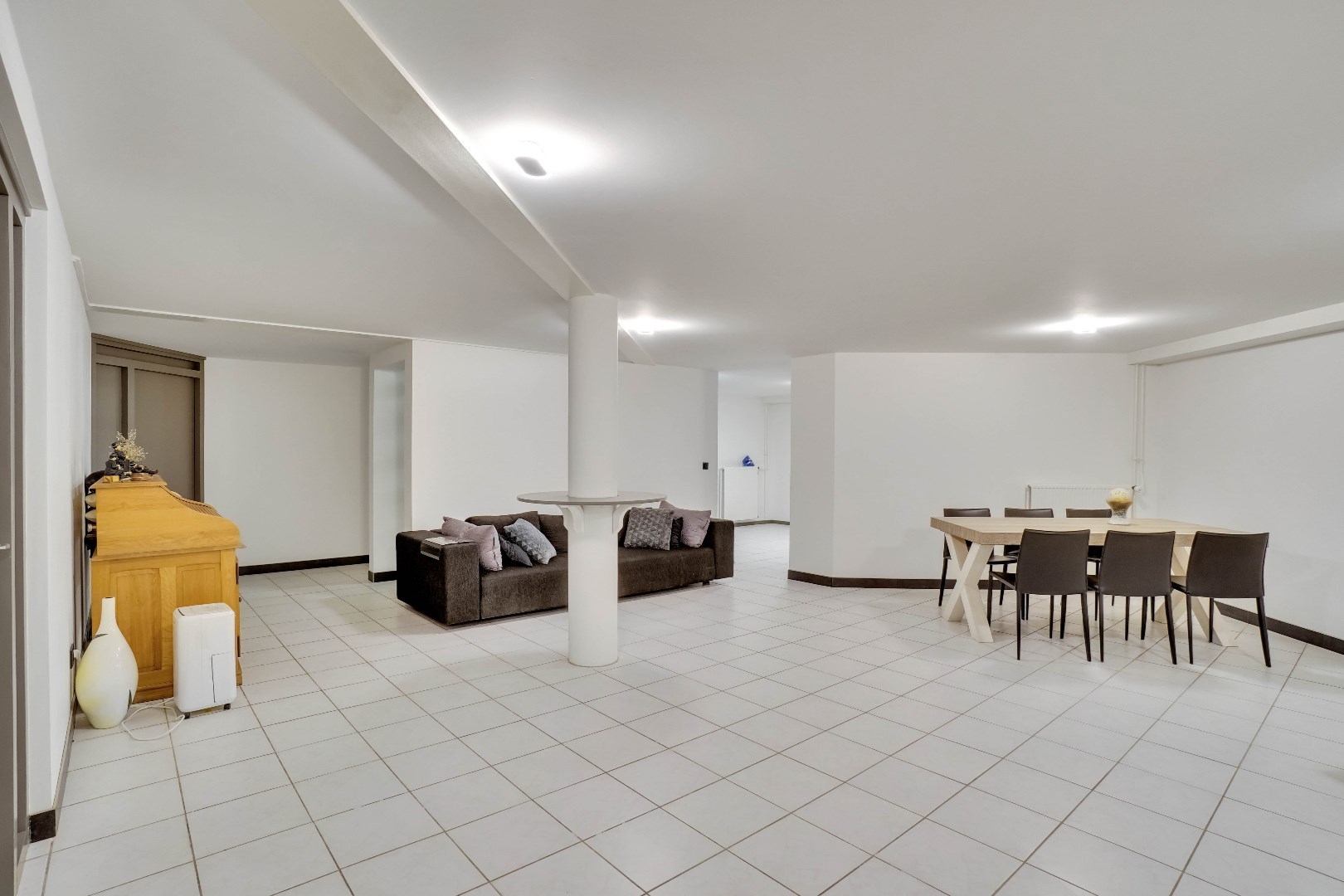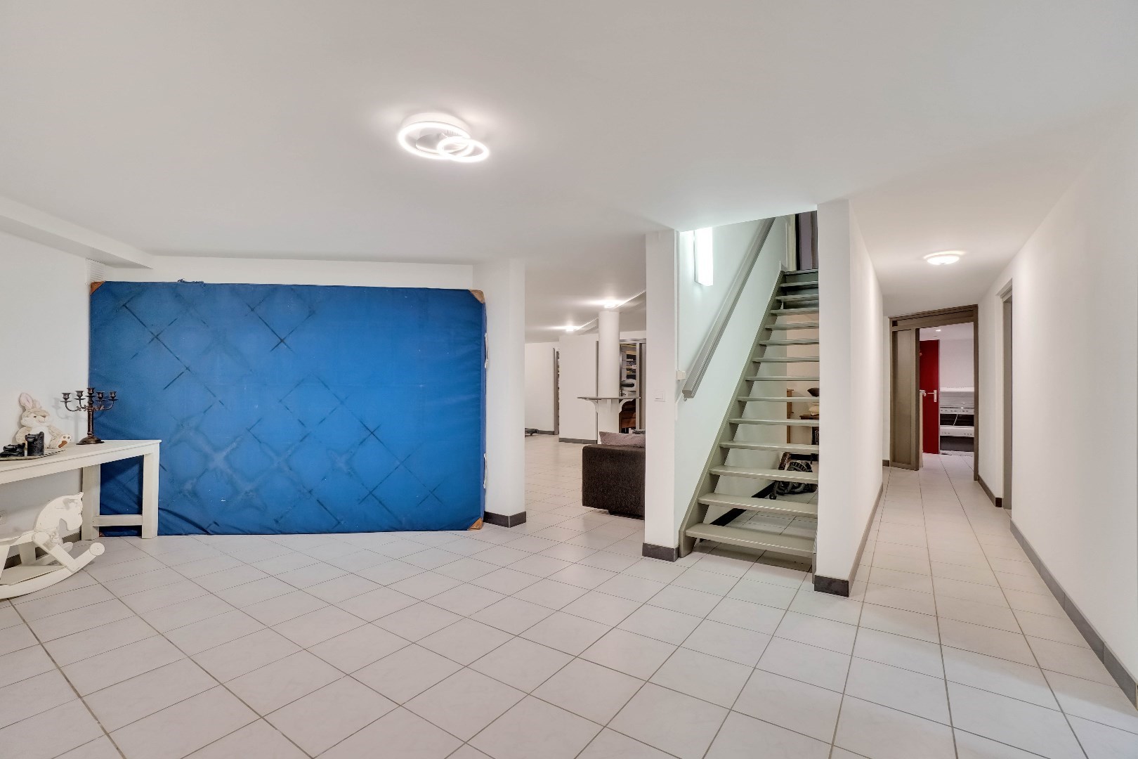 Bij binnenkomst in de woning is er toegang naar het leefgedeelte, alsook naar de master bedroom.
