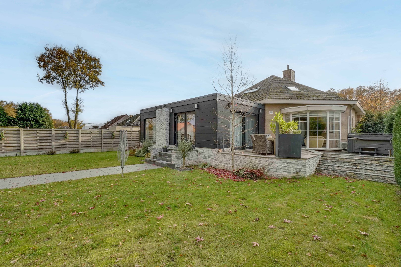 + Fraai aangelegde, omheinde tuin met terrassen en jacuzzi !