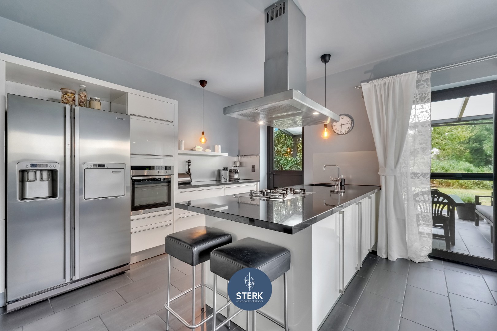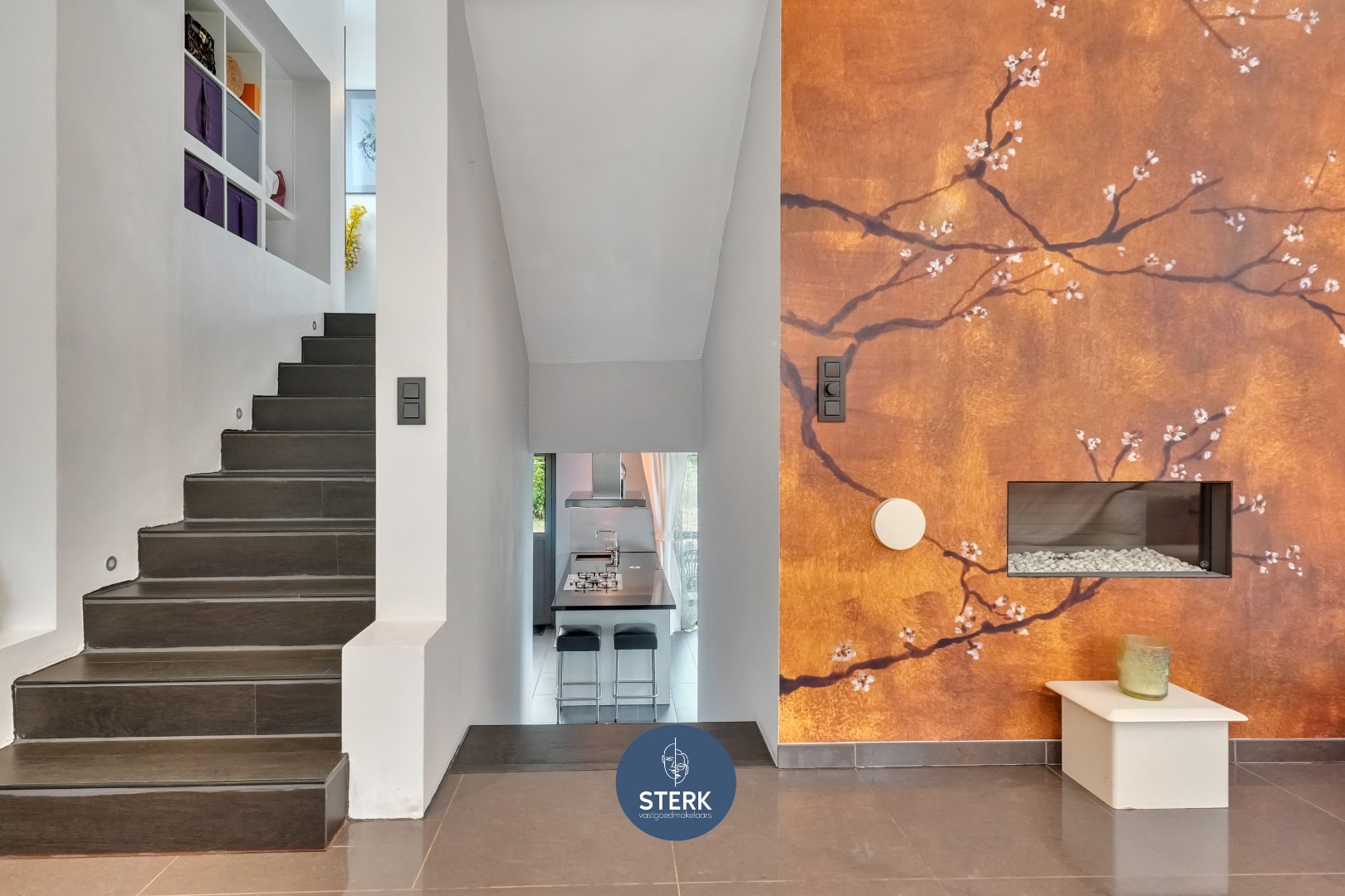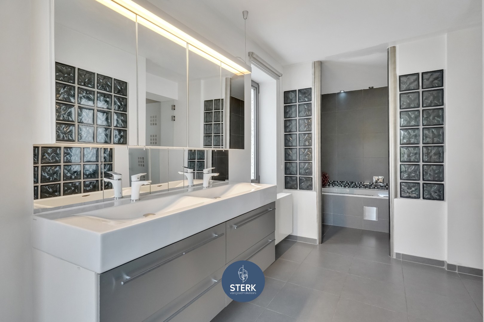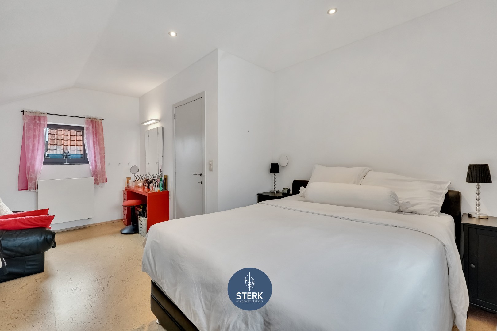 Bij binnenkomst via de inkomhal, betreedt men de ruime eetkeuken, volledig uitgerust met alle hedendaagse toestellen waaronder een gasfornuis, koelkast, diepvriezer, afwasmachine, oven en combi-oven. Enkele tredes hoger bevindt zich de gezellige woonkamer, voorzien van een gaskachel dewelke voor extra warmte en sfeer zorgt. Nog een niveau hoger is de dressing en badkamer terug te vinden. De badkamer is bijzonder ruim ingericht met een dubbele lavabo, bad, douche, toilet en bidet. Via opnieuw enkele tredes bereikt men de master bedroom. Bovendien is er nog een volledig afgewerkte zolderruimte dewelke tal van mogelijkheden biedt, zoals een hobbykamer, extra slaapkamer(s) of bureau.